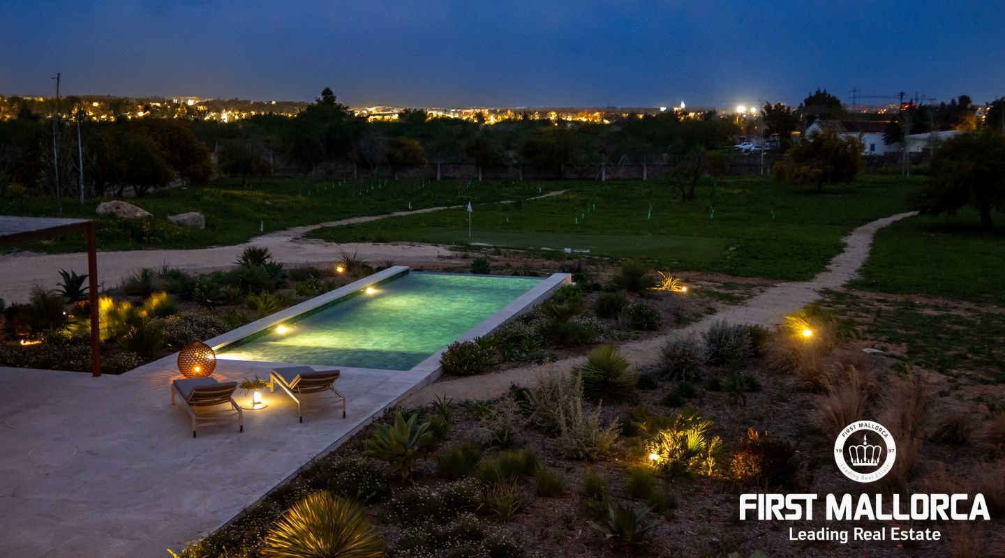 Utomhusområdet är utformat för att fullt ut omfamna den mallorkinska livsstilen och pryds av ett urval av inhemska växter och träd, inklusive oliv-, fikon-, citrus- och avokadoträd. Infinitypoolen bjuder in till svalkande dopp och avkoppling, medan den rymliga terrassen är perfekt för att njuta av Mallorcas soliga dagar. Om du älskar golf kommer du att uppskatta din egen privata övningsyta i trädgården.