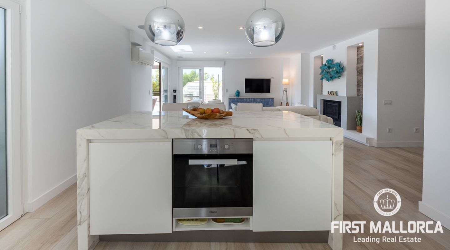 Detta är en otrolig möjlighet att äga så mycket utomhusutrymme på ett så eftertraktat läge, tillsammans med ett rymligt, nyligen ombyggt hem som hålls i orört skick. Terrassen är 97m2 helt på egen hand och bostadsytan är 103m2. Dagområdet består av vardagsrummet och köket med öppen planlösning, som har råvaror som en öppen spis och Miele-apparater, inklusive i tvättstugan. Nattdelen består av 3 dubbelrum och två kompletta badrum. Terrassen har de perfekta måtten för balinesiska sängar som kan ha utsikt över den gemensamma poolen och småbåtshamnen.