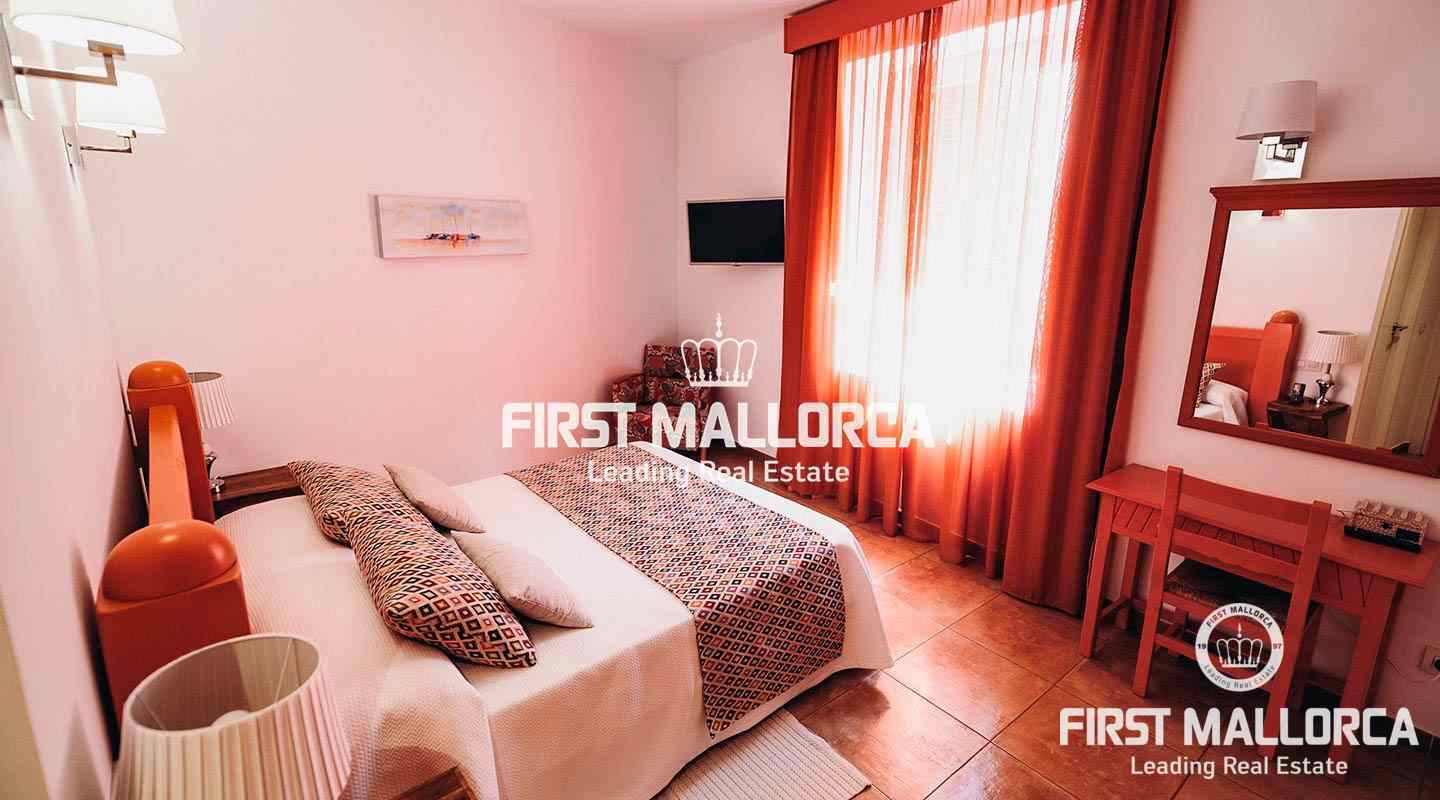 Byggnaden från 1900 renoverades smakfullt 2017. Hotellet har totalt 8 bekväma sovrum, alla med eget badrum, ett fullt utrustat kök, en reception, en liten bar och ett ljust frukostrum med tillgång till den idylliska uteplatsen med pool . Från uteplatsen och särskilt från sovrummen till poolen har du fantastisk utsikt över landskapet hela vägen till Tramuntana-bergen. Hotellet ligger bara några minuter från kyrkans torg och är populärt bland alla som vill uppleva äkta Mallorca.