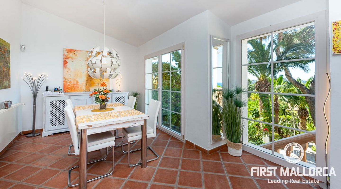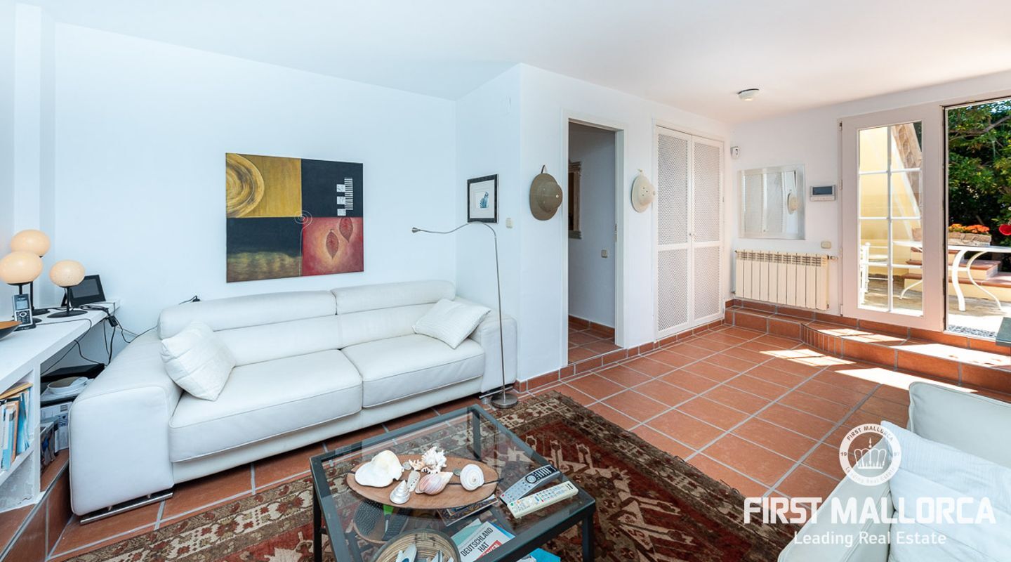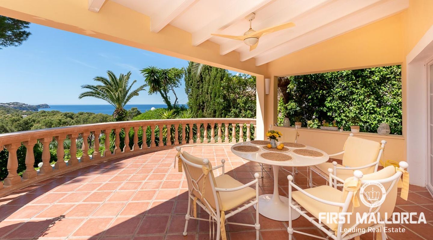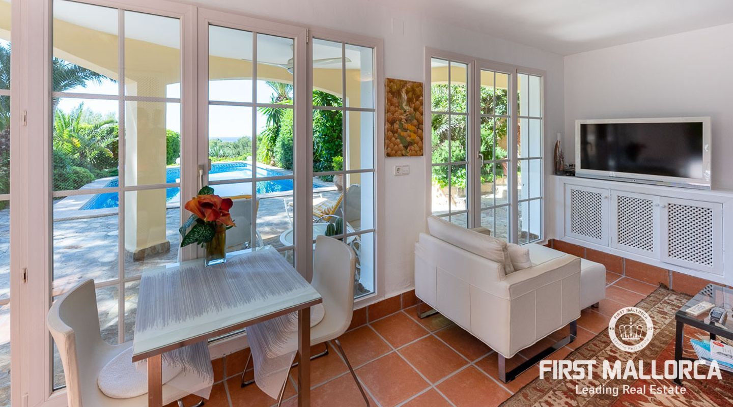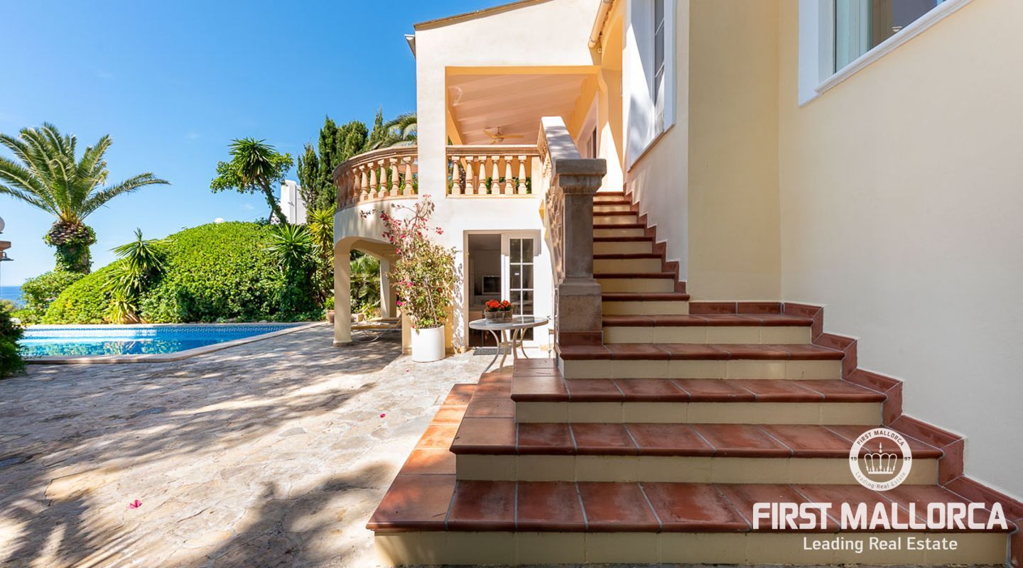 Den ligger på en tomt på cirka 760 m2 och har en bebyggd boarea på cirka 231 m2 fördelat på 2 våningar. Huvudbyggnaden på övre plan och en gästlägenhet på nedre plan. Huvudvåningen på övervåningen erbjuder ett ljust vardagsrum/matsal med ett öppet kök och en gästtoalett. Det stora sovrummet med eget badrum ligger också på denna nivå. Den fantastiska havsutsikten kan avnjutas från alla vinklar. En extern trappa leder till gästvåningen med oberoende tillgång. Innehåller 3 sovrum, 1 badrum, vardagsrum och eget kök med diskbänksrum