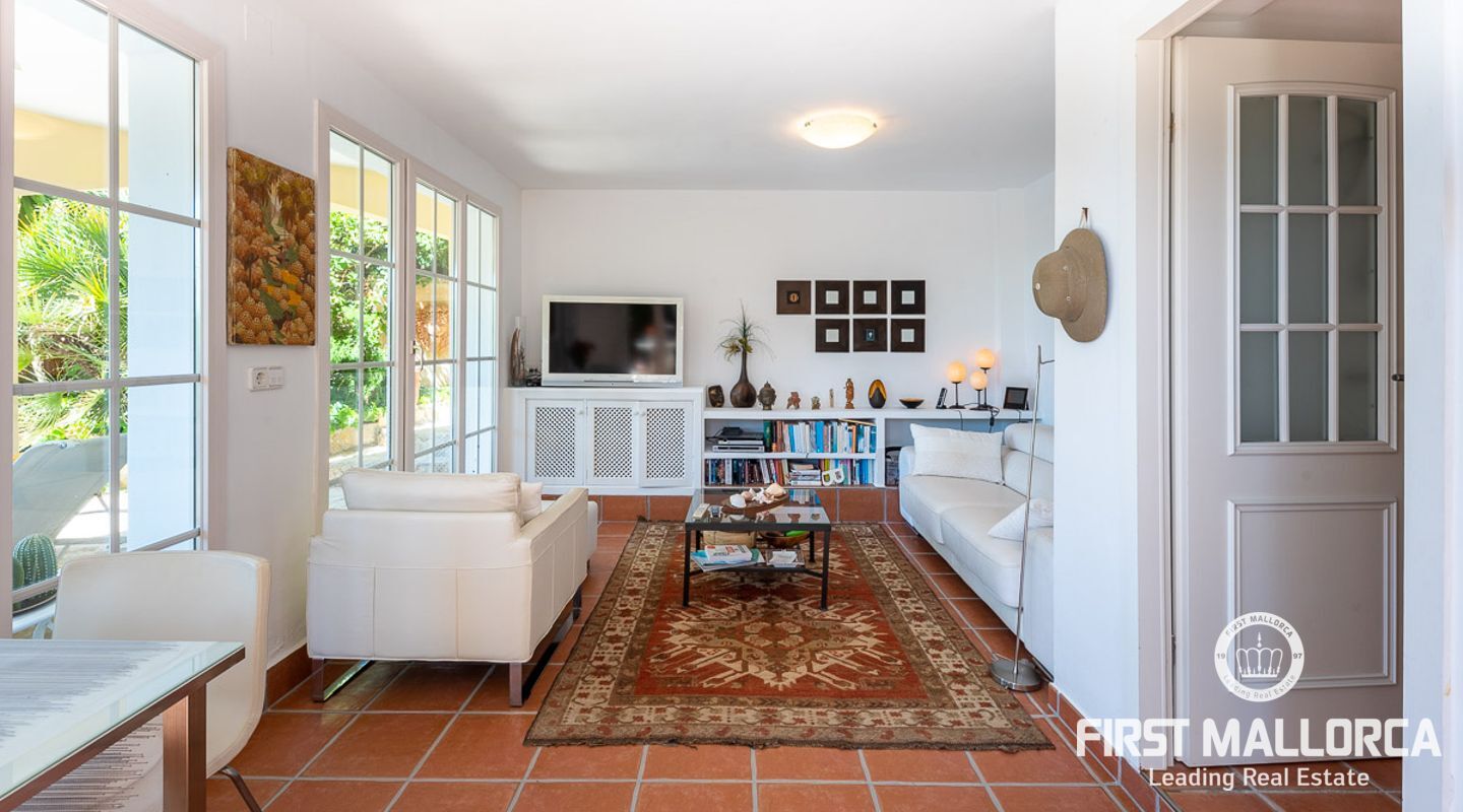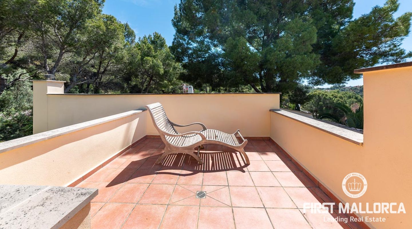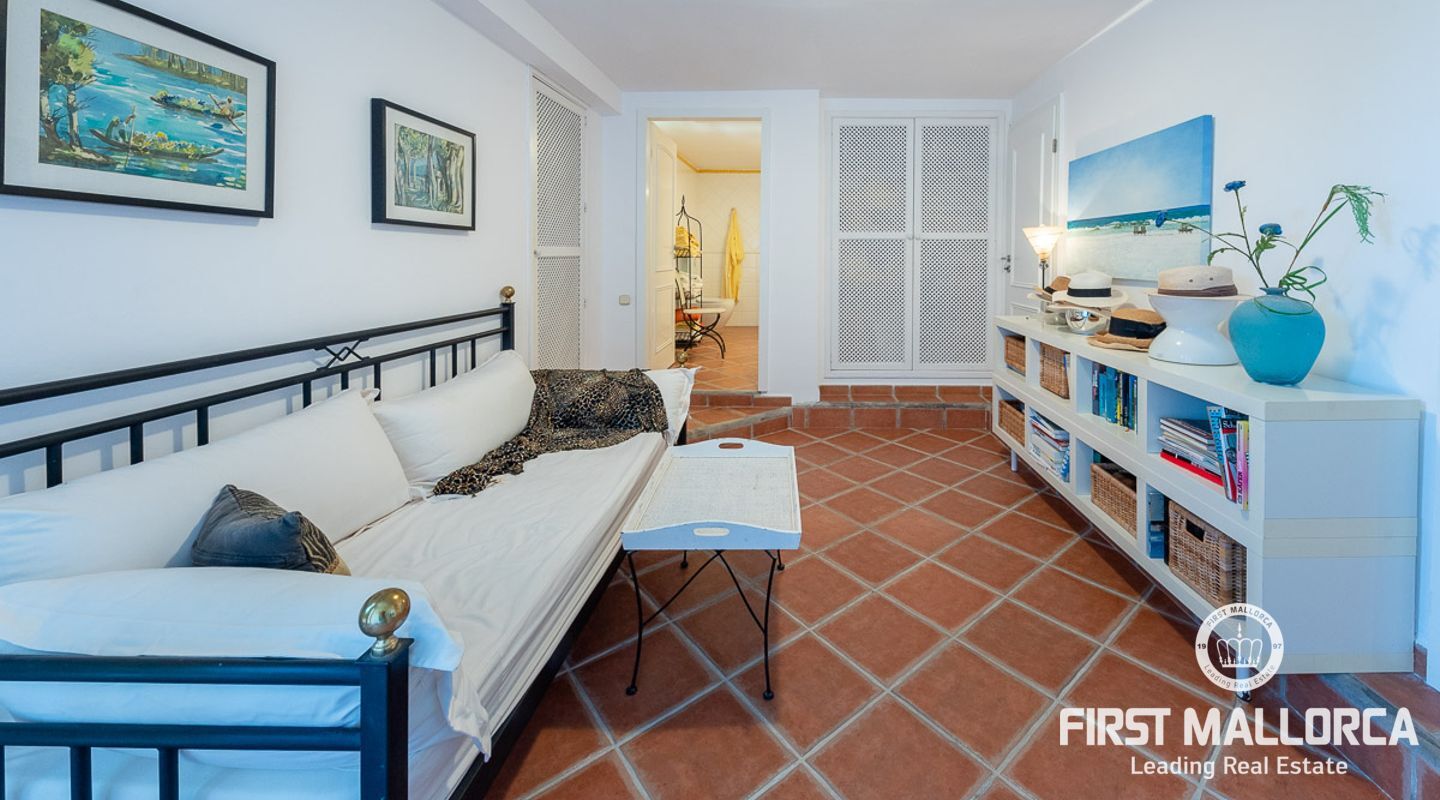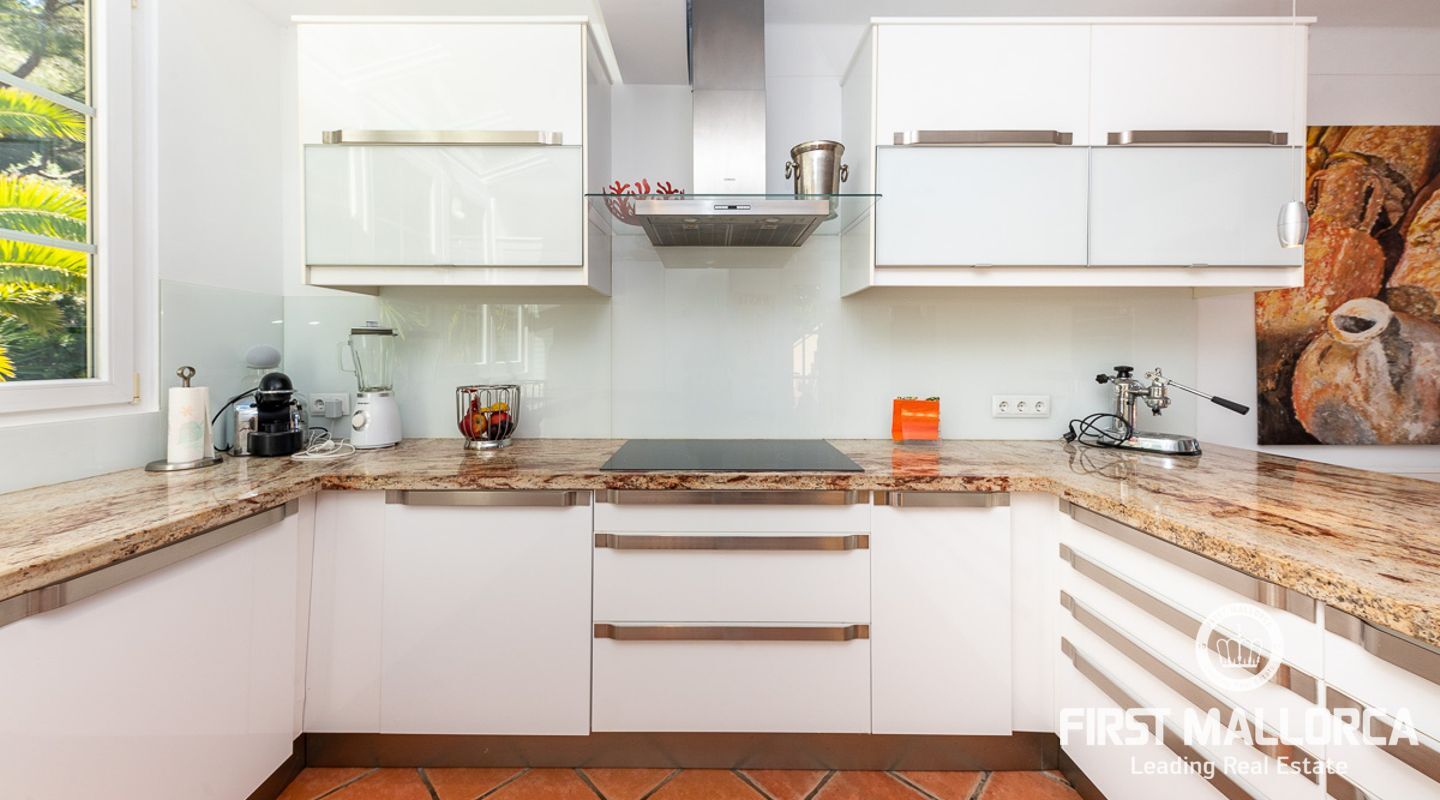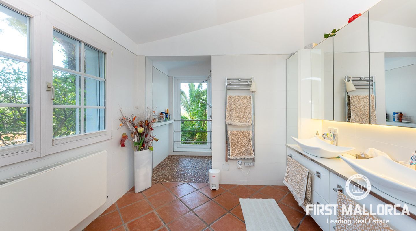 Den ligger på en tomt på cirka 760 m2 och har en bebyggd boarea på cirka 231 m2 fördelat på 2 våningar. Huvudbyggnaden på övre plan och en gästlägenhet på nedre plan. Huvudvåningen på övervåningen erbjuder ett ljust vardagsrum/matsal med ett öppet kök och en gästtoalett. Det stora sovrummet med eget badrum ligger också på denna nivå. Den fantastiska havsutsikten kan avnjutas från alla vinklar. En extern trappa leder till gästvåningen med oberoende tillgång. Innehåller 3 sovrum, 1 badrum, vardagsrum och eget kök med diskbänksrum