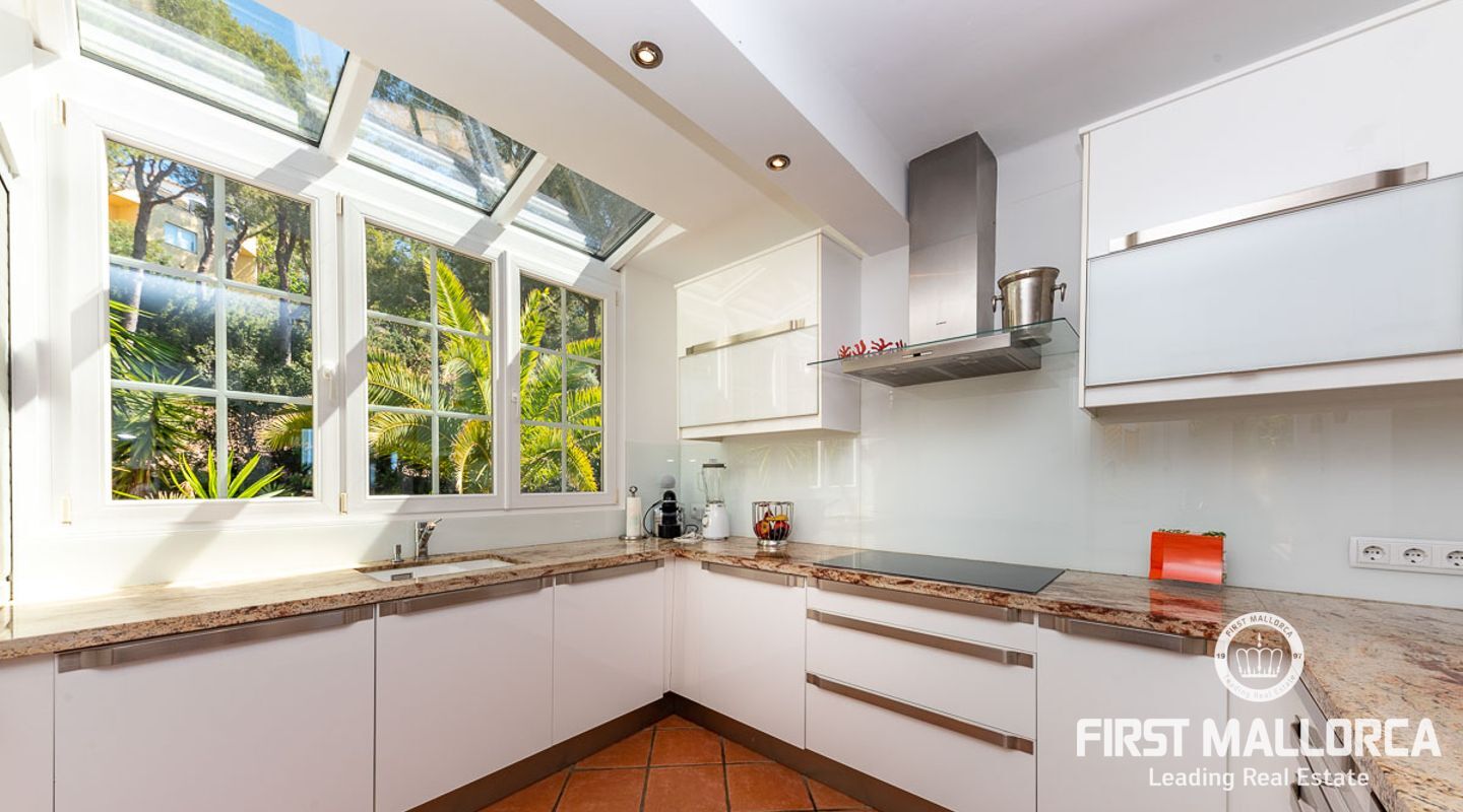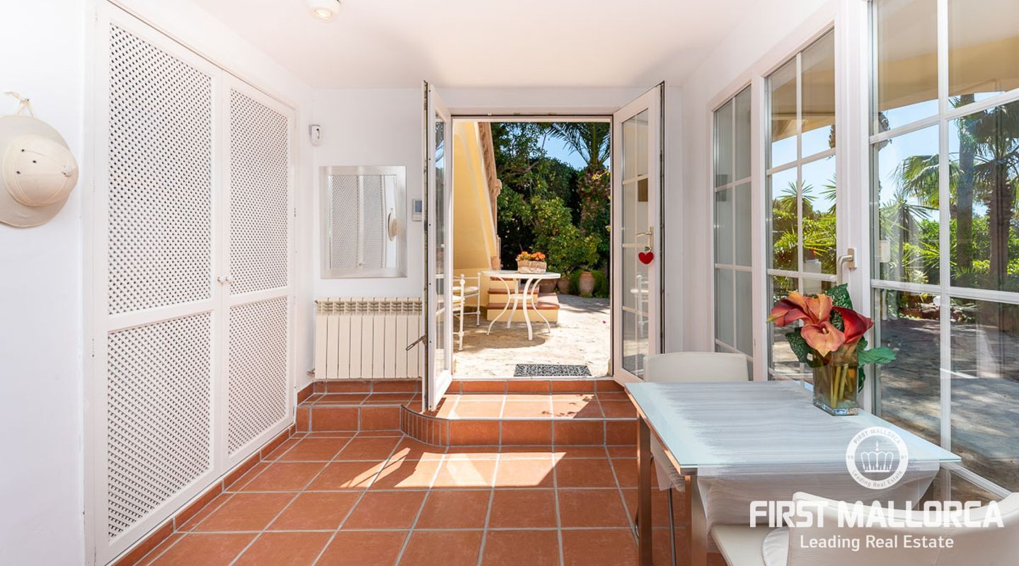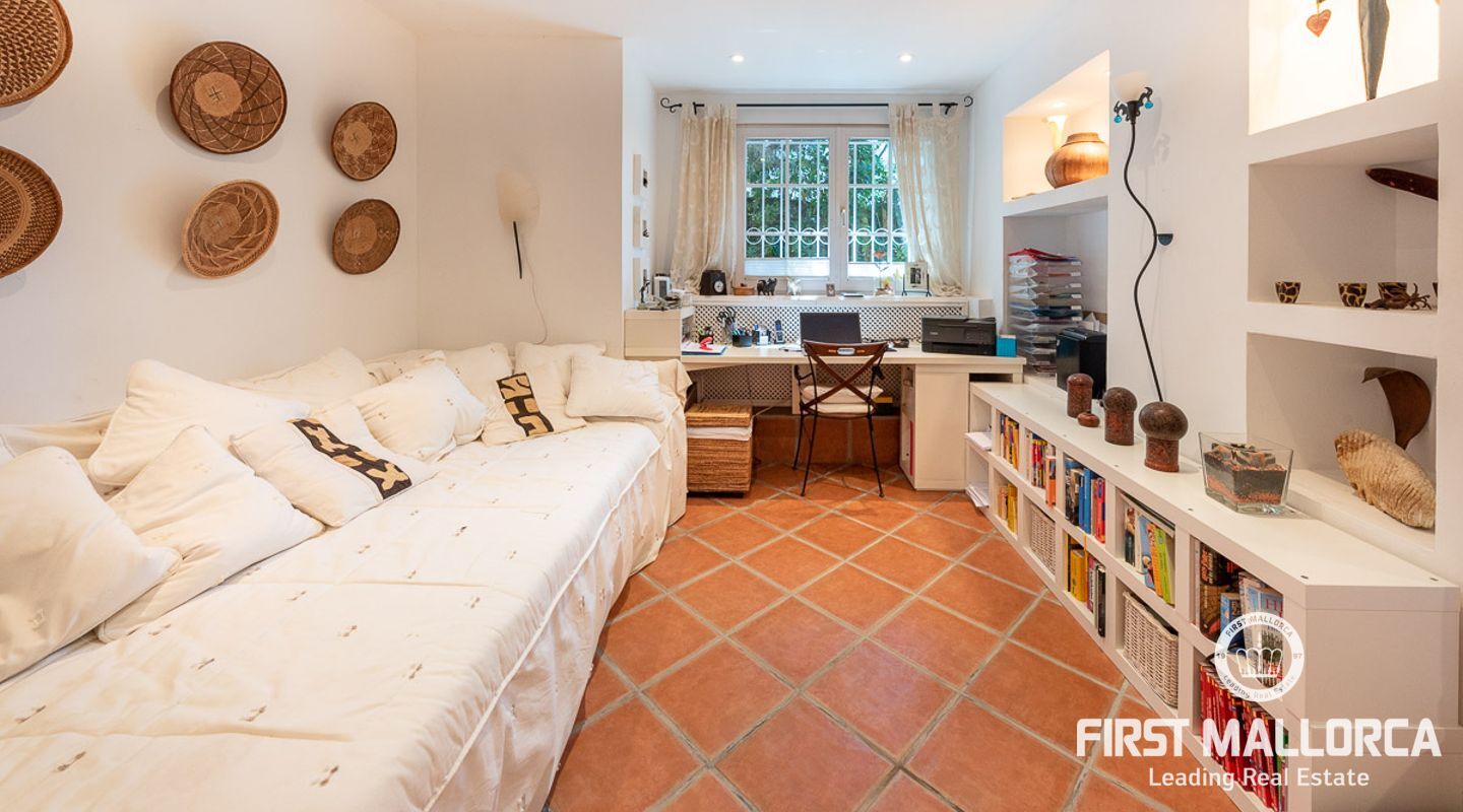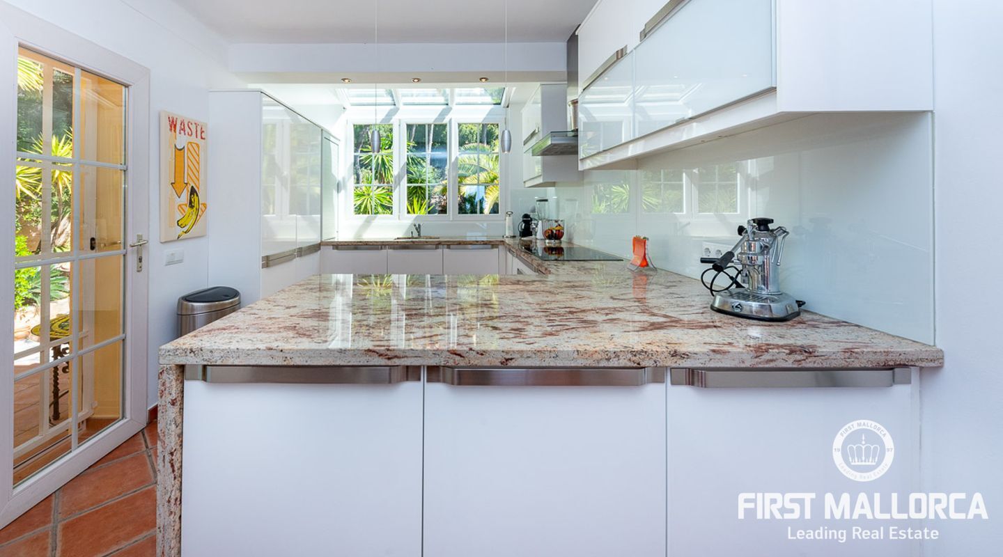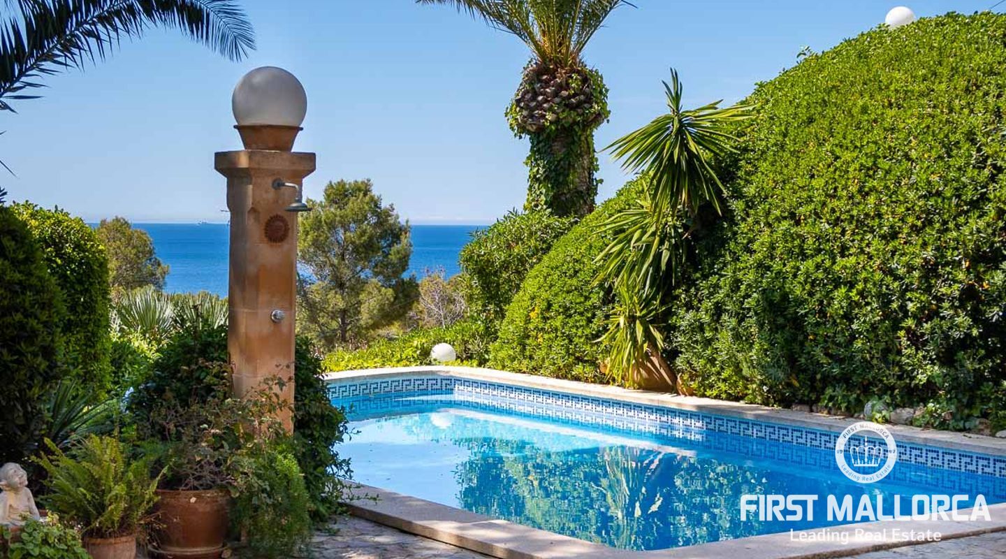 Den ligger på en tomt på cirka 760 m2 och har en bebyggd boarea på cirka 231 m2 fördelat på 2 våningar. Huvudbyggnaden på övre plan och en gästlägenhet på nedre plan. Huvudvåningen på övervåningen erbjuder ett ljust vardagsrum/matsal med ett öppet kök och en gästtoalett. Det stora sovrummet med eget badrum ligger också på denna nivå. Den fantastiska havsutsikten kan avnjutas från alla vinklar. En extern trappa leder till gästvåningen med oberoende tillgång. Innehåller 3 sovrum, 1 badrum, vardagsrum och eget kök med diskbänksrum