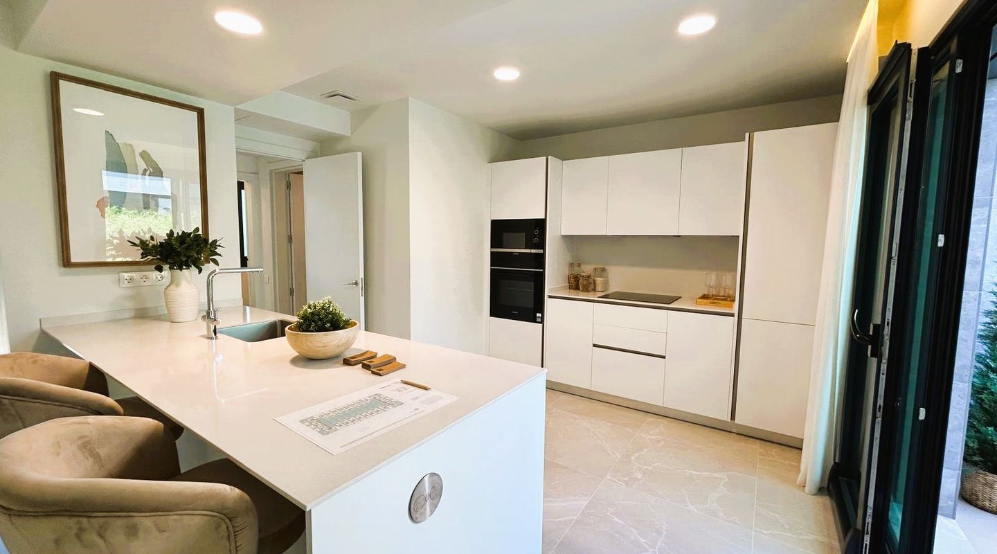 Arkitekturen i ditt nya hem är genomtänkt in i minsta detalj. Här satsar man på framtiden med hållbara passivhus, där naturligt ljus och integrering av grönområden i de viktigaste utrymmena spelar en central roll. Bostaden har hög energiklass tack vare specialglas och utmärkt värme- och ljudisolering, vilket minimerar temperaturvariationer. Golvvärme och ett aerotermiskt system för både värme och kyla möjliggör individuell temperaturreglering i varje rum.