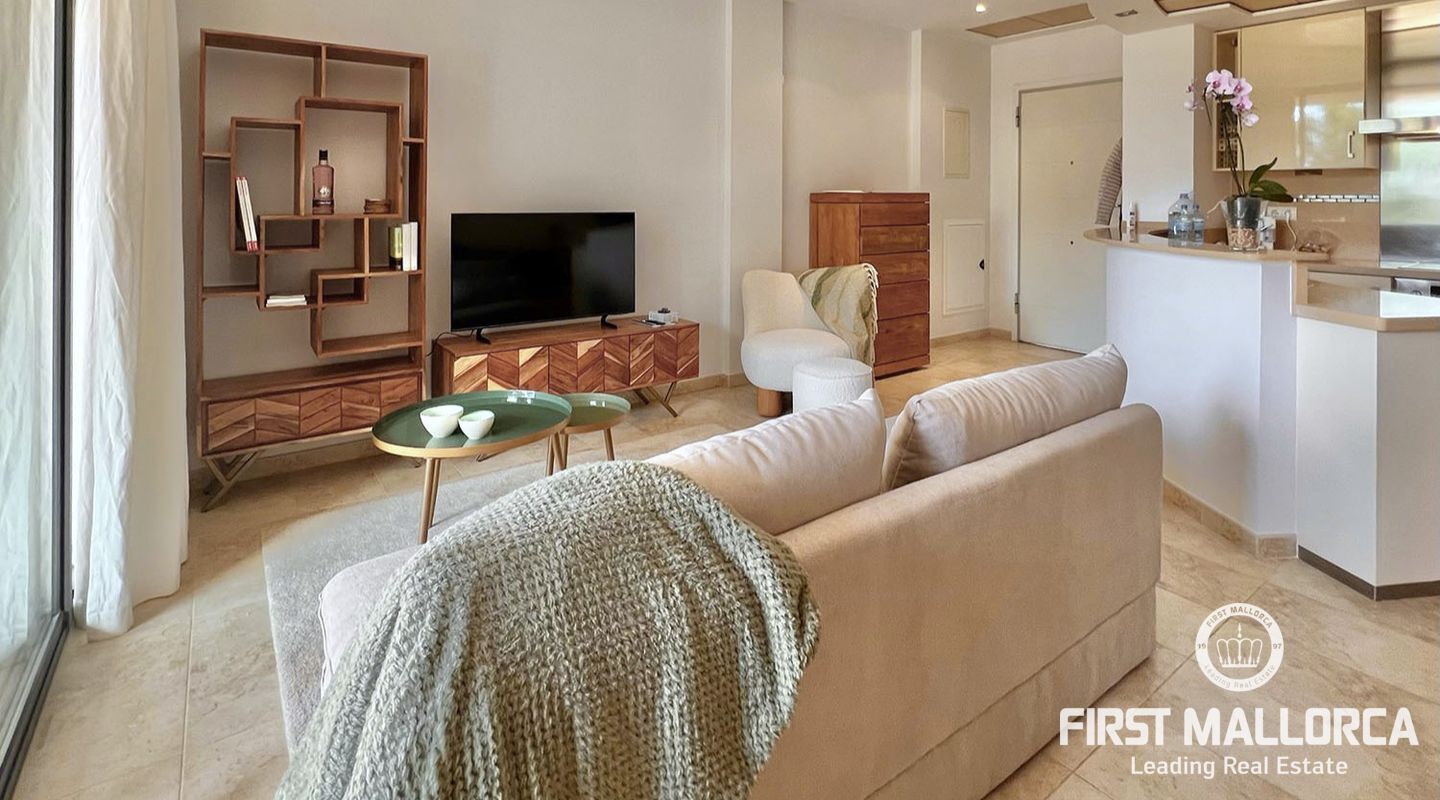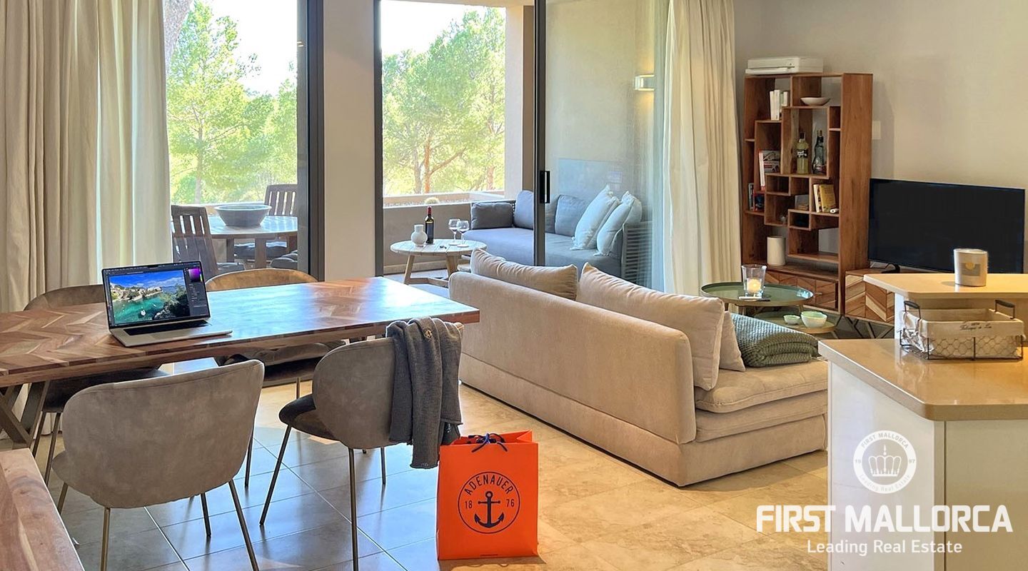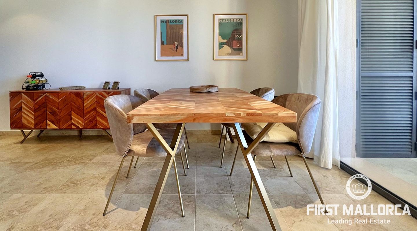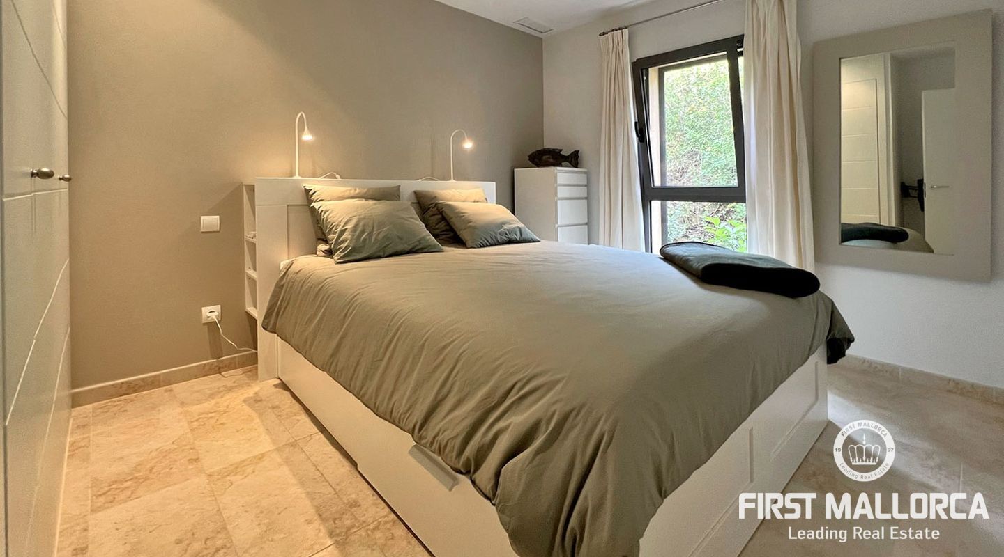 Vi presenterar en vacker lägenhet på 110 m² i Cala Fornells, den västra delen av Peguera, ett område som har en mallorkinsk bykänsla och ser lite turism. Det är dock bara 15 minuters promenad till Boulevar Peguera, den populära shoppinggatan med alla dess butiker, barer och restauranger. Lidl, Mercadona och Eroski, samt läkare och ett apotek, ligger inom gångavstånd på knappt 8 minuter.