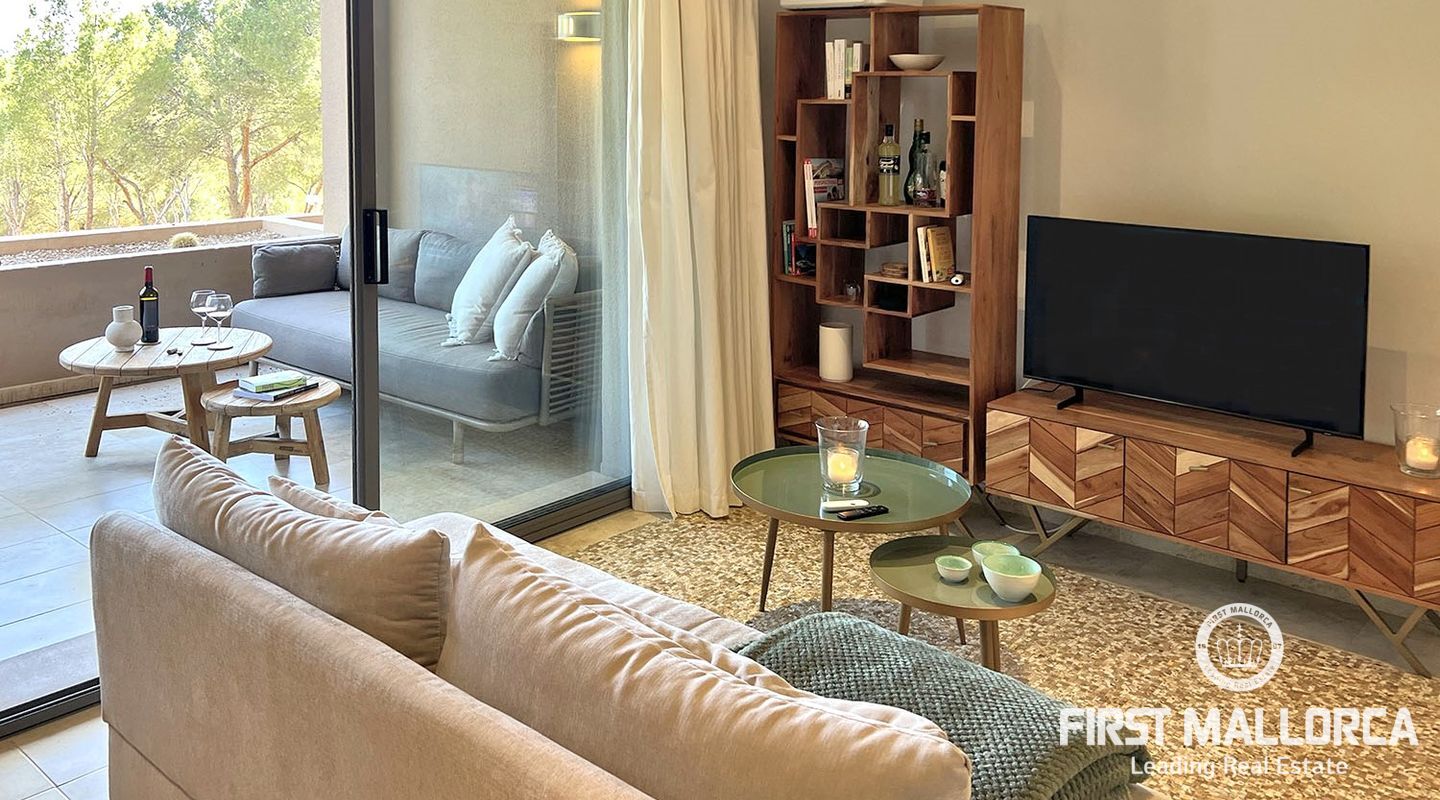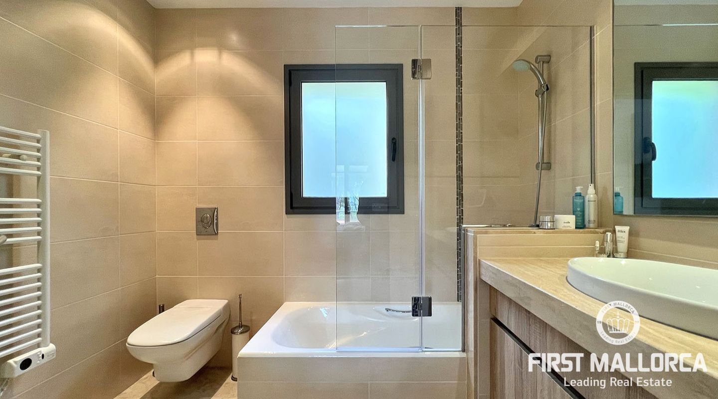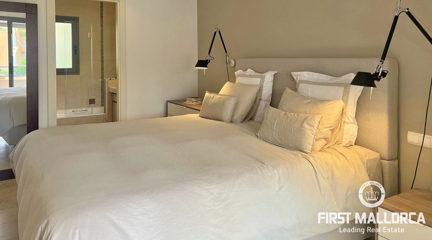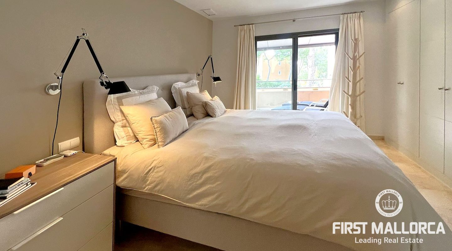 Vi presenterar en vacker lägenhet på 110 m² i Cala Fornells, den västra delen av Peguera, ett område som har en mallorkinsk bykänsla och ser lite turism. Det är dock bara 15 minuters promenad till Boulevar Peguera, den populära shoppinggatan med alla dess butiker, barer och restauranger. Lidl, Mercadona och Eroski, samt läkare och ett apotek, ligger inom gångavstånd på knappt 8 minuter.