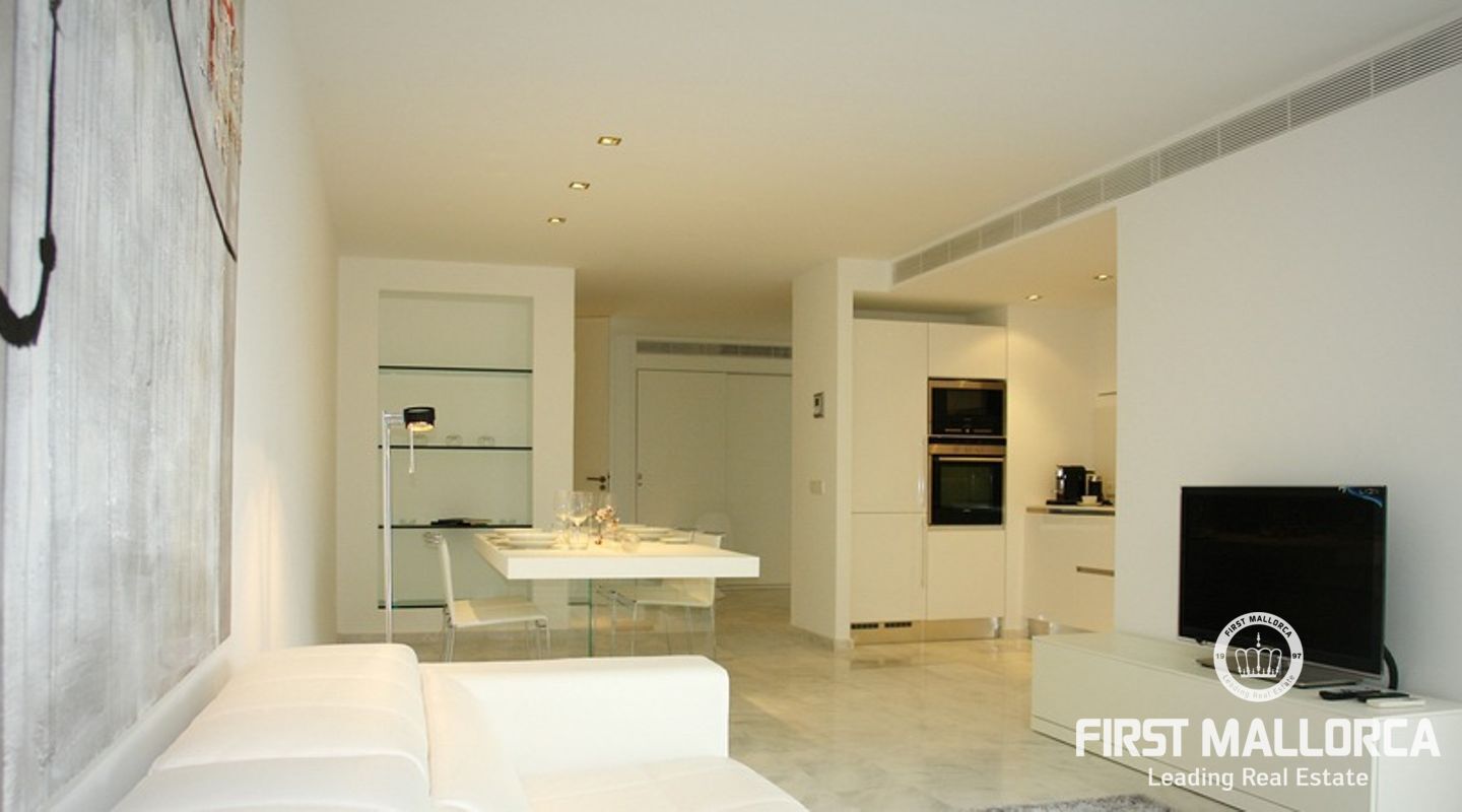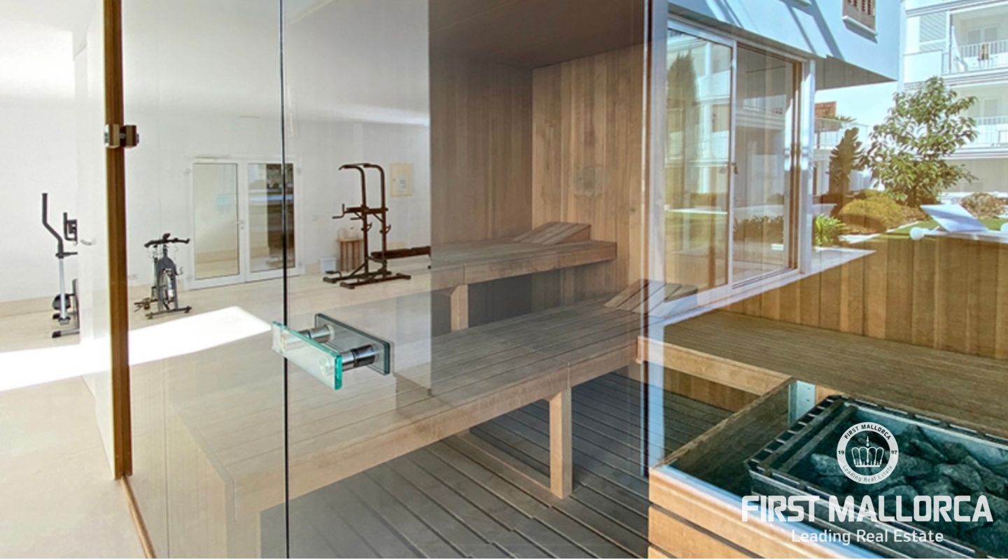 Den är fullt utrustad med separat styrd luftkonditionering i varje rum, ett Veneta-kök med Siemens-apparater, Duravit och Grohe i badrummen, Technal-fönster med dubbelglas och automatiskt justerbara yttre persienner. Hissen tar dig till den underjordiska parkeringen, som också har förvaringsrum.