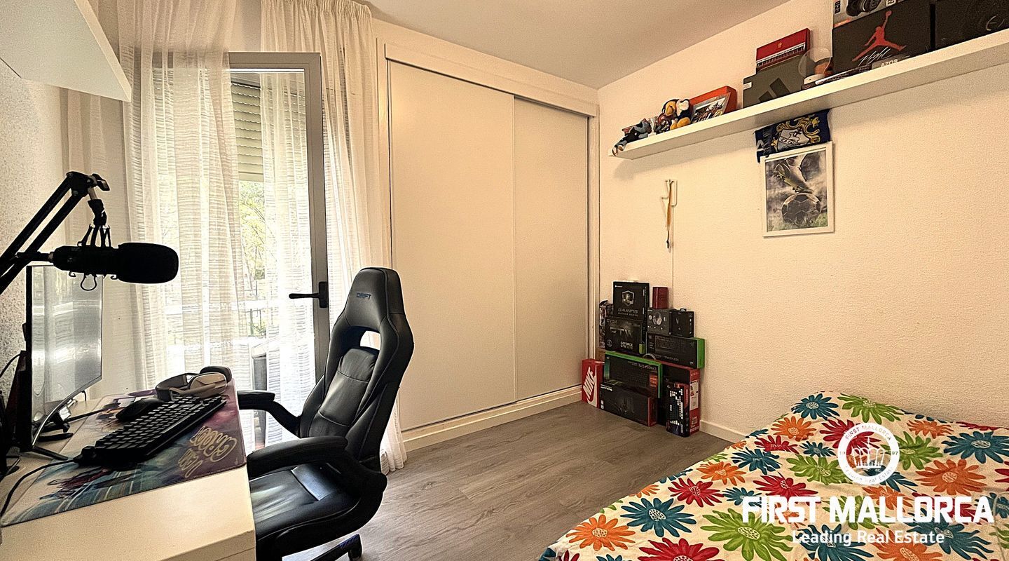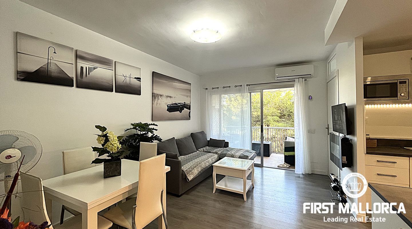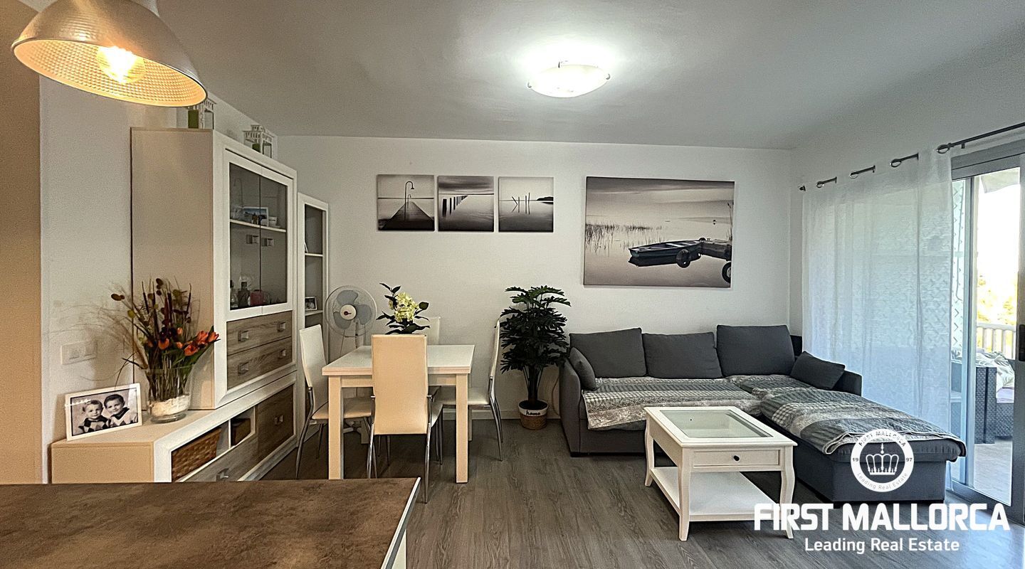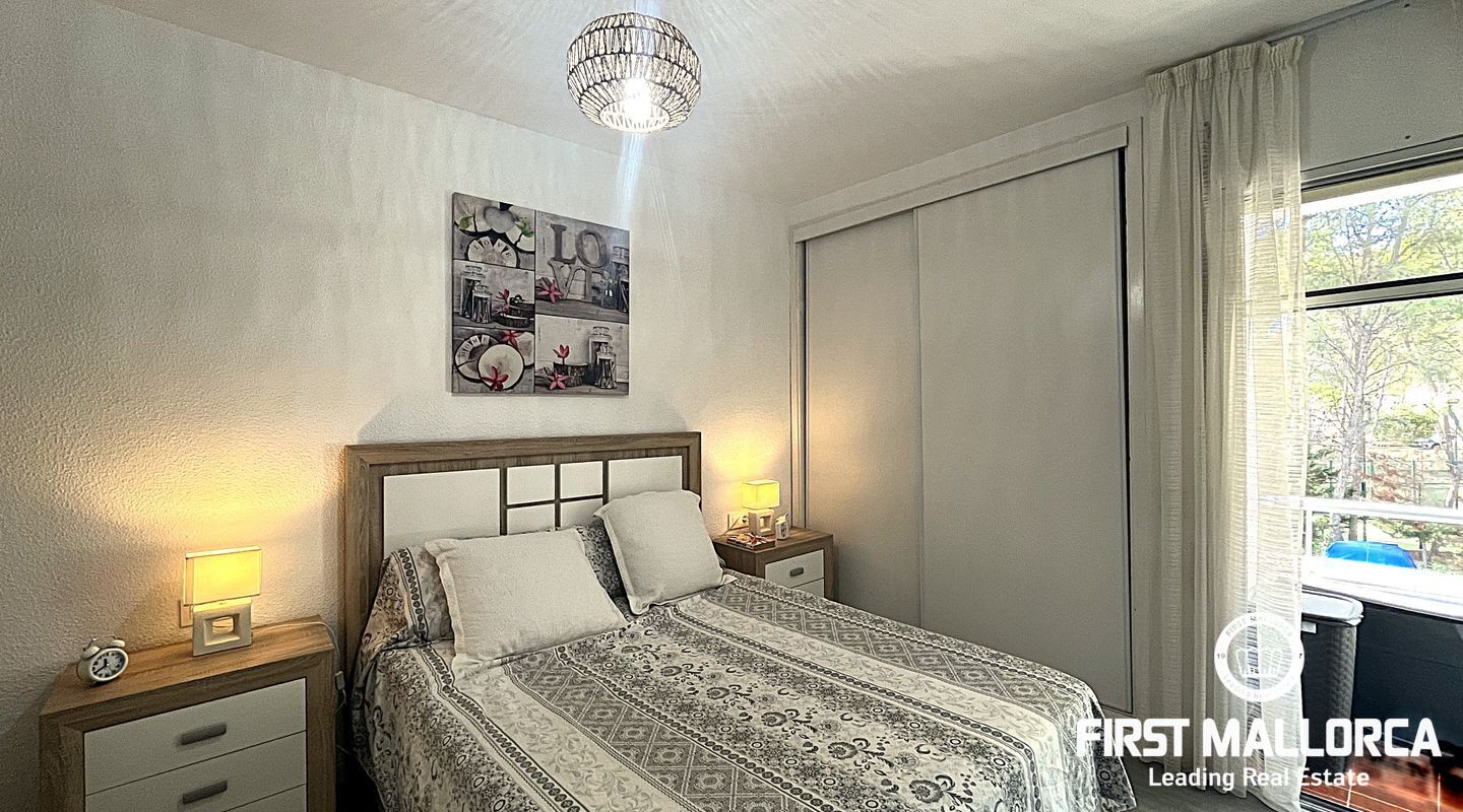 Letar du efter ett litet fritidshus på Mallorca, så lättskött att du bara behöver komma ihåg att låsa dörren när du reser? Detta är den perfekta fastigheten för dig! Byggd 1969 i en liten bostadsrätt i Sol de Mallorca, lägenheten mäter nästan 90m2 med en 8m2 terrass ingår. detta är tillräckligt stort för att ha ett bord och fåtöljer, varifrån man kan njuta av den vackra utsikten över naturparken och havet. Lägenheten renoverades nyligen och genom layoutändringen skapades ett tredje sovrum, medan det öppna köket designades med kvalitetselement och möbler som avslutas med en vacker bar i amerikansk stil. En liten elektrisk spis har installerats i TV-väggen för att skapa en ännu mer välkomnande miljö. Bostadsrätten är känd för att ha en av de största trädgårdarna i området, nästan som en park full av träd, där det finns en stig som leder till en närliggande strand. Sedan hittar vi en tennisbana, en enorm pool omgiven av solstolar runt om och till sist ett festlokal. Bostadsrätten har också så mycket parkeringsplatser, att det aldrig blir ont om plats när som helst.