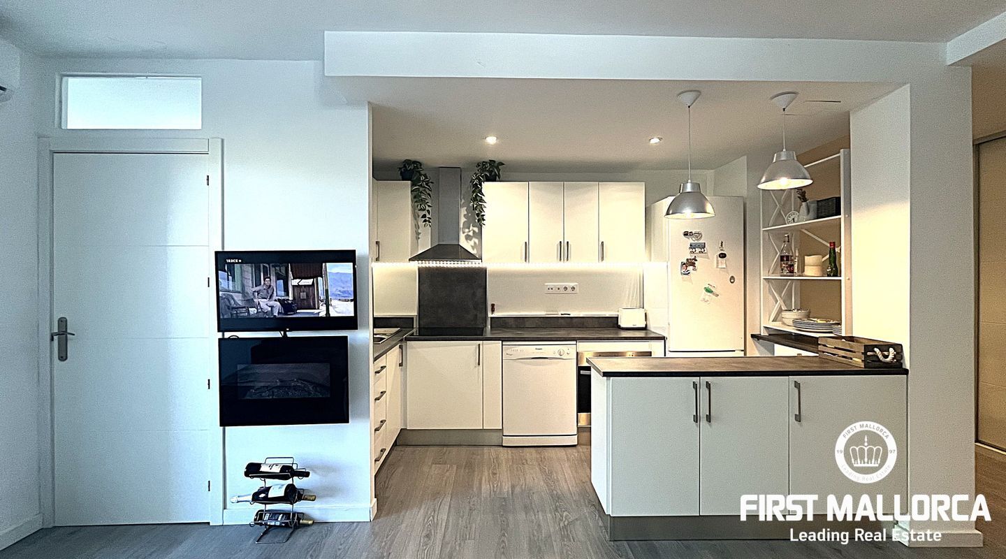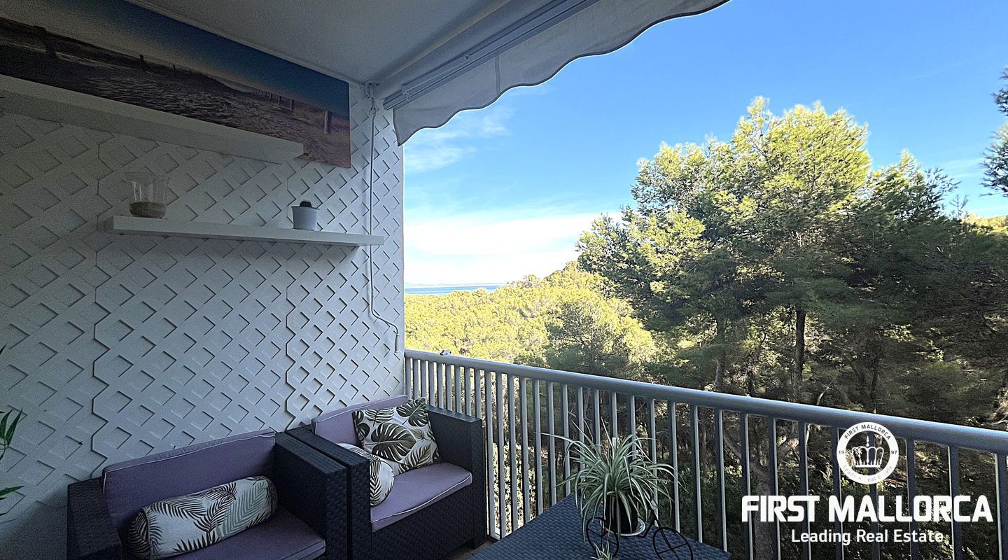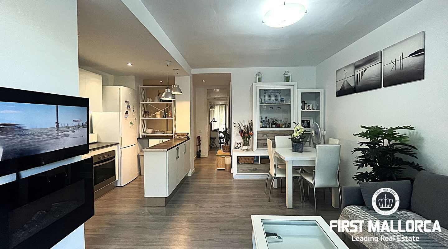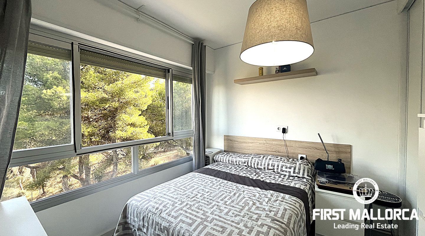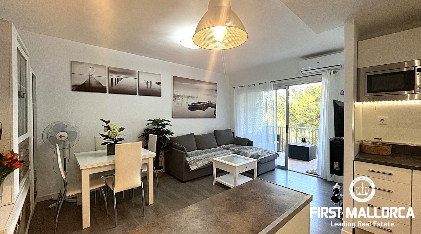 Letar du efter ett litet fritidshus på Mallorca, så lättskött att du bara behöver komma ihåg att låsa dörren när du reser? Detta är den perfekta fastigheten för dig! Byggd 1969 i en liten bostadsrätt i Sol de Mallorca, lägenheten mäter nästan 90m2 med en 8m2 terrass ingår. detta är tillräckligt stort för att ha ett bord och fåtöljer, varifrån man kan njuta av den vackra utsikten över naturparken och havet. Lägenheten renoverades nyligen och genom layoutändringen skapades ett tredje sovrum, medan det öppna köket designades med kvalitetselement och möbler som avslutas med en vacker bar i amerikansk stil. En liten elektrisk spis har installerats i TV-väggen för att skapa en ännu mer välkomnande miljö. Bostadsrätten är känd för att ha en av de största trädgårdarna i området, nästan som en park full av träd, där det finns en stig som leder till en närliggande strand. Sedan hittar vi en tennisbana, en enorm pool omgiven av solstolar runt om och till sist ett festlokal. Bostadsrätten har också så mycket parkeringsplatser, att det aldrig blir ont om plats när som helst.