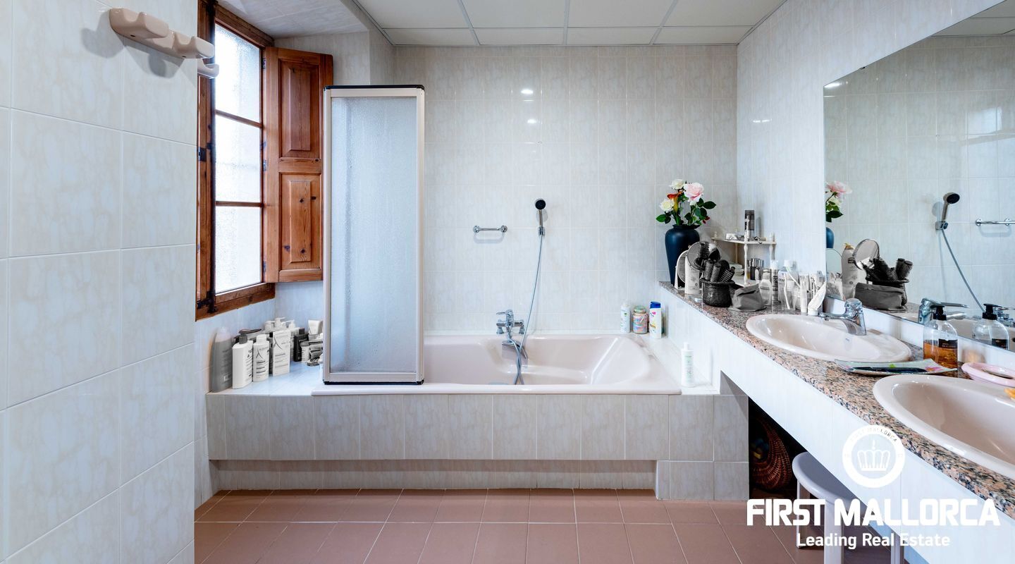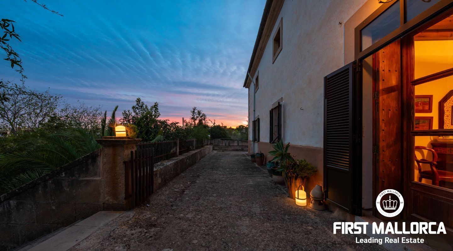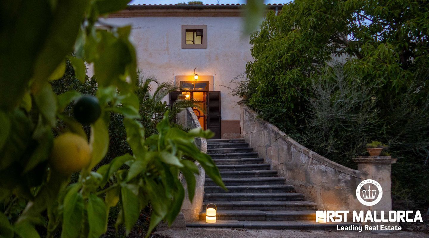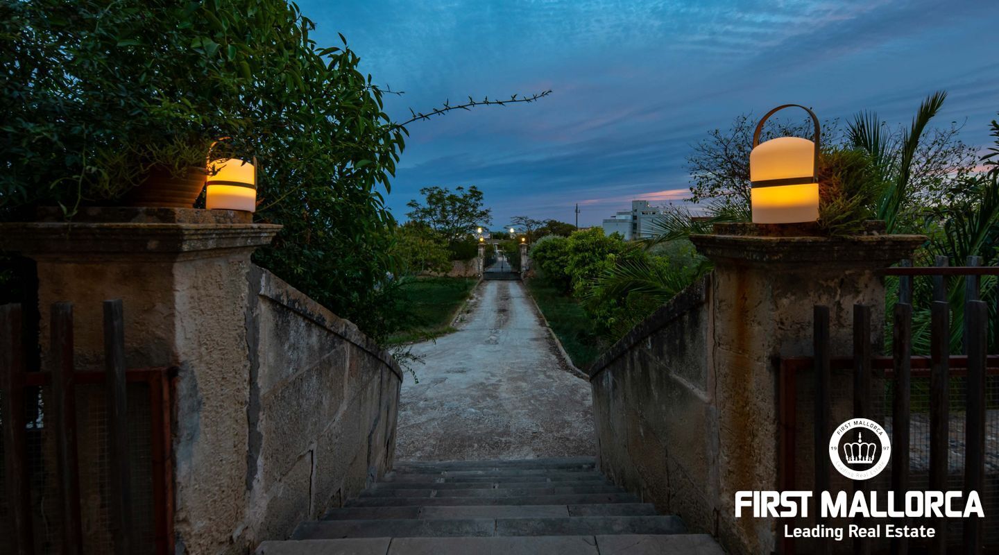 Den långa uppfarten leder genom en smidesjärnsport till herrgården, som har bevarat sin autentiska charm. Den rymliga utomhusmiljön med stora terrasser inbjuder till sociala kvällar under bar himmel – perfekt för att njuta av den spektakulära utsikten över Palma.