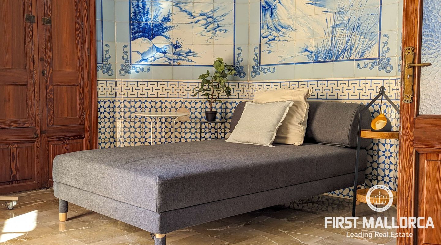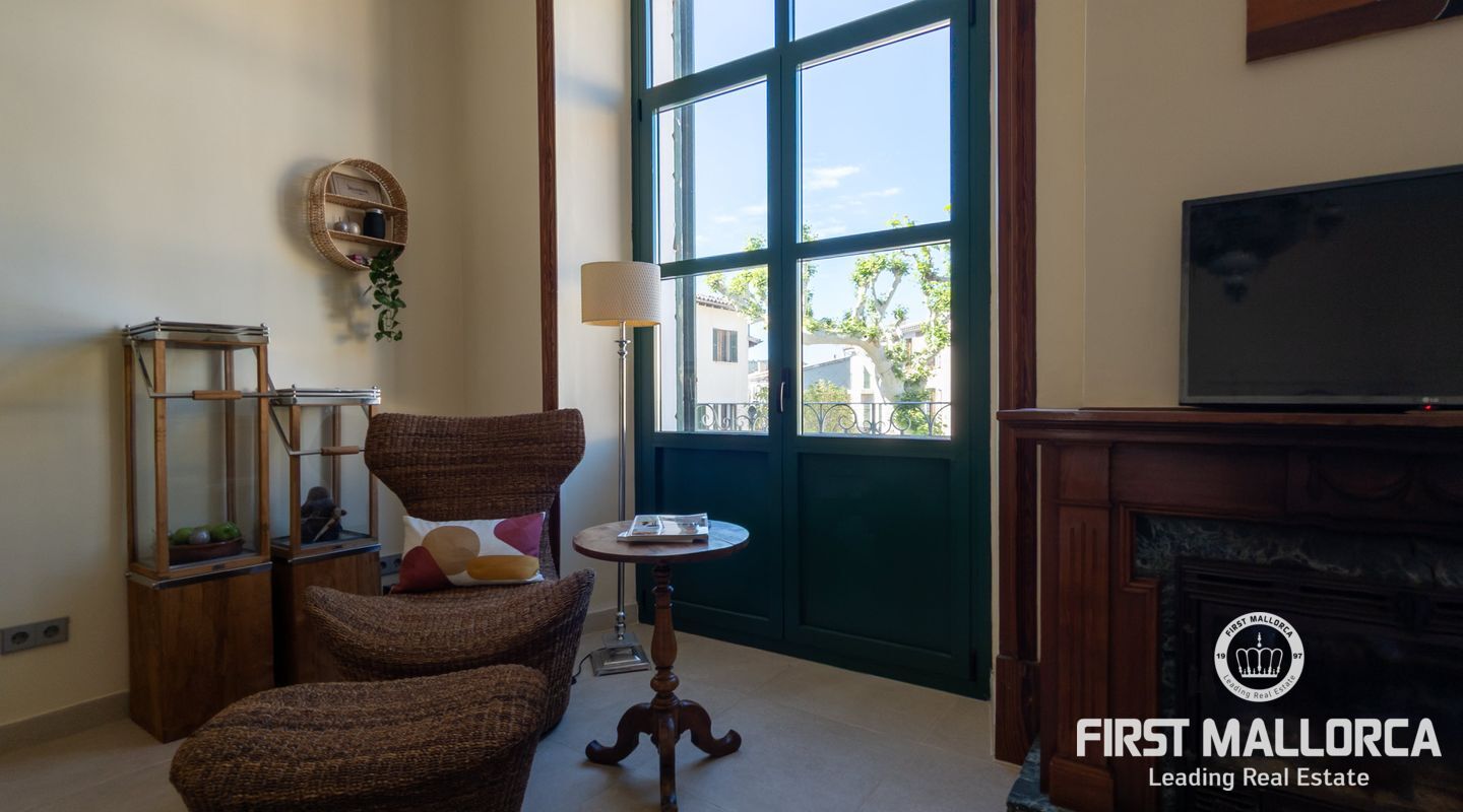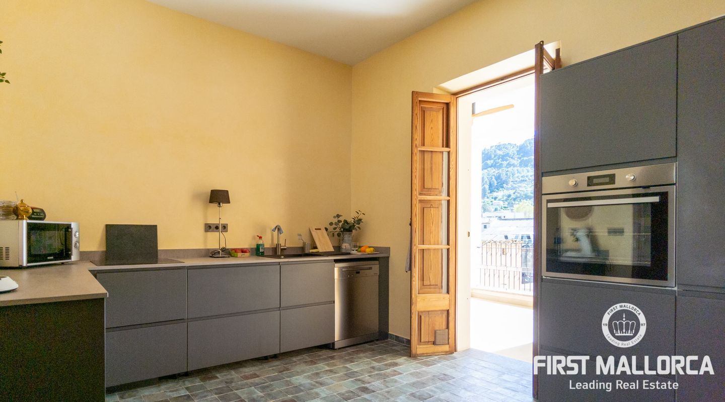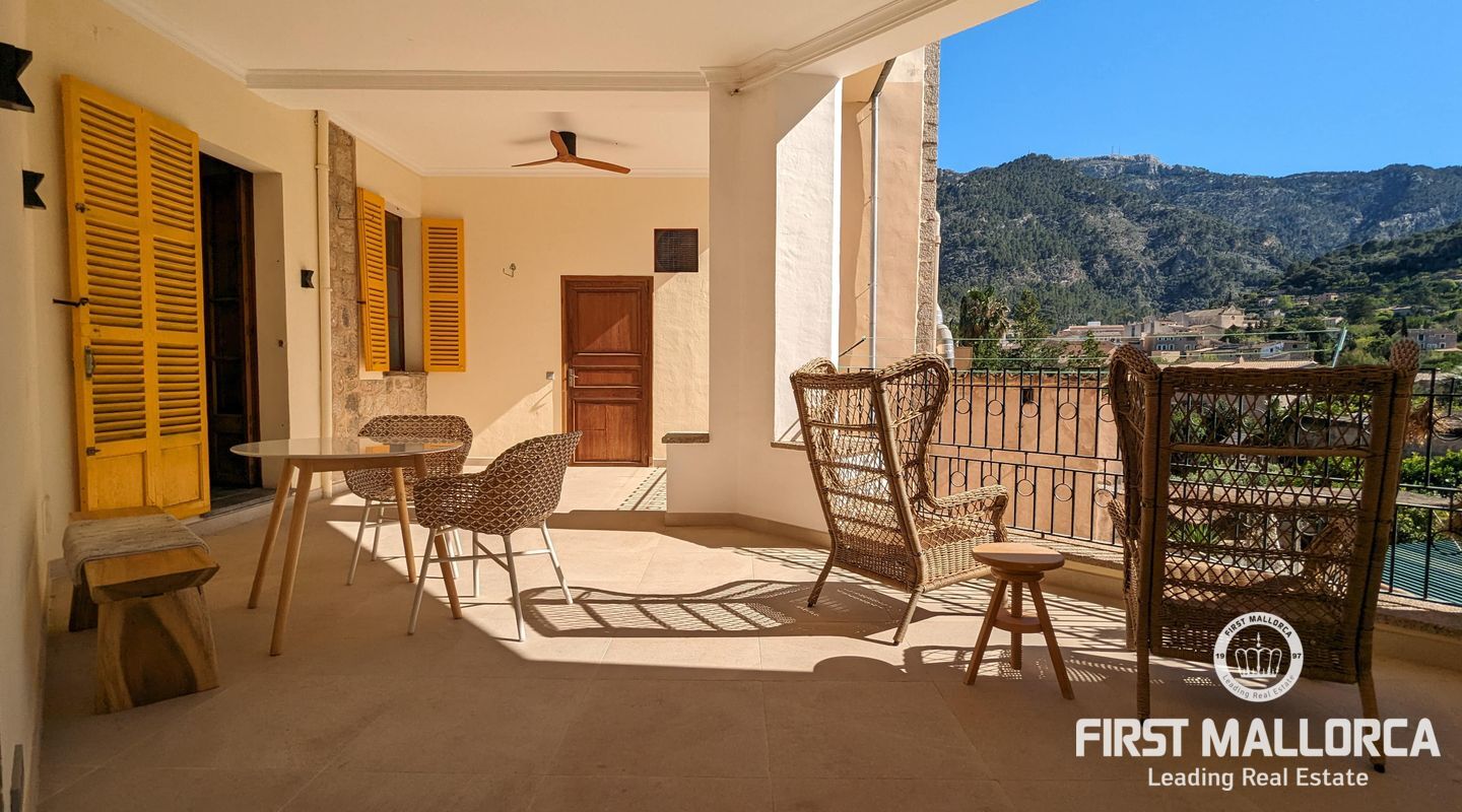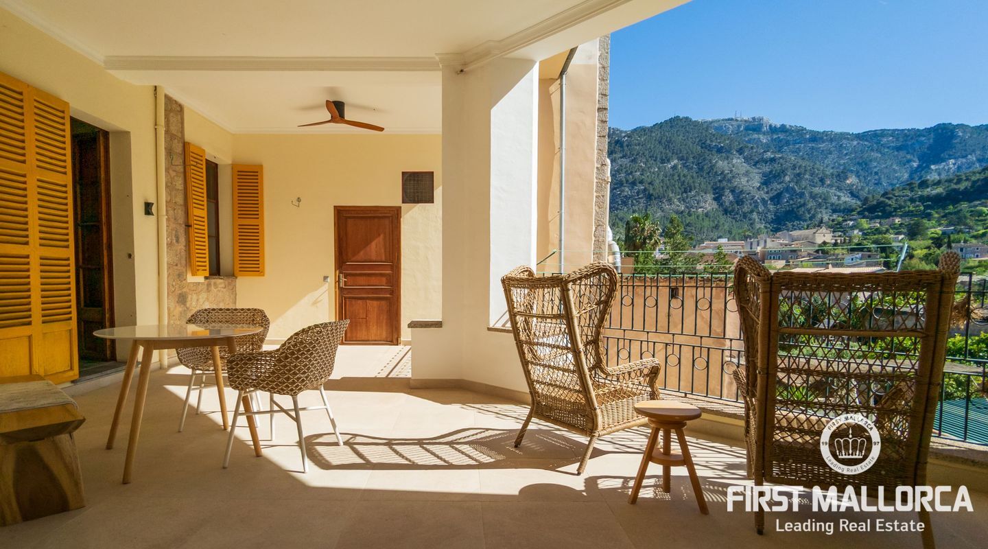 Det huvudsakliga vardagsrummet är översvämmat med ljus och har utsikt över ett lugnt torg. Den stora terrassen på baksidan av huset ger möjlighet till uteservering och lugna stunder med utsikt över Tramuntana-bergen.