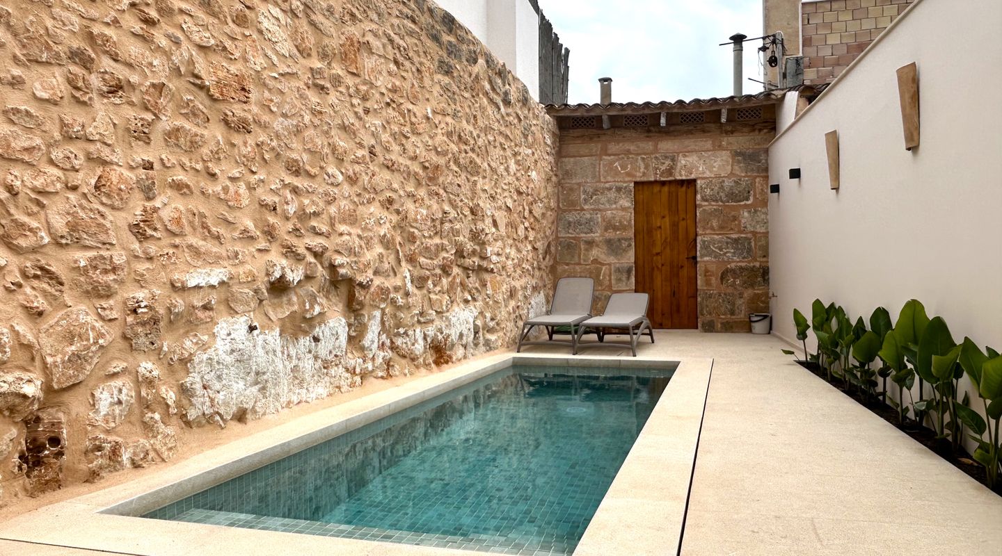 Detta charmiga radhus i Santanyí håller på att byggas och kommer att vara inflyttningsklart i slutet av 2023. Den 125 m2 stora fastigheten kommer att fördelas på två våningar. Bottenvåningen kommer att fördelas på ett rymligt vardagsrum och ett öppet kök i anslutning till matsalen och det vackra utomhusområdet där du kan njuta av solen på Mallorca och bada i din privata pool. Uppe på första våningen hittar du två sovrum med två egna badrum och en walk-in-garderob. Några extra funktioner är golvvärme, a/c och ett förråd. Detta radhus ligger i den vackra staden Santanyí, känd för den charmiga marknaden som du kan hitta där varje lördag och dess mysiga gator, moderna affärer och restauranger, samtidigt som det bara ligger 7 minuters bilresa från den vackra Santanyí-stranden.