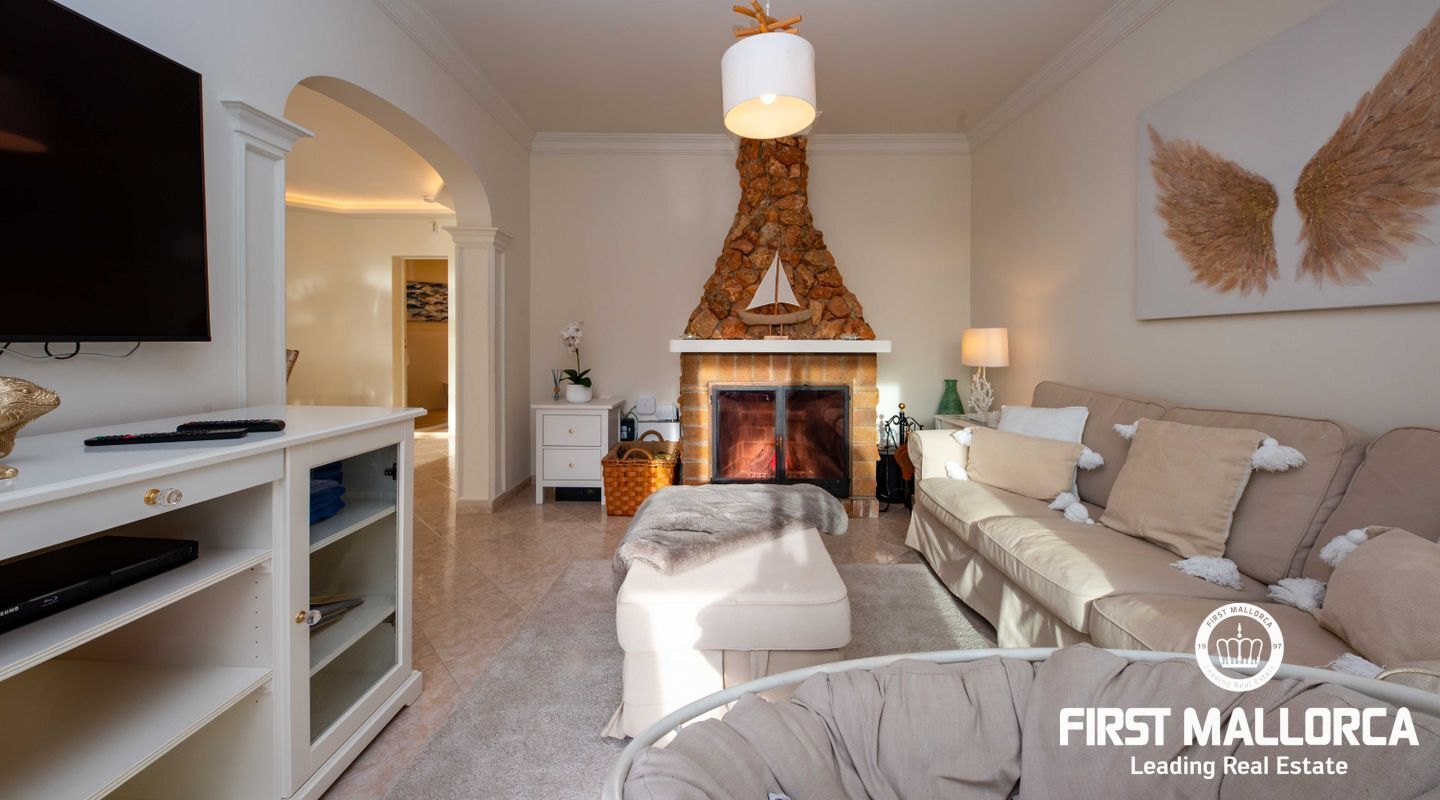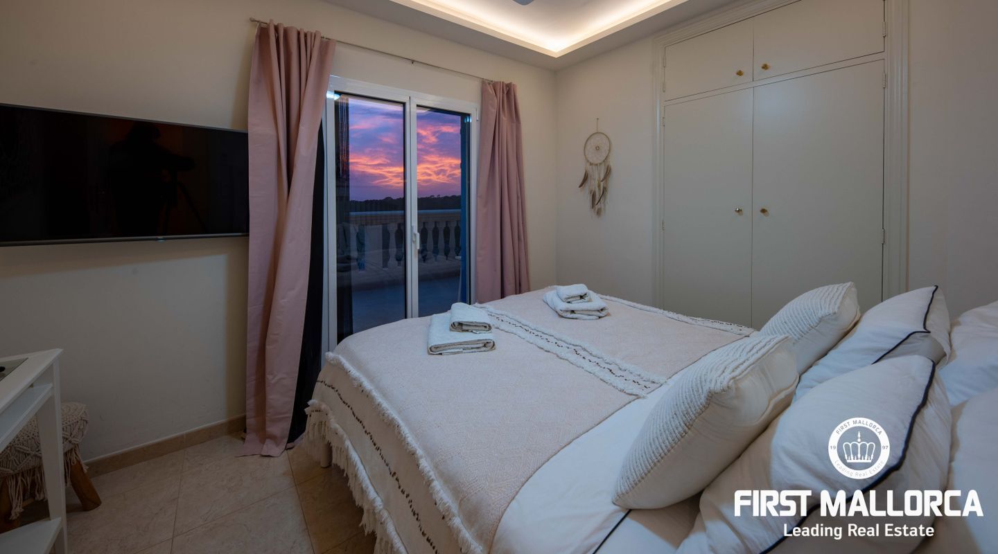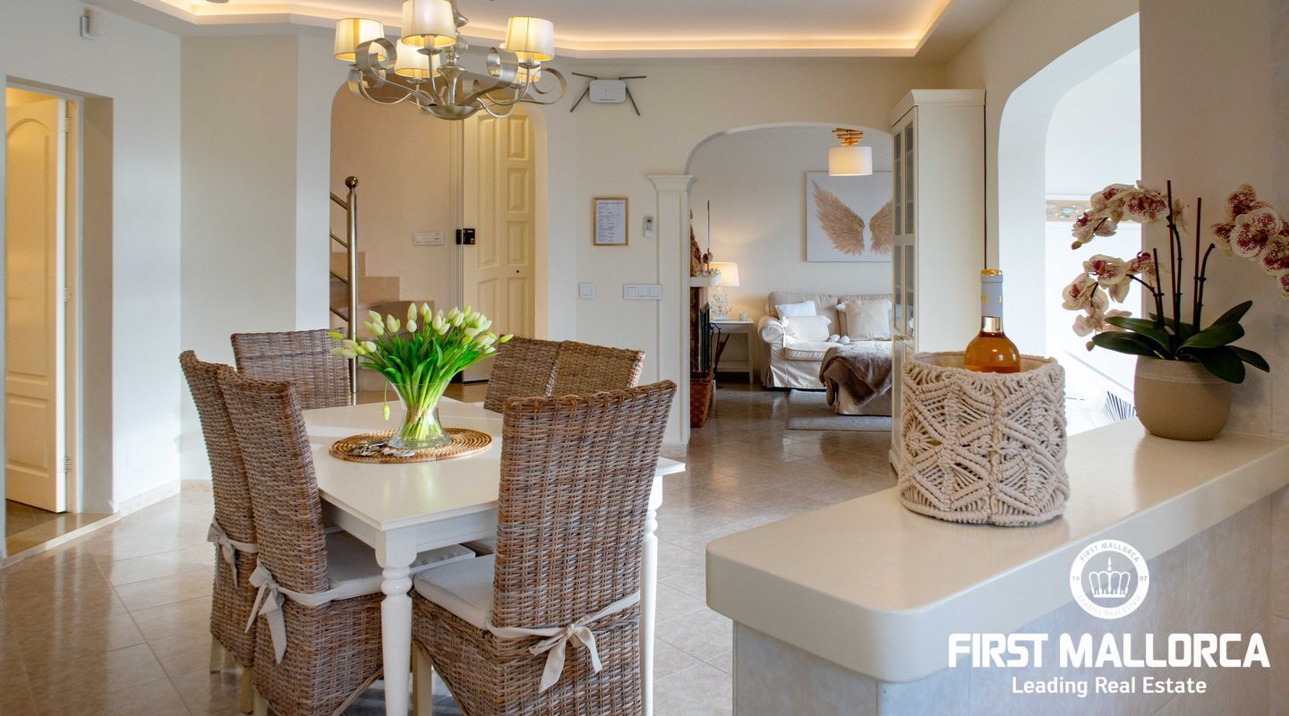 De 3 terrasserna på framsidan är höjdpunkten i denna villa, med direkt utsikt över havet och det unika landskapet i Cala Pi, perfekt för att koppla av, njuta av måltider utomhus eller bara betrakta skönheten i omgivningen. Den uppvärmda poolen, omgiven av palmer, inbjuder dig att njuta av en simtur när som helst på året, medan den rymliga tomten ger avskildhet och lugn.