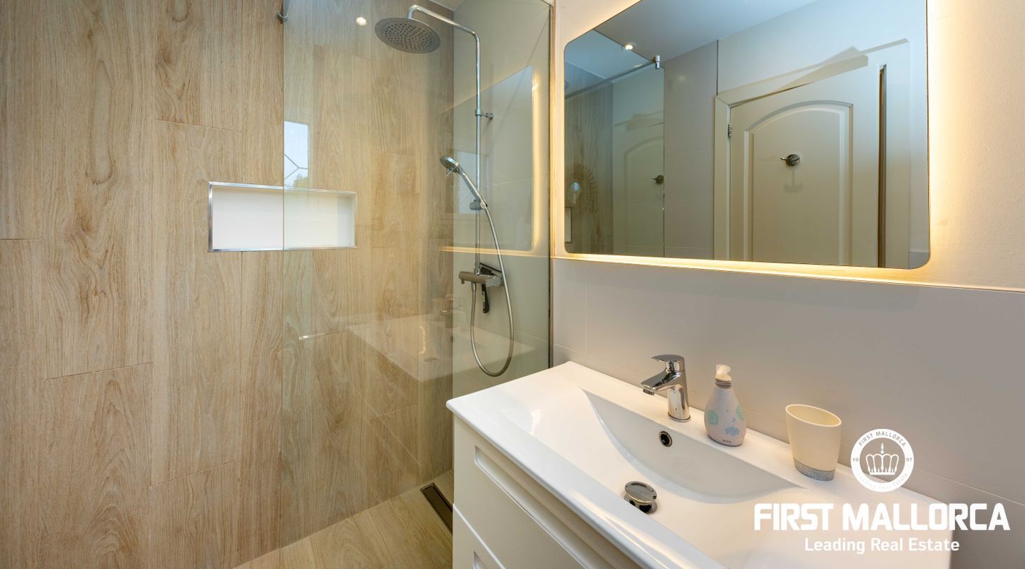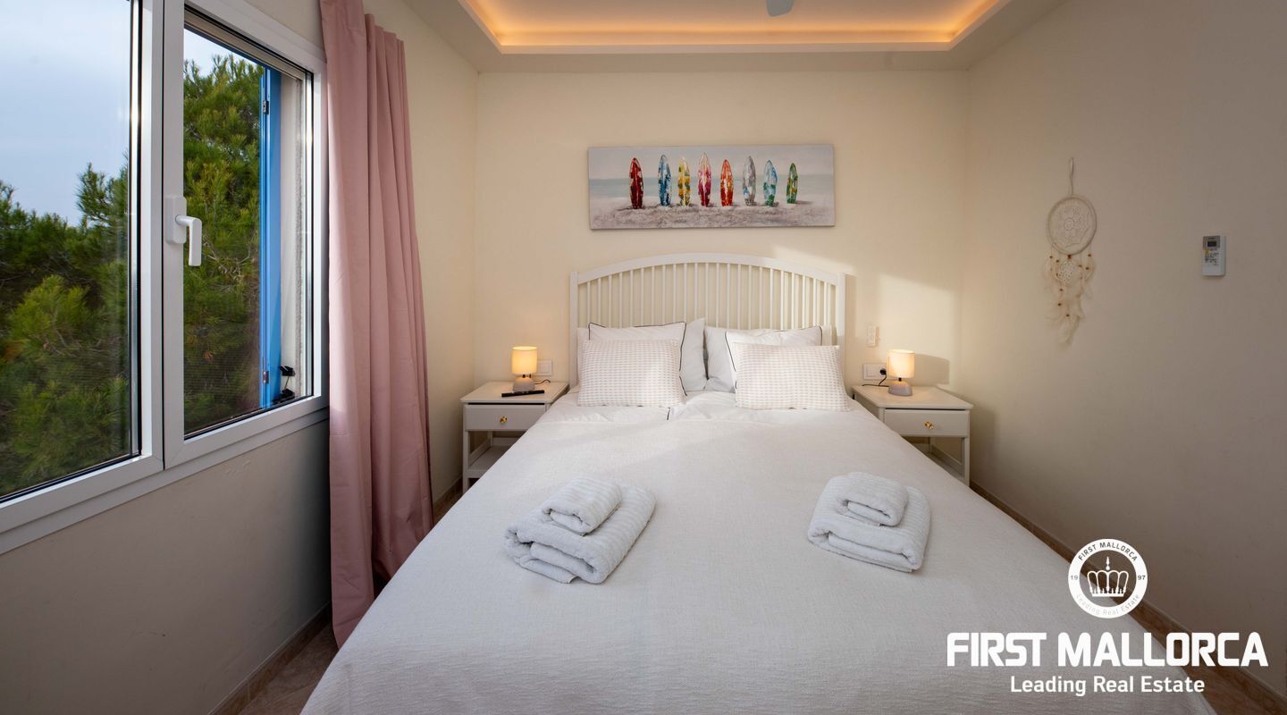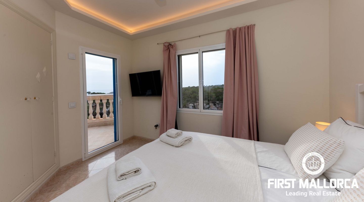 De 3 terrasserna på framsidan är höjdpunkten i denna villa, med direkt utsikt över havet och det unika landskapet i Cala Pi, perfekt för att koppla av, njuta av måltider utomhus eller bara betrakta skönheten i omgivningen. Den uppvärmda poolen, omgiven av palmer, inbjuder dig att njuta av en simtur när som helst på året, medan den rymliga tomten ger avskildhet och lugn.