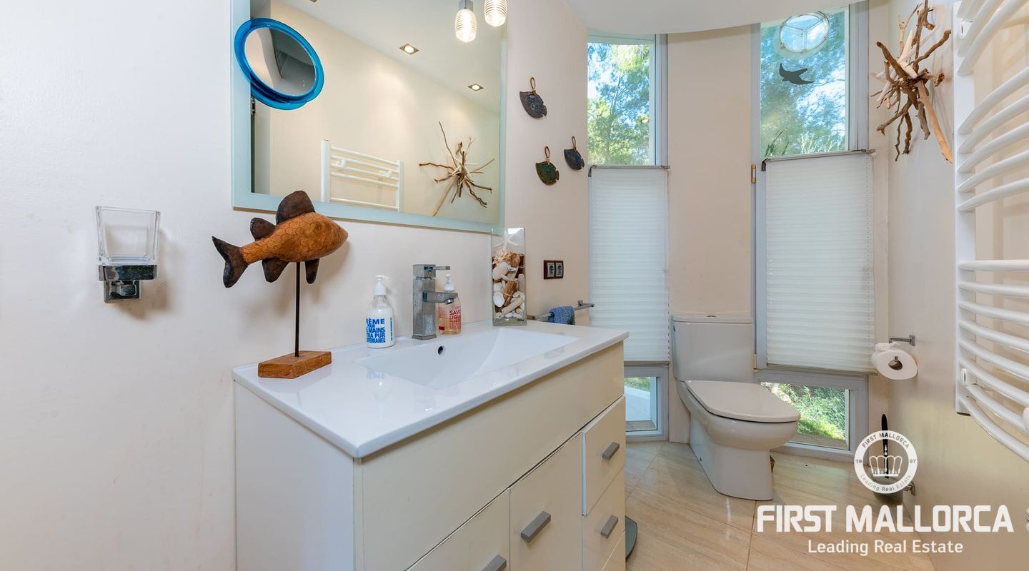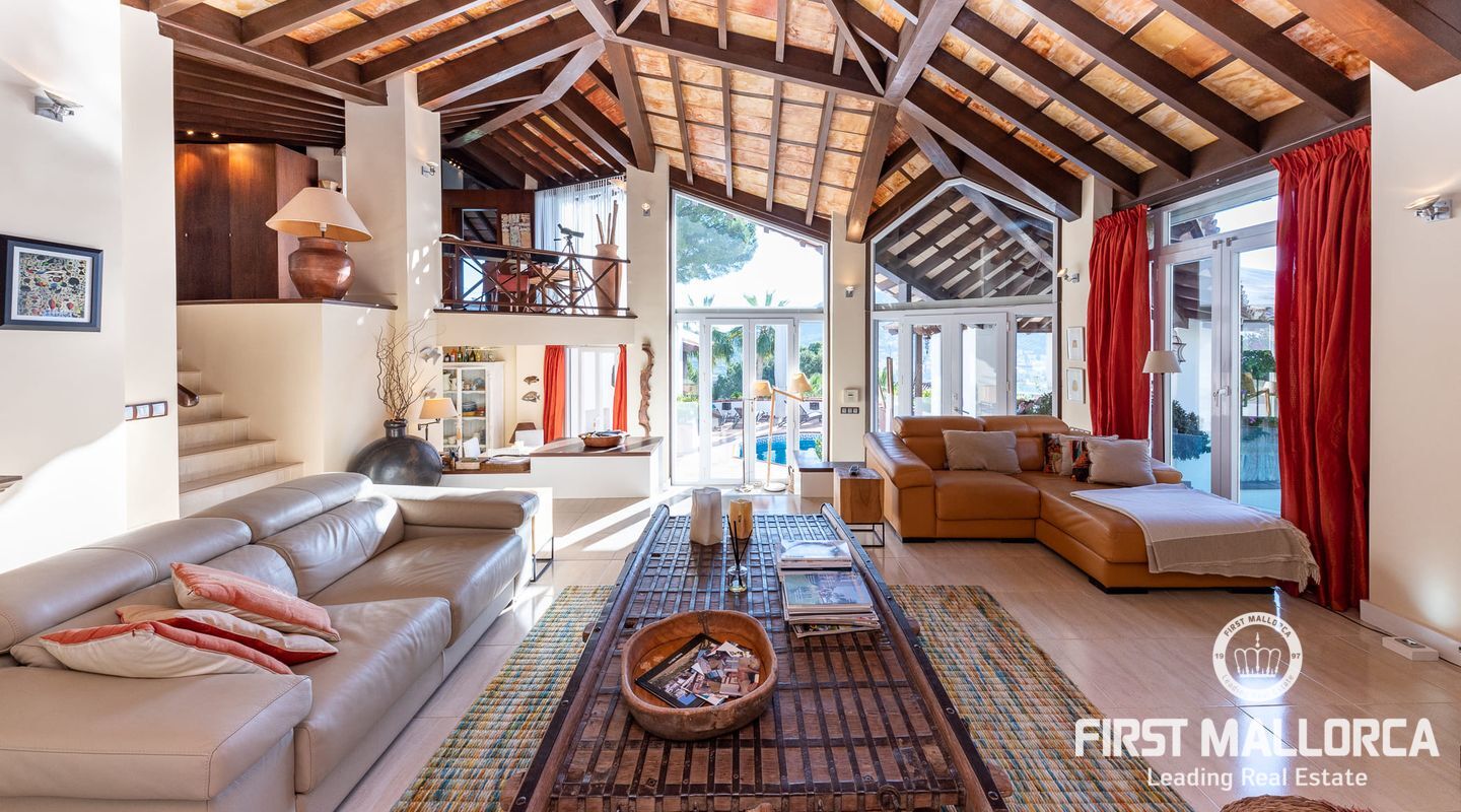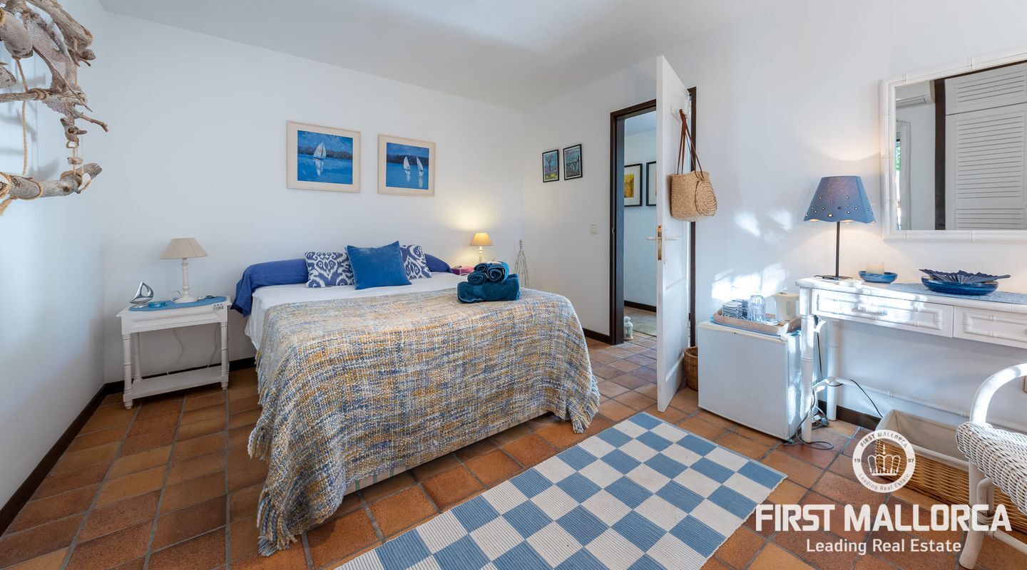 Den här fantastiska villan med måsar är ett riktigt hem med ett hjärta som väntar på att du ska komma och njuta av Medelhavsstilen med blå himmel och avkoppling på Mallorca. Huset är utformat med tanken på en mås i åtanke. Höga tak med träbjälkar, stora fönster och en pool som är integrerad i fastighetens trapphus vilket ger den en mycket originell touch, som ingen annan fastighet i Port Andratx. Med totalt 4 sovrum och 4 badrum, på bottenvåningen finns 2 rymliga och ljusa dubbelrum och 2 badrum, varav 1 med eget badrum. På den här nivån finns också det öppna vardagsrummet och matsalen som leder från köket. Den stora sviten ligger på övre plan med eget omklädningsrum och eget badrum. På denna nivå finns också ett kontor/konststudio i öppen planlösning. Det fjärde och sista sovrummet har en separat ingång med fullt badrum och gott om förvaringsutrymmen. Poolen är omgiven av en stor terrass och solbadplatser, och det finns en separat matplats med en täckt relaxavdelning vid poolen. En trädgård med gräsmatta, bougainvillor och ett citronträd kompletterar boendet. Alla har fantastisk havsutsikt. Det här huset är en dröm som går i uppfyllelse.