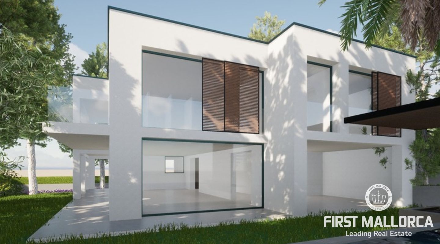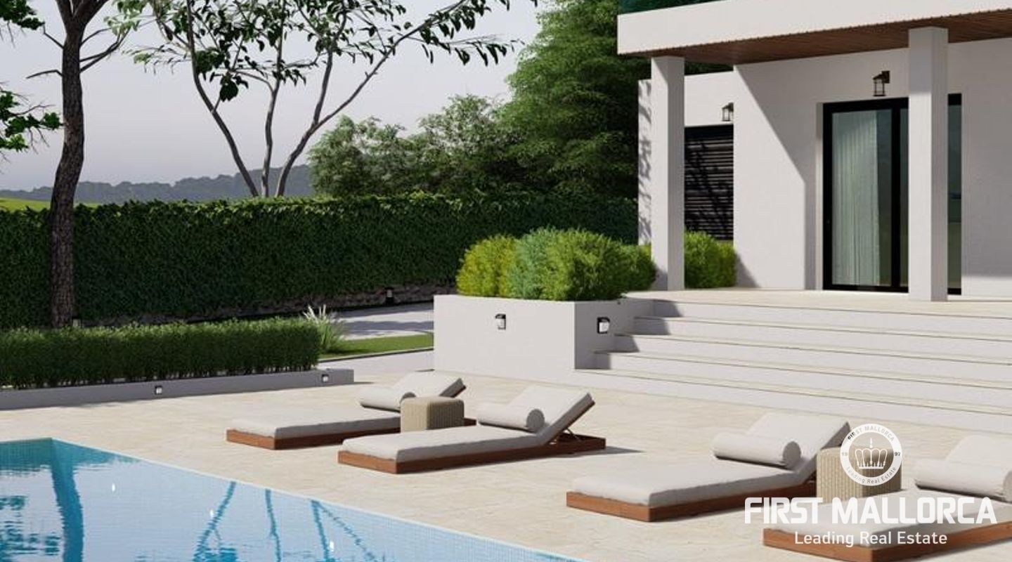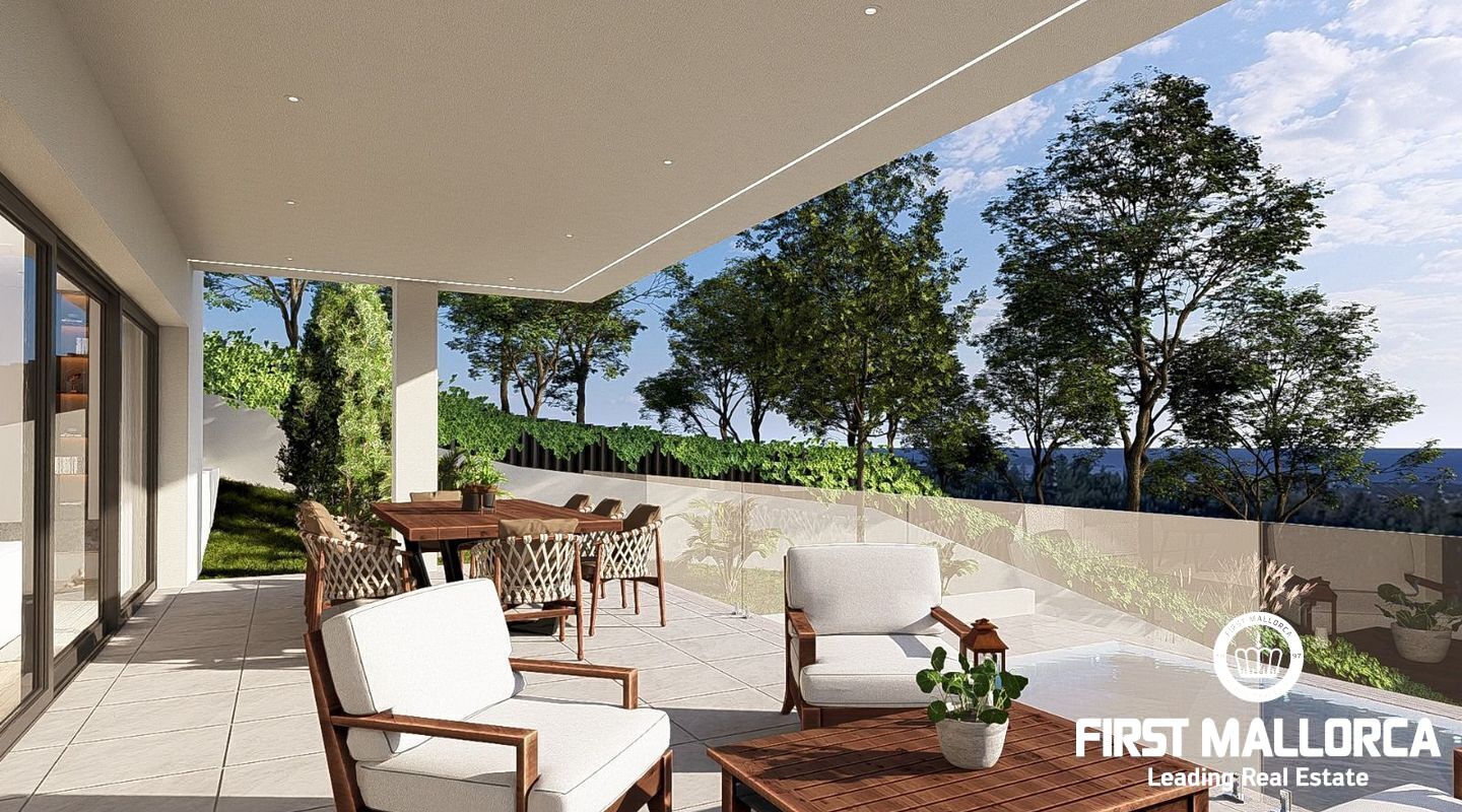 Denna moderna nya villa är för närvarande under uppbyggnad och förväntas stå färdig sommaren 2024. Den kommer att ha 4 sovrum på övervåningen, alla med eget badrum. Från denna nivå kommer du att ha en delvis havsutsikt. På bottenvåningen kommer det att finnas ett rymligt vardagsrum och matplats med öppen planlösning, som ansluter direkt till terrassen och poolområdet. Här kan du njuta av de många timmarna av Mallorcas solsken till fullo, med fastigheten som är omgiven av gamla träd och erbjuder en hög nivå av integritet. Det hela avrundas av en källare där t.ex. ett gym, en vinkällare eller en hemmabio kunde hitta sin plats.
