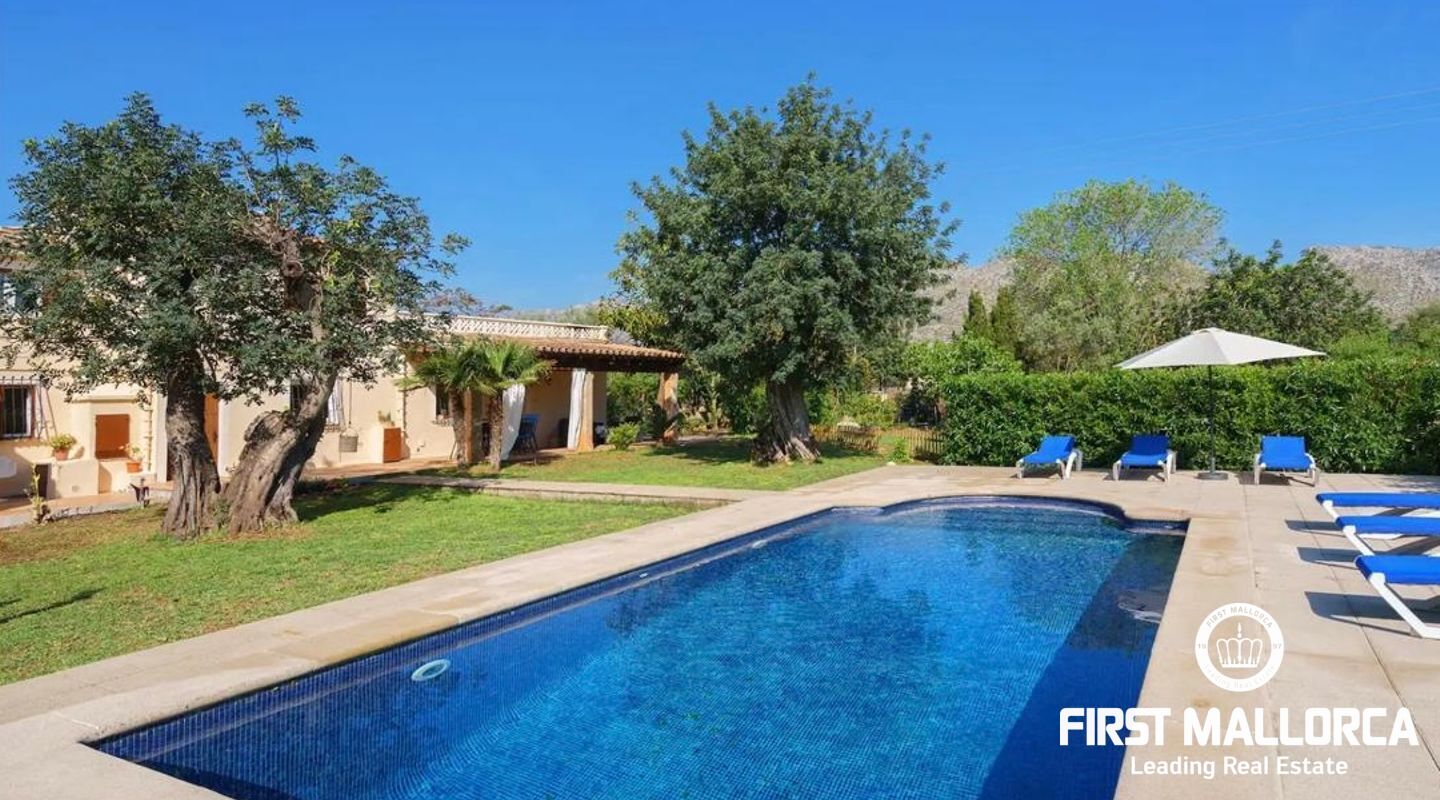 Rymliga utomhusområden ger gott om utrymme för avkoppling och underhållning. Den privata poolen erbjuder en uppfriskande tillflyktsort från värmen. Huset visar upp traditionell mallorkinsk arkitektur med charmiga detaljer. Den lugna landsbygden ger en fridfull och idyllisk atmosfär. Fastigheten ligger nära Pollensa stad och stränder, med enkel tillgång till bekvämligheter och kustaktiviteter.
