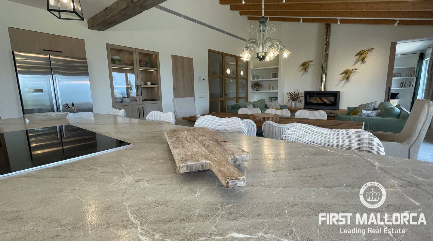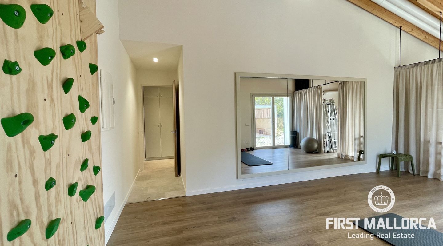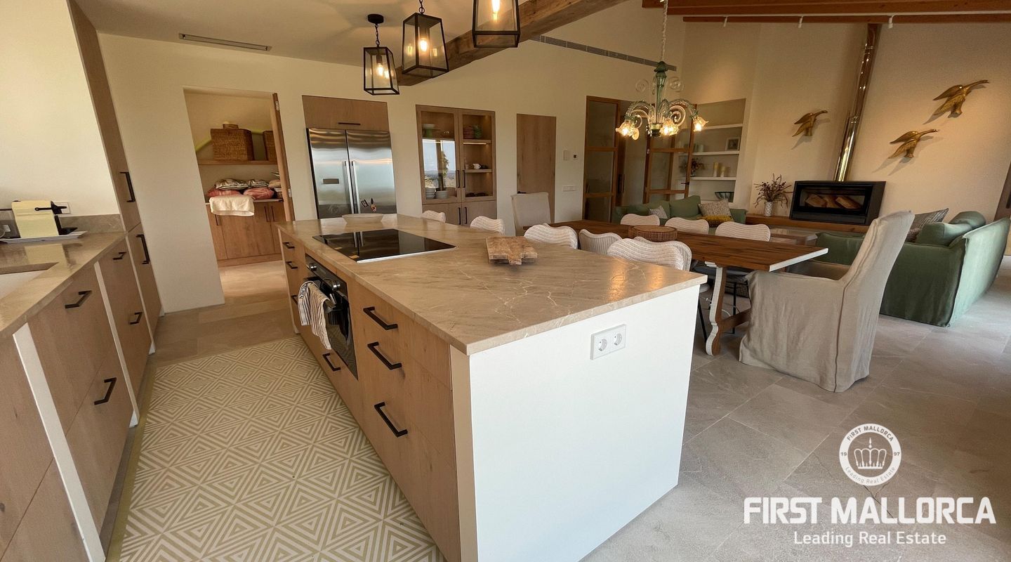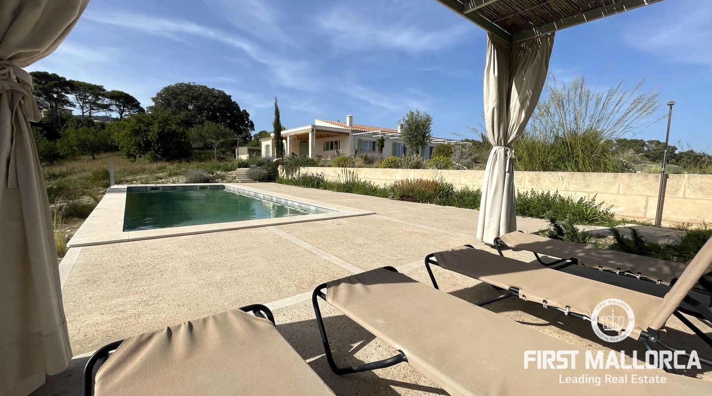 Upplev ekologisk lyx när den är som bäst med detta fantastiska envåningshus som ligger inbäddat i det fridfulla landskapet i Selva. Detta hem är noggrant utformat med miljömedvetenhet i åtanke och integreras sömlöst med sin omgivning samtidigt som det erbjuder hisnande panoramautsikt över Selva, Puig de Santa Magdalena och Alcúdia-bukten. Bostaden är tillverkad av naturliga och lokala material och prioriterar hållbarhet och komfort, och har en kemikaliefri interiörmiljö. Certifierat enligt Passivhaus-kriterierna och med en imponerande energieffektivitetsklassning på "A" garanterar detta hem minimala CO2-utsläpp och optimal energiprestanda. Luftkvaliteten inomhus är av största vikt, vilket underlättas av ett sofistikerat mekaniskt renoveringssystem som ger konsekvent ventilation i hela huset. Husets orientering maximerar det naturliga ljuset genom att utnyttja solens värme, samtidigt som isoleringsåtgärderna upprätthåller en mysig atmosfär året runt. Huset är utrustat med solpaneler för energiproduktion och dubbla cisterner för vattenförsörjning, och är en symbol för självförsörjning och miljöansvar. Det 503 m² stora huset byggdes 2021 och har 4 sovrum, 4 badrum (tre en suite) och en mängd lyxiga bekvämligheter. Invändigt kompletterar vackra trädetaljer den professionellt designade interiören, med ett kök med öppen planlösning och en sittgrupp, luftkonditionering och solvärme. Ytterligare höjdpunkter inkluderar tvättstuga, skafferi och utvändig parkering för tre bilar och 24-timmars säkerhetssystem garanterar sinnesfrid. Trädgården utgör en integrerad del av fastighetens landskap och är utformad som en medelhavsträdgård med låg vattenförbrukning och lågt underhåll. Det är en trädgård under utveckling, med arter som valts ut för att blomstra under hela året och med tillfällig tillsyn av en specialiserad trädgårdsmästare. Poolen, med något salt vatten, är integrerad i denna miljö och erbjuder en fantastisk utsikt över det omgivande landskapet. Den här fastigheten är bekvämt belägen nära bekvämligheter men ändå omsluten av lugn landsbygd och erbjuder den perfekta balansen mellan lyx, hållbarhet och naturlig skönhet. Missa inte chansen att göra denna eko-chica oas till din egen och kontakta oss idag för mer information eller för att ordna en visning.