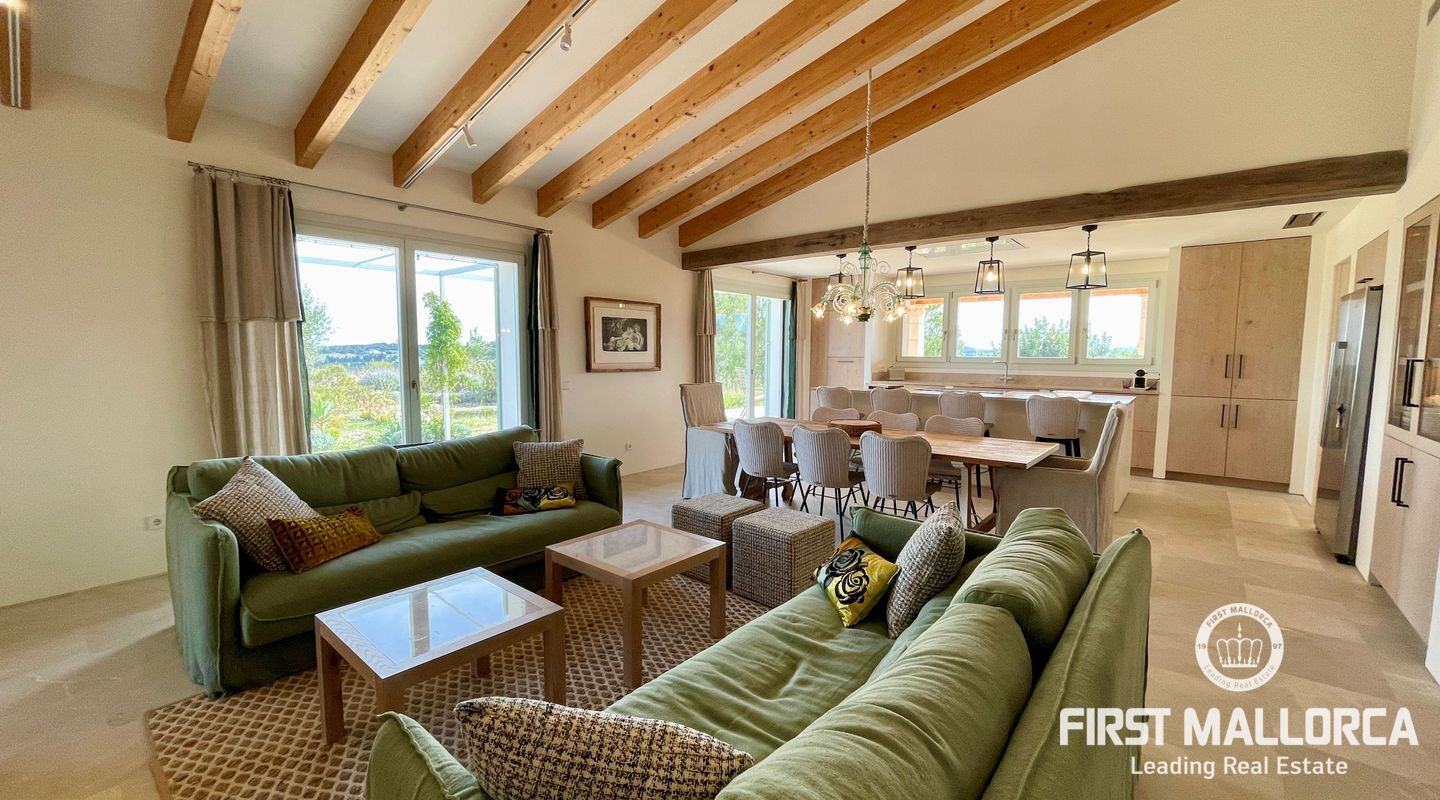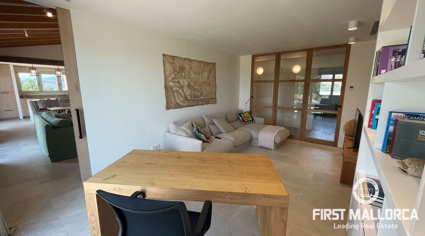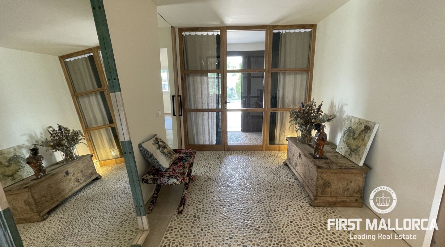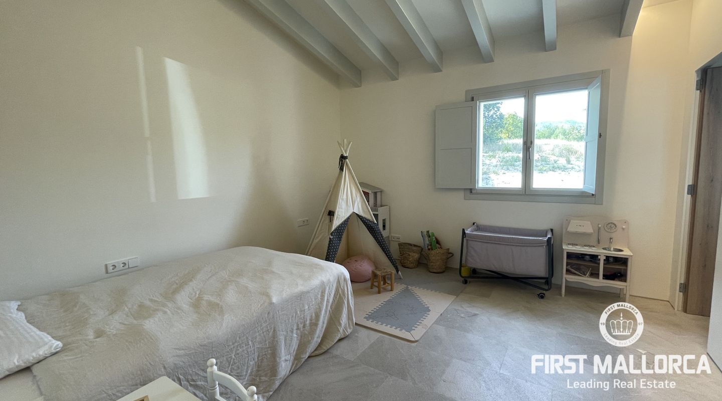 Upplev ekologisk lyx när den är som bäst med detta fantastiska envåningshus som ligger inbäddat i det fridfulla landskapet i Selva. Detta hem är noggrant utformat med miljömedvetenhet i åtanke och integreras sömlöst med sin omgivning samtidigt som det erbjuder hisnande panoramautsikt över Selva, Puig de Santa Magdalena och Alcúdia-bukten. Bostaden är tillverkad av naturliga och lokala material och prioriterar hållbarhet och komfort, och har en kemikaliefri interiörmiljö. Certifierat enligt Passivhaus-kriterierna och med en imponerande energieffektivitetsklassning på "A" garanterar detta hem minimala CO2-utsläpp och optimal energiprestanda. Luftkvaliteten inomhus är av största vikt, vilket underlättas av ett sofistikerat mekaniskt renoveringssystem som ger konsekvent ventilation i hela huset. Husets orientering maximerar det naturliga ljuset genom att utnyttja solens värme, samtidigt som isoleringsåtgärderna upprätthåller en mysig atmosfär året runt. Huset är utrustat med solpaneler för energiproduktion och dubbla cisterner för vattenförsörjning, och är en symbol för självförsörjning och miljöansvar. Det 503 m² stora huset byggdes 2021 och har 4 sovrum, 4 badrum (tre en suite) och en mängd lyxiga bekvämligheter. Invändigt kompletterar vackra trädetaljer den professionellt designade interiören, med ett kök med öppen planlösning och en sittgrupp, luftkonditionering och solvärme. Ytterligare höjdpunkter inkluderar tvättstuga, skafferi och utvändig parkering för tre bilar och 24-timmars säkerhetssystem garanterar sinnesfrid. Trädgården utgör en integrerad del av fastighetens landskap och är utformad som en medelhavsträdgård med låg vattenförbrukning och lågt underhåll. Det är en trädgård under utveckling, med arter som valts ut för att blomstra under hela året och med tillfällig tillsyn av en specialiserad trädgårdsmästare. Poolen, med något salt vatten, är integrerad i denna miljö och erbjuder en fantastisk utsikt över det omgivande landskapet. Den här fastigheten är bekvämt belägen nära bekvämligheter men ändå omsluten av lugn landsbygd och erbjuder den perfekta balansen mellan lyx, hållbarhet och naturlig skönhet. Missa inte chansen att göra denna eko-chica oas till din egen och kontakta oss idag för mer information eller för att ordna en visning.