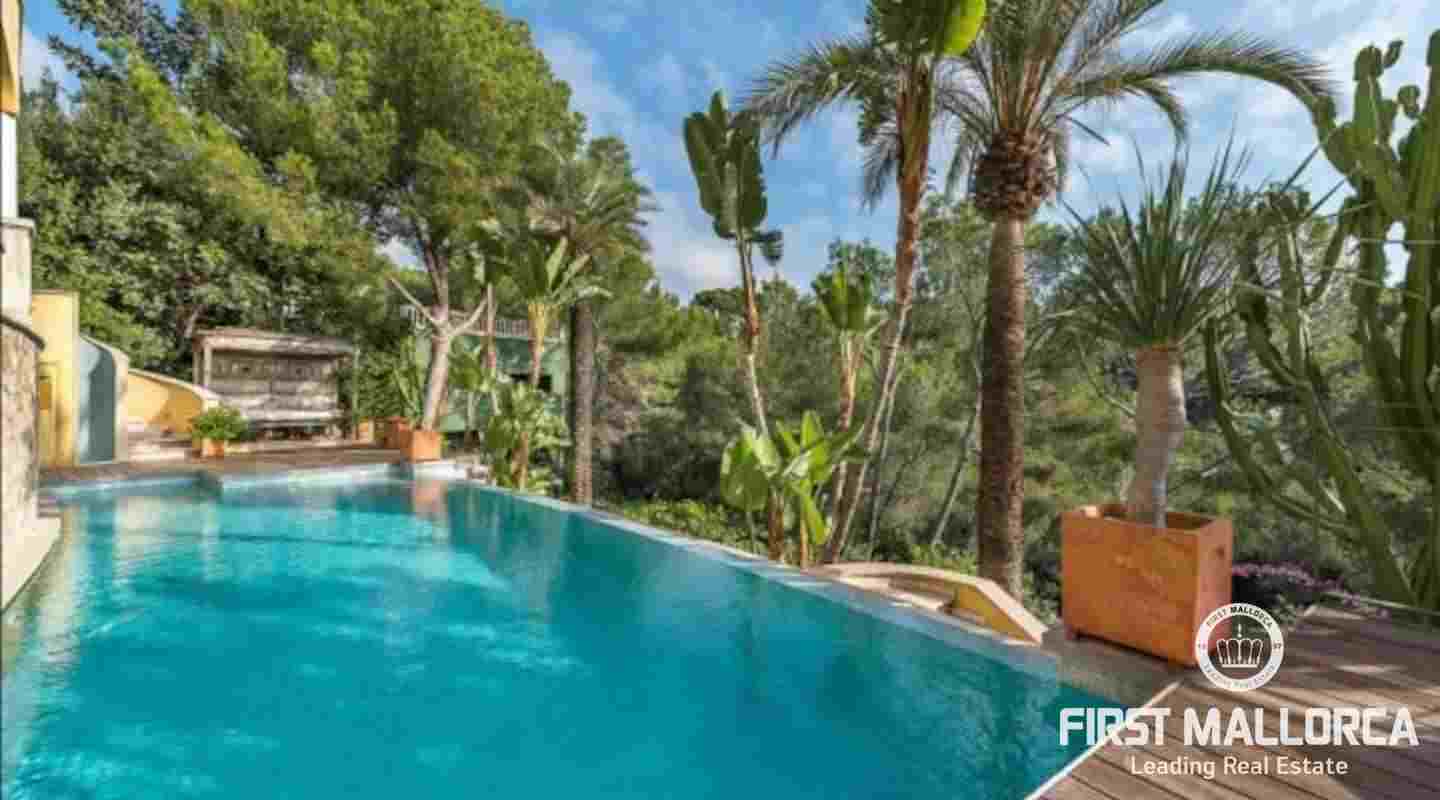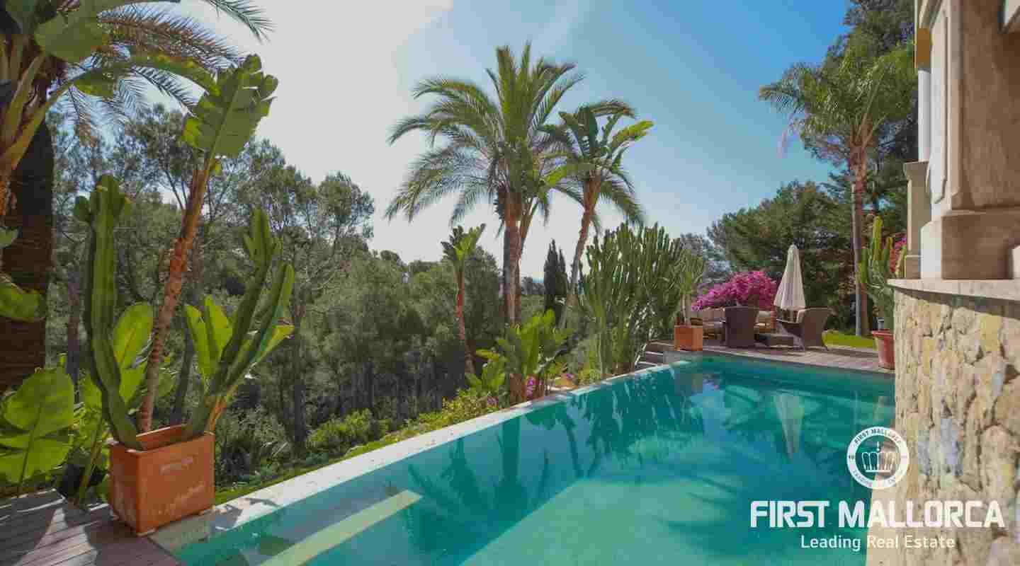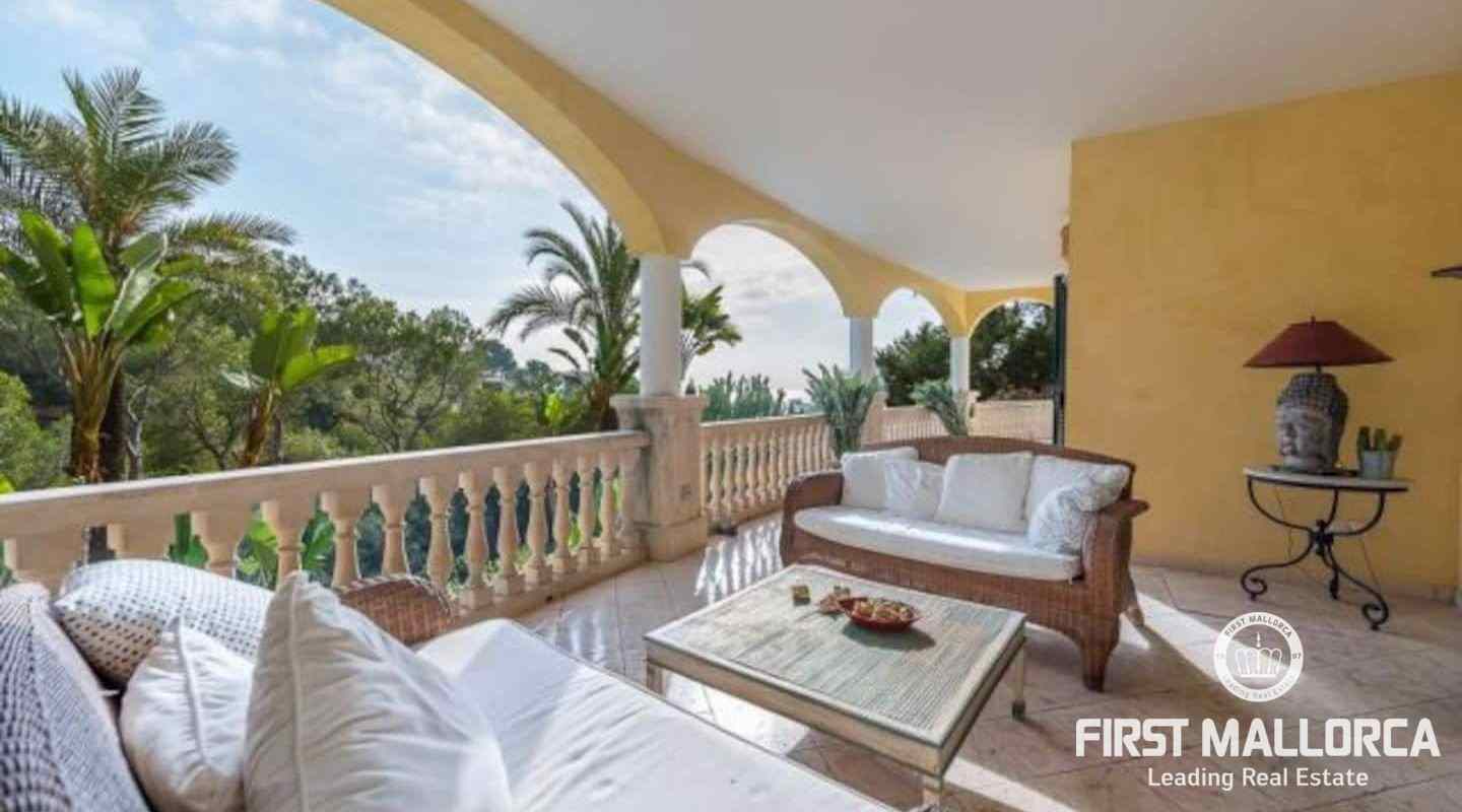 Magnifik villa till salu i Costa D'en Blanes, med panoramautsikt över dalen. Fastigheten är fördelad på två våningar. Ingången på övervåningen leder till ett rymligt vardagsrum med matsal med utsikt, som är anslutet till ett annat vardagsrum med öppen spis, båda anslutna till en terrass med utsikt över poolen. Köket med ö är anslutet till vardagsrummet, en gästtoalett och tvättstugan. Fastigheten har ett garageutrymme för två bilar, som för närvarande används som ett spelrum.