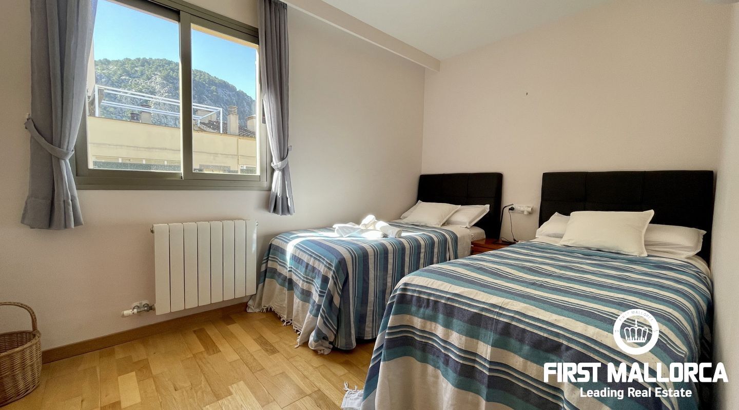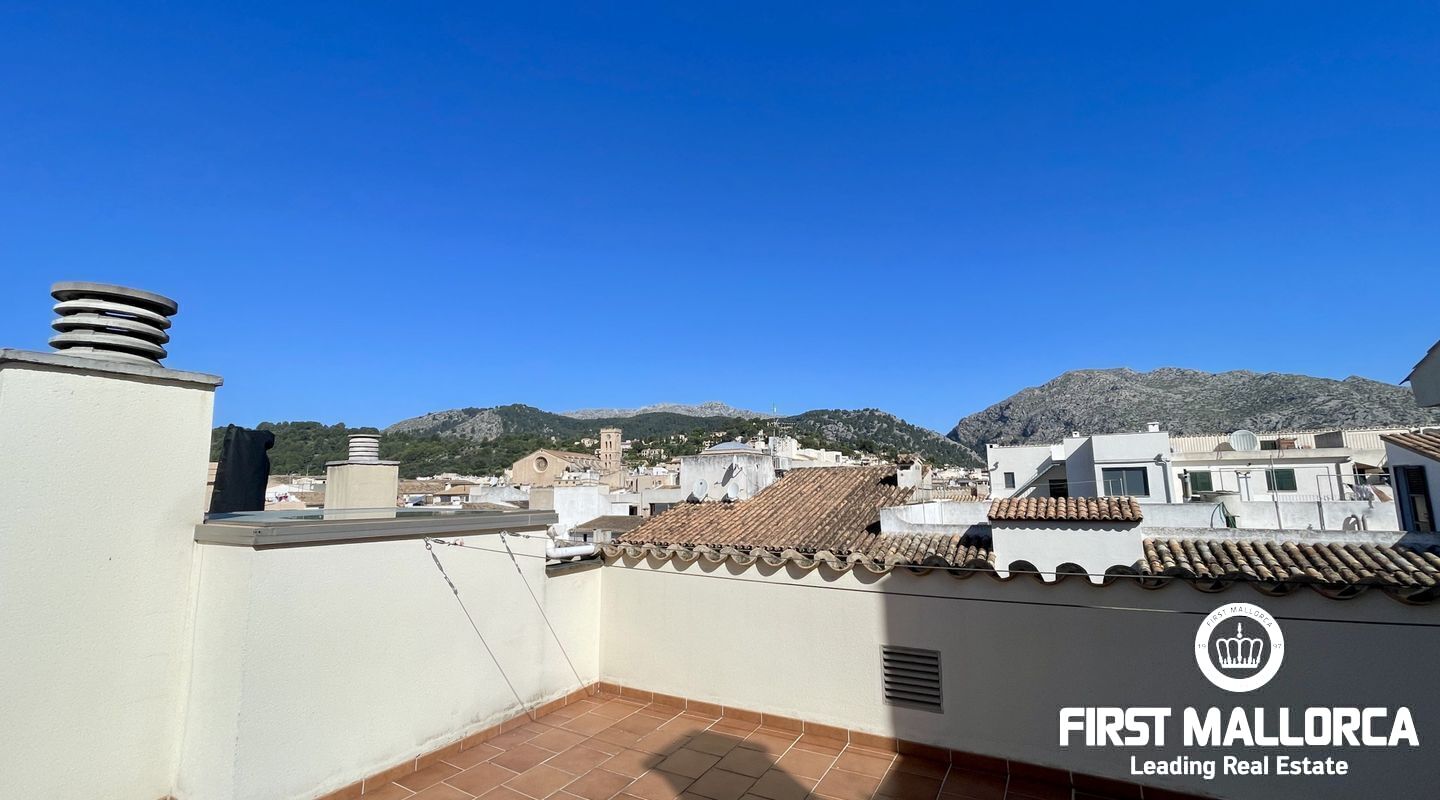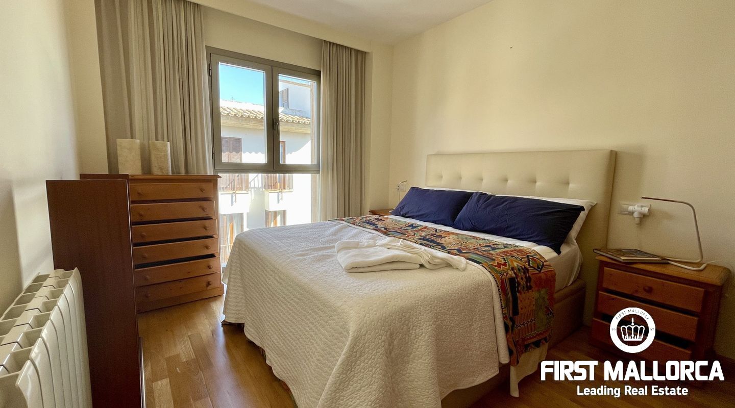 Denna mysiga lägenhet, som ligger inom gångavstånd från den välkända och vackra Plaza Major i Pollensa, har två dubbelrum och ett enkelrum, alla med inbyggda garderober. Perfekt för att ta emot familj och vänner och njuta av en skräddarsydd semester eller arbetssemester. Ett badkar och ett duschrum ger möjlighet att börja och avsluta dagen på ett avslappnat sätt. och avsluta den. Parkettgolvet ger värme och stil, medan luftkonditionering och centralvärme garanterar ett mysigt boende året runt Det fullt utrustade köket och det angränsande tvättstugan med tvättmaskin ger en avkopplande tid på Mallorca. Tysk och engelsk TV och WIFI finns naturligtvis också. Om den lilla balkongen inte räcker till, erbjuder den privata 70m2 spektakulära takterrassen med en otrolig utsikt utrymme för att koppla av eller ta emot gäster. En hiss som också går till den underjordiska parkeringen, där du har en parkeringsplats, tar dig bekvämt till andra våningen i lägenheten För dina dagliga behov finns det restauranger, butiker, livsmedelsbutiker och barer inom en 2-minuters radie från lägenheten.