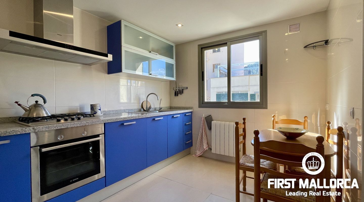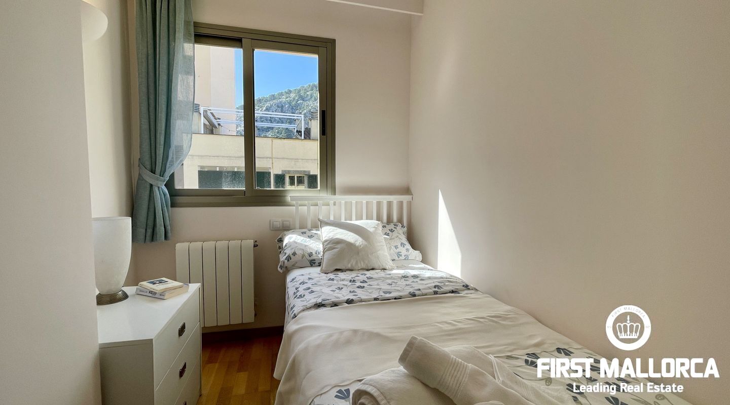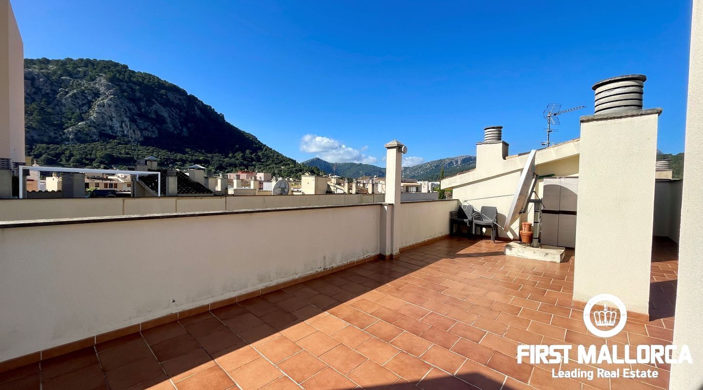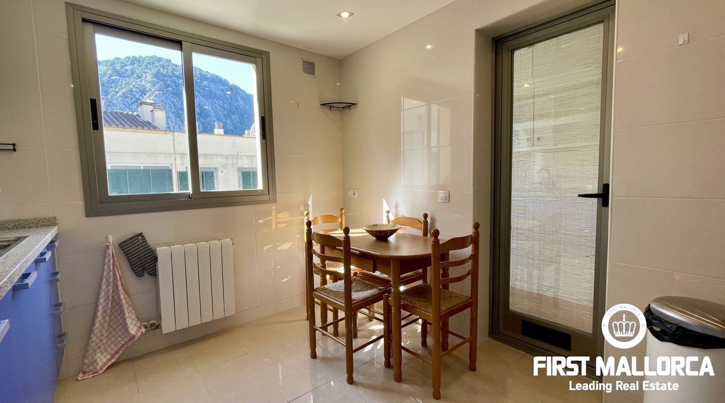 Denna mysiga lägenhet, som ligger inom gångavstånd från den välkända och vackra Plaza Major i Pollensa, har två dubbelrum och ett enkelrum, alla med inbyggda garderober. Perfekt för att ta emot familj och vänner och njuta av en skräddarsydd semester eller arbetssemester. Ett badkar och ett duschrum ger möjlighet att börja och avsluta dagen på ett avslappnat sätt. och avsluta den. Parkettgolvet ger värme och stil, medan luftkonditionering och centralvärme garanterar ett mysigt boende året runt Det fullt utrustade köket och det angränsande tvättstugan med tvättmaskin ger en avkopplande tid på Mallorca. Tysk och engelsk TV och WIFI finns naturligtvis också. Om den lilla balkongen inte räcker till, erbjuder den privata 70m2 spektakulära takterrassen med en otrolig utsikt utrymme för att koppla av eller ta emot gäster. En hiss som också går till den underjordiska parkeringen, där du har en parkeringsplats, tar dig bekvämt till andra våningen i lägenheten För dina dagliga behov finns det restauranger, butiker, livsmedelsbutiker och barer inom en 2-minuters radie från lägenheten.