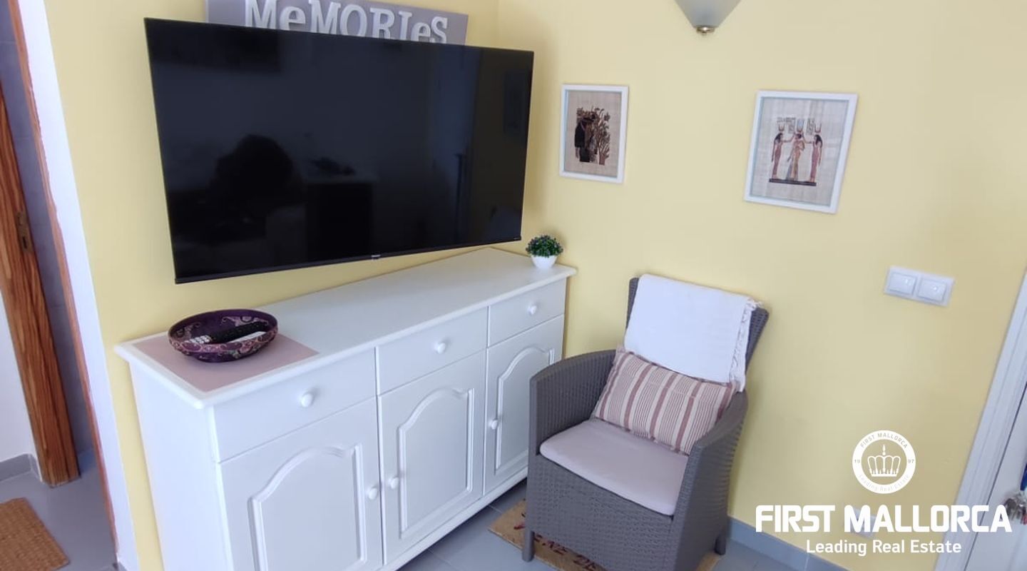 Lägenhet i centrum av Puerto de Pollensa, ett av de mest prestigefyllda områdena på Mallorca. Den består av 1 sovrum, öppen planlösning och utrustat kök, den har luftkonditionering varm och kall och är fullt möblerad. Perfekt för 1 person eller ett par. Beläget i ett bekvämt område inom gångavstånd till alla bekvämligheter som shopping, barer och restauranger eller till stranden. Hyrespriset varierar beroende på hyresperiod. Tveka inte att kontakta FIRST MALLORCA för mer information eller för att ordna en visning. Vårt team står till ditt förfogande när som helst.