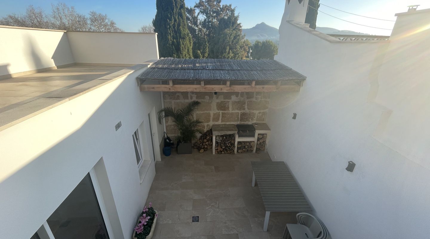 När du kommer in möts du av värmen från de vackert utformade träfunktionerna i interiören, alla med en exceptionell kvalitet och gjorda med uppmärksamhet på detaljer som definierar detta hem. Den rymliga öppna terrassen inbjuder invånarna att sola sig i den milda Medelhavsbrisen medan takterrassen erbjuder panoramautsikt över det omgivande landskapet - en perfekt miljö för uteservering eller bara njuta av solen.