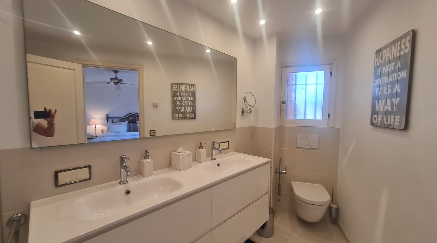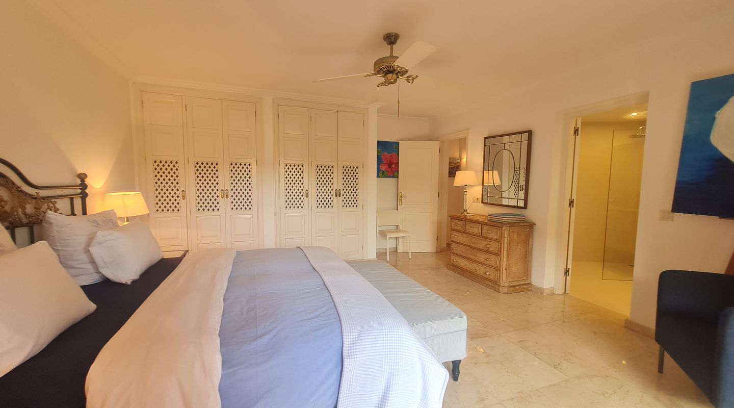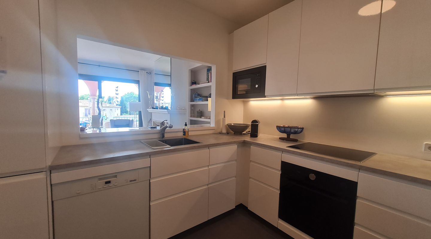 Eine reizvolle Immobilie in der begehrten Gegend von Anchorage, die über die besten Gemeinschaftseinrichtungen auf Mallorca verfügt! Die sonnige Wohnung mit einer Gesamtfläche von 135 m² verfügt über einen bequemen Zugang und eine Südausrichtung, sodass die teilweise überdachte 16,5 m² große Terrasse fast den ganzen Tag über von der Sonne beschienen wird und einen schönen Blick auf die gepflegten Gärten und den beheizten Gemeinschaftspool bietet. Die Immobilie ist auf zwei Ebenen mit einer guten Aufteilung gebaut: Eingang in einen angenehmen Empfangsbereich, eine neu renovierte Küche, ein helles Wohnzimmer mit Kamin, ein Essbereich und Türen, die auf die wunderschöne Terrasse führen, die das ganze Jahr über genutzt werden kann. Darüber hinaus gibt es ein Doppelzimmer, ein Badezimmer und eine Treppe, die nach unten zum großzügigen Hauptschlafzimmer mit eigenem Bad führt. Dieser sehr private Bereich verfügt über Türen, die auf die überdachte Terrasse führen, und einen Weg, der zum beheizten Gemeinschaftspool führt, ideal zum Schwimmen das ganze Jahr über! Weitere Ausstattungsmerkmale sind: Klimaanlage (warm/kalt), Fußbodenheizung in der Küche und im großem Bad, Doppelverglasung, hohe Decken, Marmorböden, Kamin, Einbauschränke und ein dazugehöriger Stellplatz in der Anchorage Tiefgarage. Der Lebensstil im Anchorage ist wirklich unübertroffen mit einem Privatstrand und direktem Zugang zum Meer, 5 Swimmingpools (von denen einer im Winter beheizt ist), einem Tennisplatz, einem sehr gut ausgestatteten Fitnessstudio, einem Restaurant, einem Strandcafé im Sommer, einem Spa, einer Bibliothek, einem Kinderspielzimmer und einem 24-Stunden-Sicherheitsdienst. Das Stadtzentrum von Palma ist nur 15 Autominuten entfernt und in fußläufiger Entfernung befinden sich mehrere Sandstrände, Restaurants und Straßencafés.