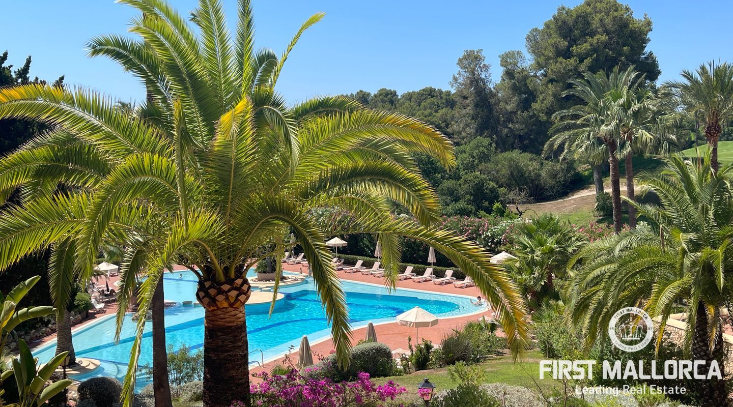 Zwischen Cas Català und dem Golfplatz Bendinat gelegen, in einer der exklusivsten Wohngegenden Mallorcas, befindet sich diese helle und elegante Zweizimmerwohnung mit offenem Blick auf den Golfplatz. Die ruhige Umgebung schafft eine perfekte Atmosphäre zur Entspannung. Die Wohnung bietet eine Wohnfläche von 80 m² sowie eine private Terrasse von 15 m² mit ganztägiger Sonneneinstrahlung. Der Grundriss ist durchdacht und einladend, mit einem großzügigen Wohnzimmer, einer voll ausgestatteten Küche, einem Hauptschlafzimmer, einem weiteren Doppelzimmer und einem kompletten Badezimmer. Die Wohnung wird möbliert verkauft und ist bezugsfertig. Die luxuriöse Wohnanlage bietet hervorragende Gemeinschaftseinrichtungen, darunter ein beheizter Innenpool, ein Außenpool, eine Sauna, gepflegte Gärten und ein Wellnessbereich. Ein Aufzug erleichtert den Zugang im gesamten Gebäude, und ein Tiefgaragenstellplatz ist inklusive. Eine ideale Lage für Familien oder Paare – in der Nähe von Golfplätzen, internationalen Schulen, Stränden und Yachthäfen. Eine perfekte dauerhafte Residenz oder ein Feriendomizil in einer ruhigen und angesehenen Umgebung.