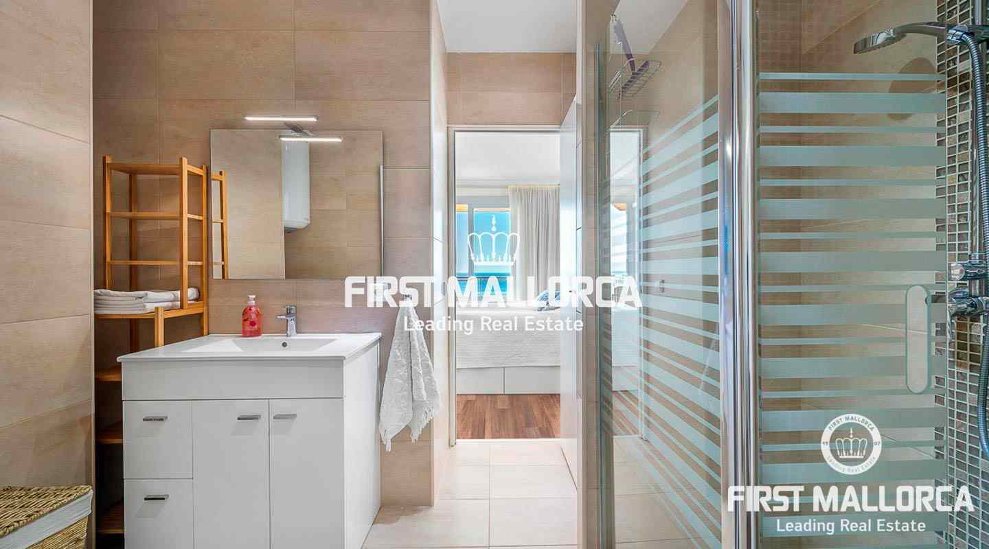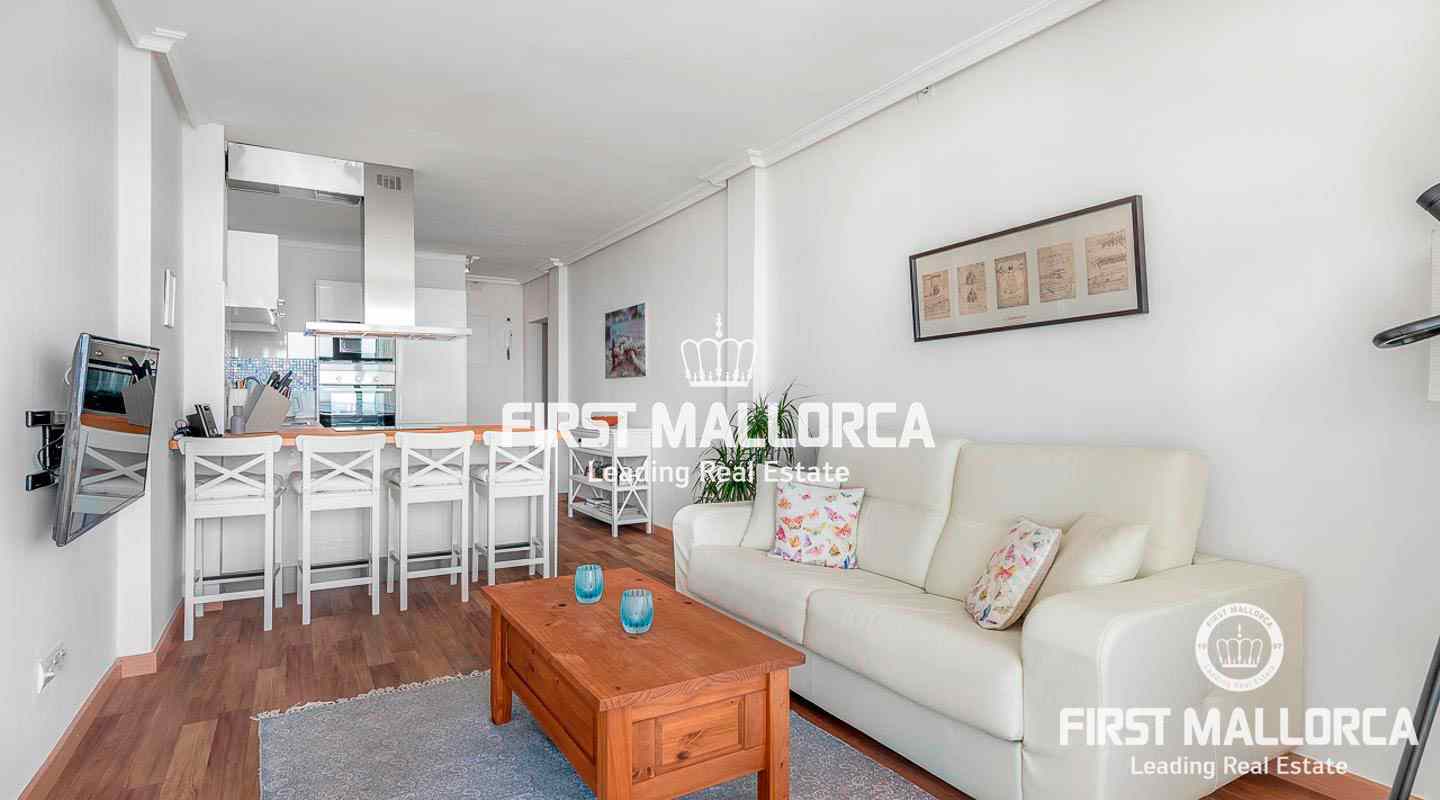 Auf einer bebauten Fläche von 70 m² verfügt die Immobilie über 2 Schlafzimmer, ein Bad sowie ein gemütliches Wohnzimmer mit Essbereich und offener Küche. Zudem gibt es eine 14 m² große überdachte Terrasse. Die Aussicht von diesem Apartment ist unbeschreiblich und reicht über die gesamte Bucht von Palma.