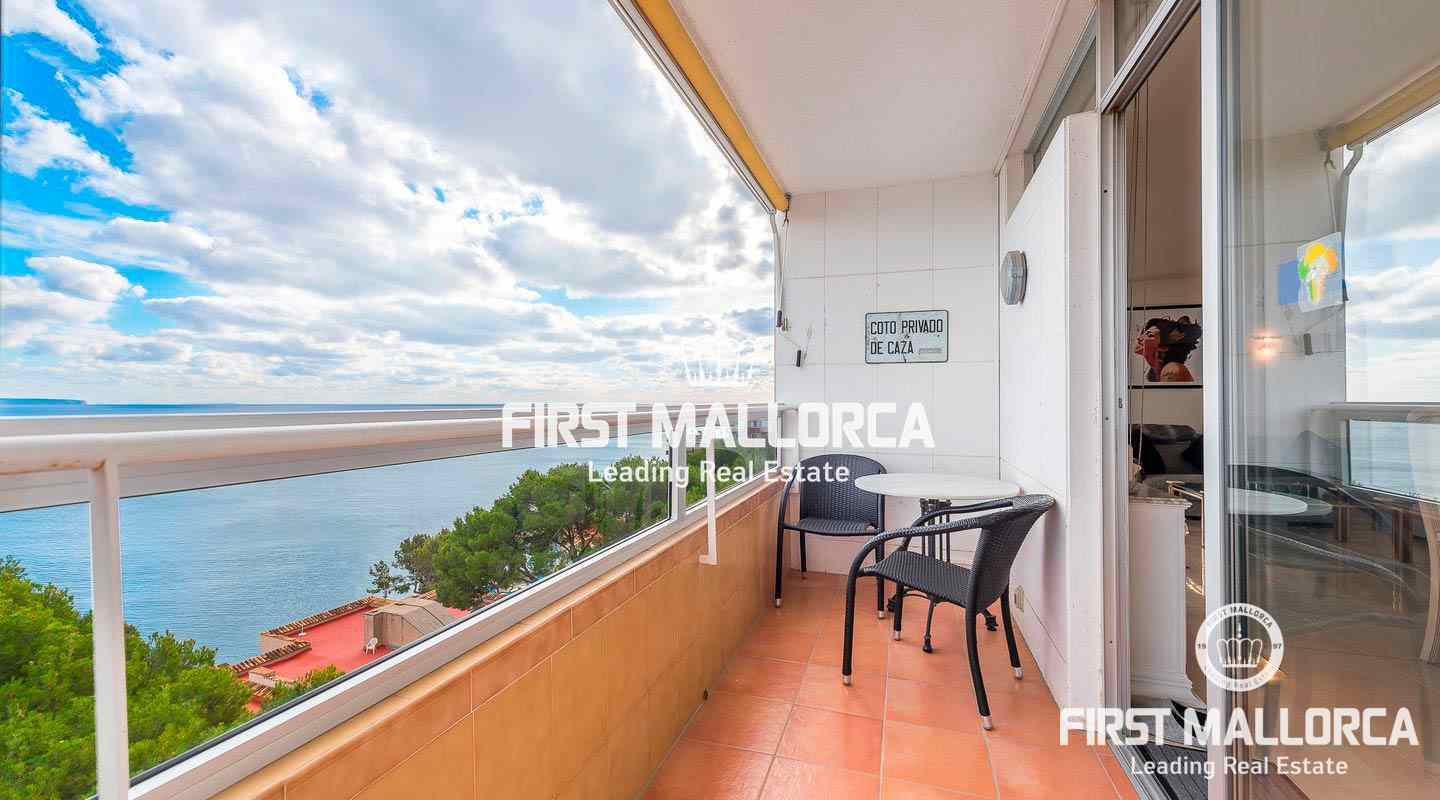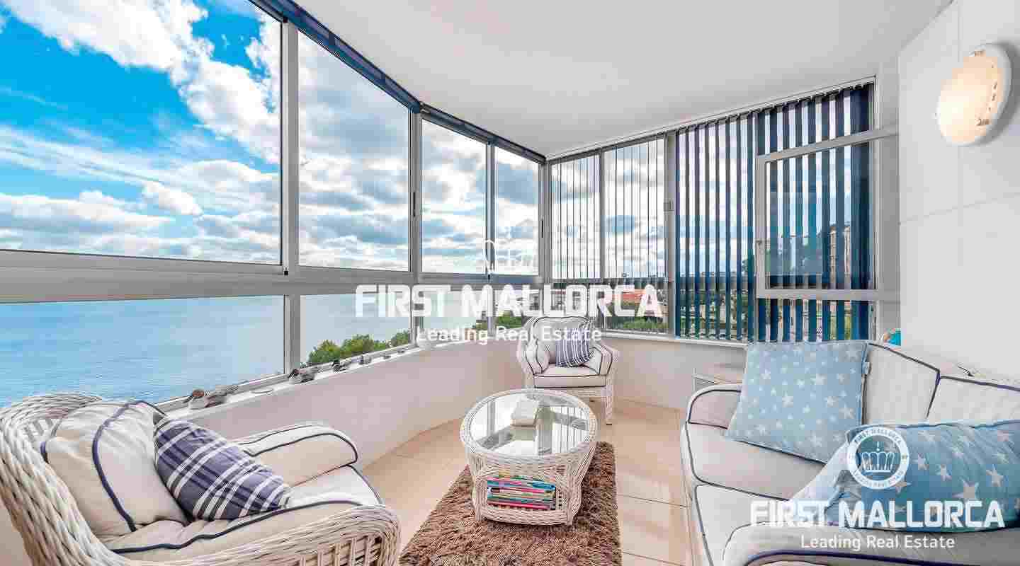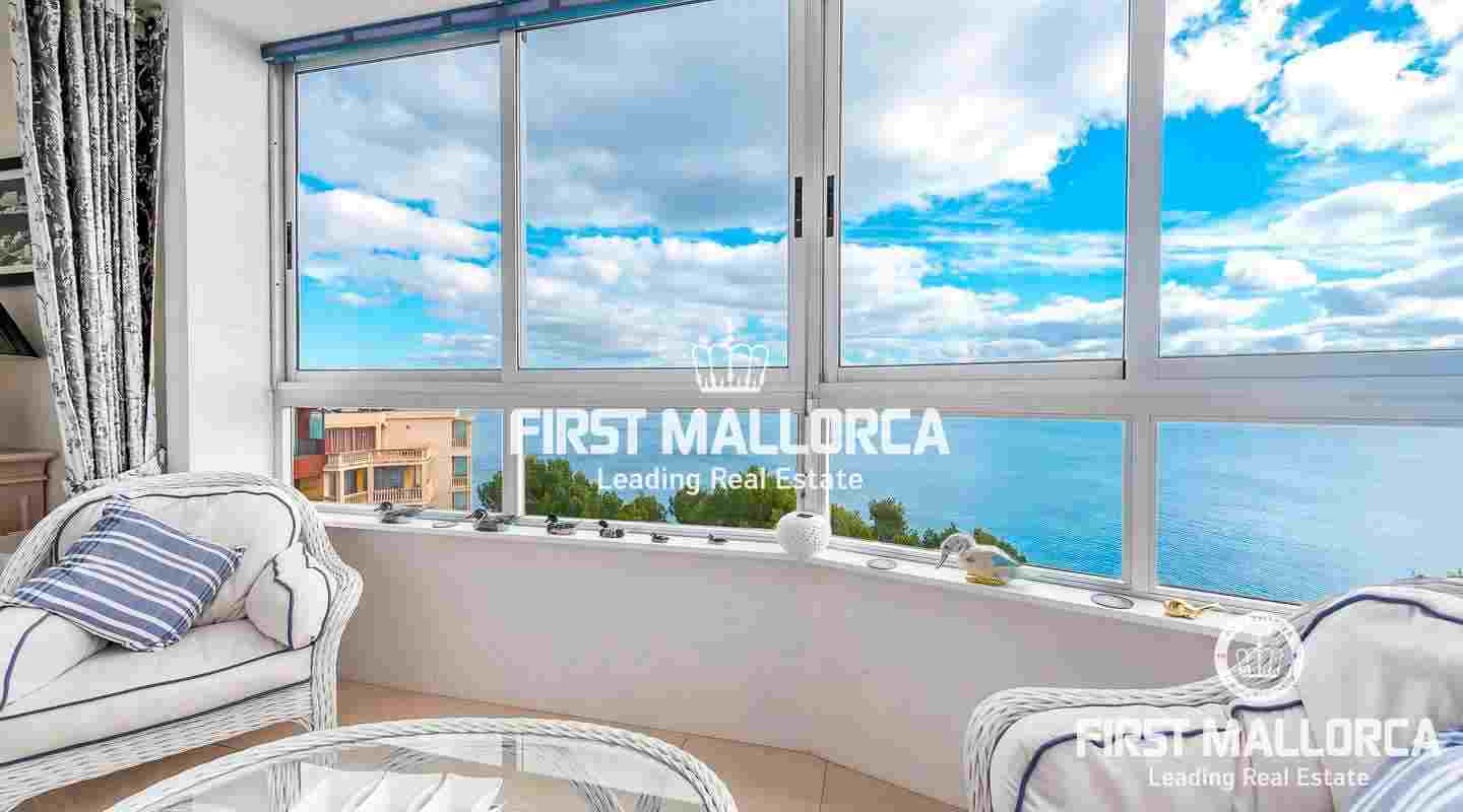 Dieses gepflegte, lichtdurchflutete Apartment befindet sich in erhöhter Lage in einem exklusiven Wohnkomplex in erster Meereslinie in Illetes und besticht durch einen herrlichen Meer- und Panoramablick.