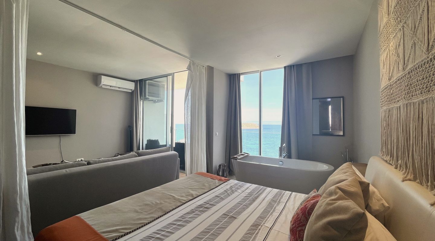 Am herrlichen Melia South Beach von Magaluf bieten wir ein komplett renoviertes, 50 m² großes Apartment in einer der obersten Etagen an und genießen einen atemberaubenden Blick auf das Mittelmeer. Dieses schöne, lichtdurchflutete Wohnung wurde 2022 mit hochwertigen Materialien renoviert und verfügt außerdem über eine voll ausgestattete, moderne offene Küche mit Blick auf das Meer. Wenn Sie diese Immobilie besitzen, können Sie außerdem die Einrichtungen des Hotels mit einem großen Rabatt genießen und erhalten außerdem Sondertarife am berühmten Nikki Beach. Obwohl das Hotel im Winter geschlossen ist, , haben Sie dennoch Zugang zu Ihrem Grundstück. Der Parkplatz kann bei Verfügbarkeit ebenfalls genutzt werden. Abschließend freuen wir uns, Ihnen mitteilen zu können, dass Sie direkten Zugang zu einem der atemberaubenden Strände von Magaluf haben.