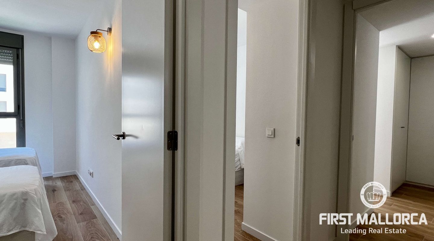 Diese Wohnung wurde im Jahr 2021 gebaut und ist wie neu. aufgeteilt in 3 Schlafzimmer mit 2 Bädern, Hauptschlafzimmer mit Bad enSuite, ein großes Wohnzimmer mit integrierter offener Küche. Eine schöne lange Terrasse mit direktem Zugang vom Wohnzimmer und der Küche ermöglicht Platz im Freien. Das Gebäude verfügt über einen großen Gemeinschaftspool auf der Terrasse, Fitnessraum und einen kleinen Garten. Zu dieser Immobilie gehören 2 Parkplätze (einer davon für Elektroautos) und ein Abstellraum, der im Preis inbegriffen ist.
