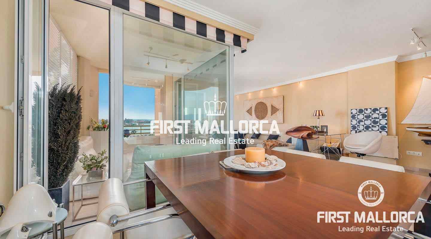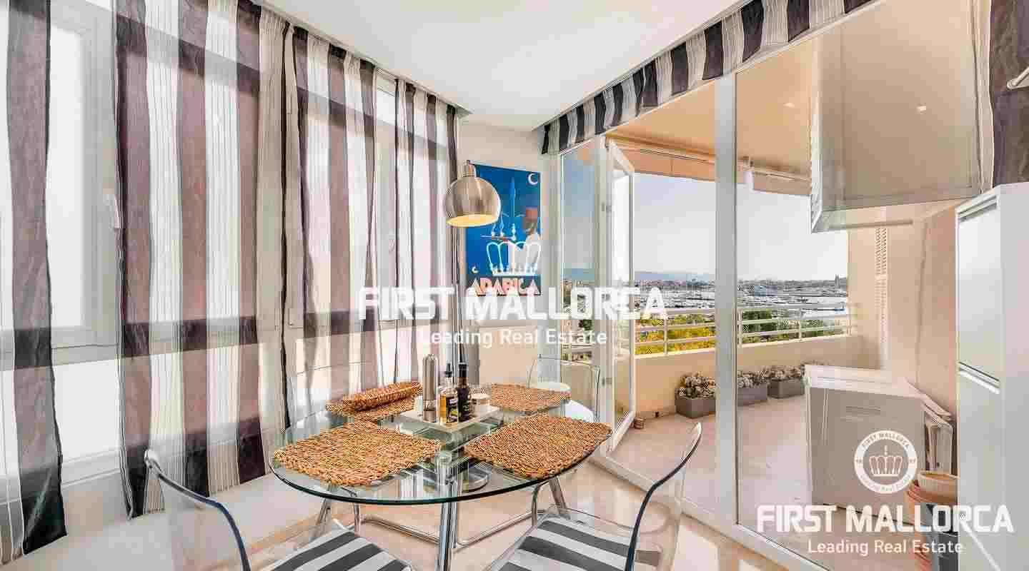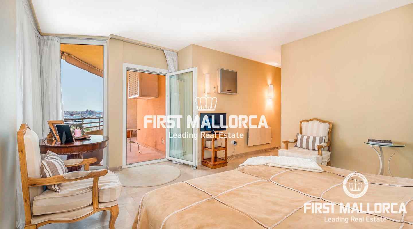 Eine elegante, luxuriöse und zugleich gemütlich-komfortable Wohnung, großzügig in der Raumaufteilung, mit zwei Terrassen, viel Privatsphäre und einem beeindruckenden Blick auf das Meer, den Hafen und die Kathedrale von Palma. Genießen Sie diesen Blick und die Ruhe direkt vom eigenen Zuhause aus oder während Sie sich am großen Gemeinschaftspool entspannen.
