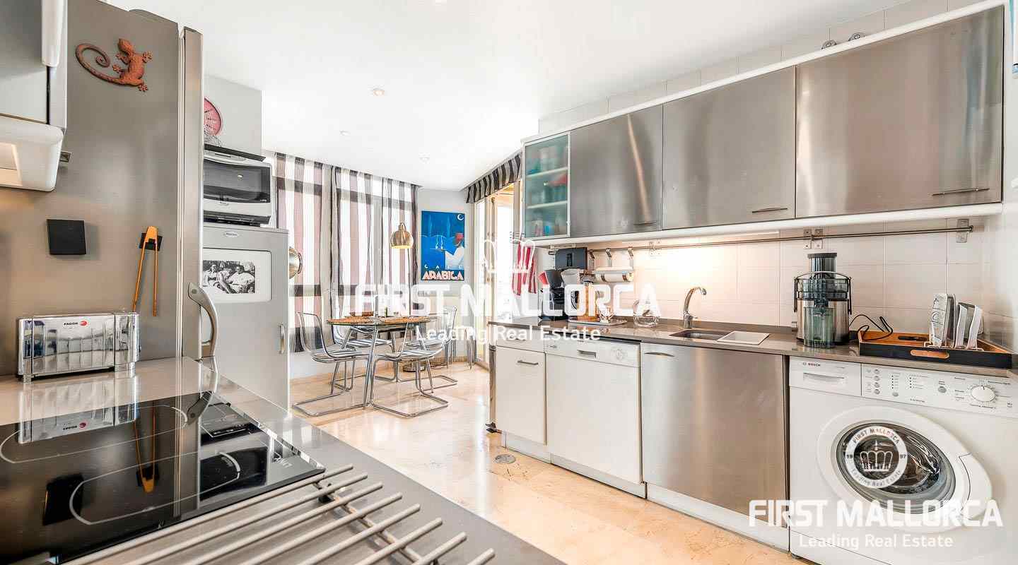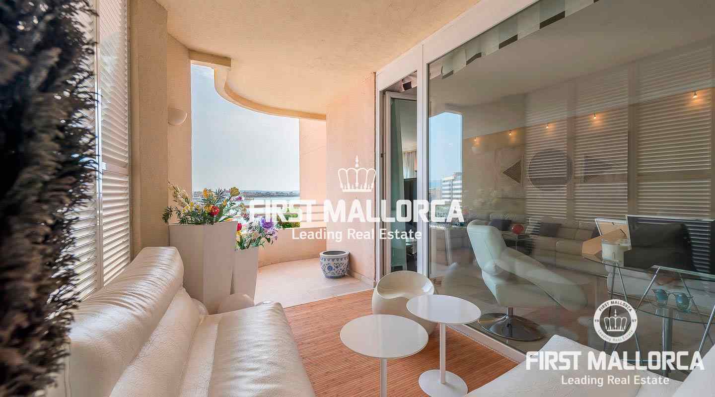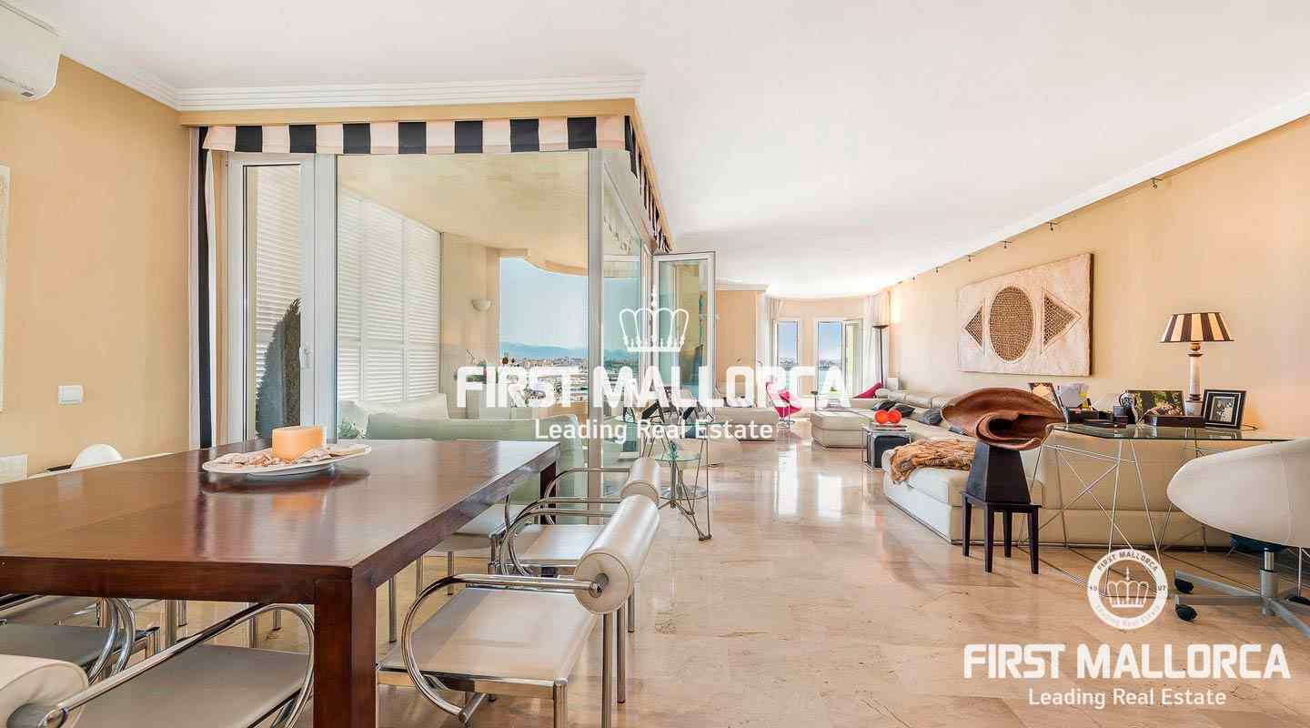 Eine elegante, luxuriöse und zugleich gemütlich-komfortable Wohnung, großzügig in der Raumaufteilung, mit zwei Terrassen, viel Privatsphäre und einem beeindruckenden Blick auf das Meer, den Hafen und die Kathedrale von Palma. Genießen Sie diesen Blick und die Ruhe direkt vom eigenen Zuhause aus oder während Sie sich am großen Gemeinschaftspool entspannen.