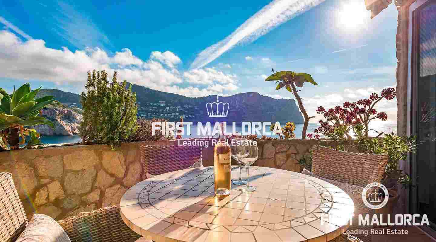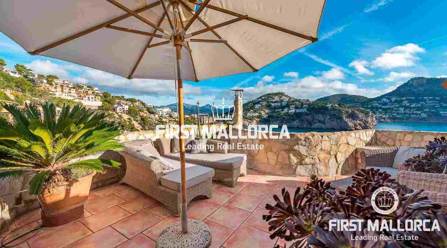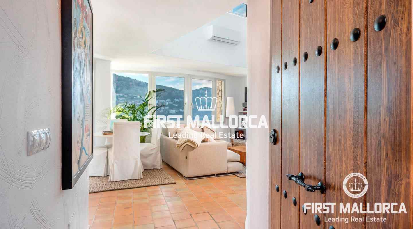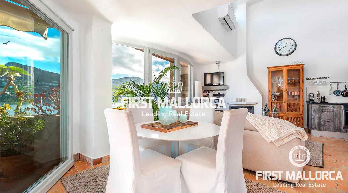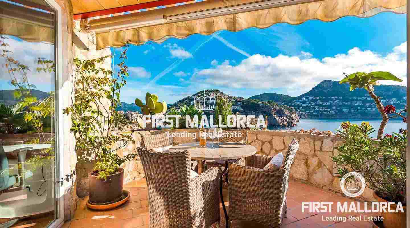 Diese schöne 2-stöckige Wohnung im mediterranen Stil gehalten, genießt eine Bestlage in erster Meereslinie und einen atemberaubenden Blick über die Bucht Cala Marmacen in Puerto Andratx. Sie verfügt über 2 Schlafzimmer, 2 Badezimmer, eins davon en Suite, eine moderne, offene Küche und ein Wohnzimmer mit Zugang zu einer teilüberdachten Terrasse. Zudem gibt es eine große Dachterrasse mit Platz für eine Grillecke, einen Gemeinschaftspool, doppelt verglaste Fenster und eine Klimaanlage.Vereinbaren Sie einen persönlichen Besichtigungstermin mit uns.