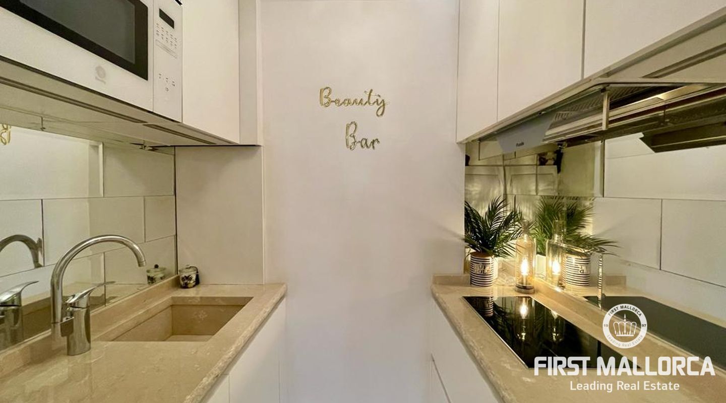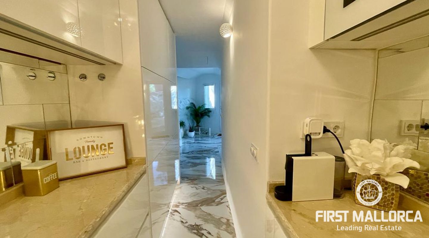 Dieses Apartment ist kürzlich aufwendig und hochwertig renoviert worden. Es hat eine Größe von ca. 50 m² und verfügt über einen schönen, offenen Meerblick. Der Platz ist optimal genutzt. Es gibt eine kleine, voll ausgestattete NOLTE-Küche mit LED-Leisten, die dank verstellbarer Farbe für eine schöne Atmosphäre sorgen.