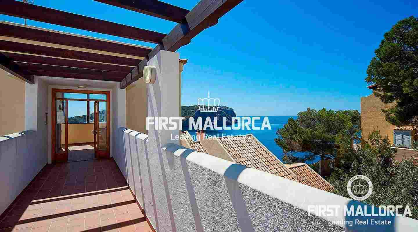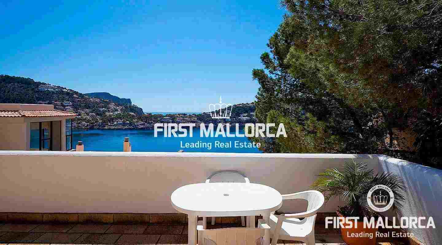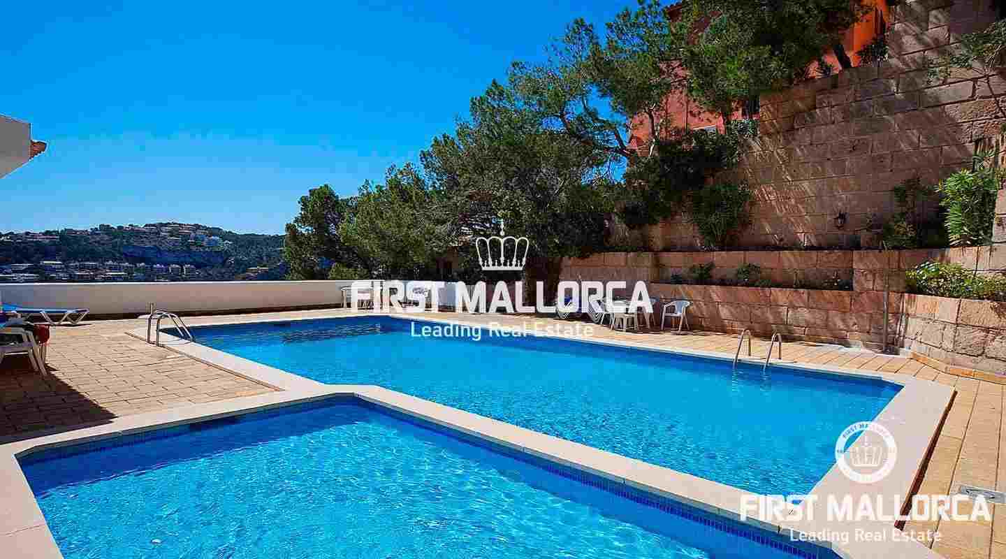 Dieses 2 Zimmer Meerblick-Apartment befindet sich in einer Anlage direkt am Meer gelegen in Puerto Andratx. Die Wohnung genießt eine sensationelle Aussicht auf das Meer und den Naturhafen. Die bebaute Fläche von 91 m2 beinhaltet eine überdachte 12 m2 Terrasse mit Meerblick. Die Aufteilung ist wie folgt: Eingangsbereich, Wohnzimmer, Essbereich und eine offene, komplett ausgestattete Küche, ein Hauptschlafzimmer mit Bad-suite, ein Schlafzimmer und ein separates Bad. Zu den weiteren Ausstattungsmerkmalen gehören: Klimaanlage kalt, Einbauschränke und ein Stauraum. Die Anlage verfügt über einen direkten Meerzugang, einen großzügigen Poolbereich mit Sonnenterrassen, ein Kinderbecken, Aufzug und Parkplätze.
