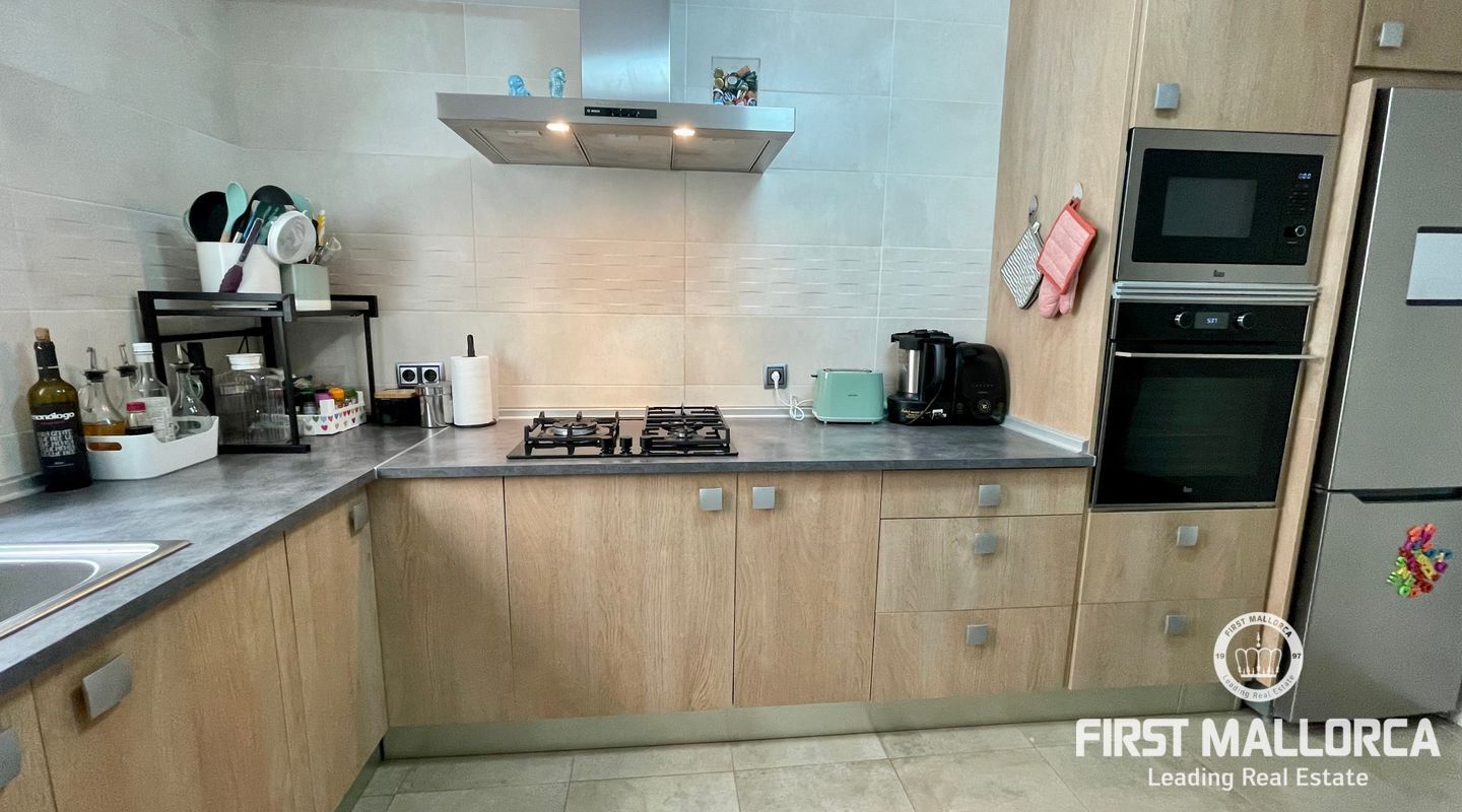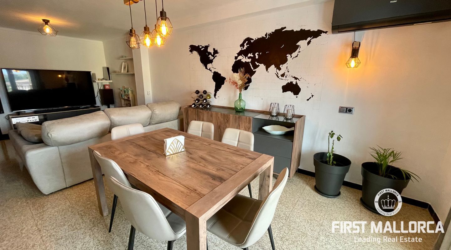 Im dritten Stock gelegen, hat diese Wohnung fast 140 Quadratmeter und ist sofort bezugsfertig. Die Wohnung besteht aus einem geräumigen Wohnzimmer mit Kamin und Zugang zum Balkon mit Blick auf das Tramuntana-Gebirge. Einer voll ausgestatteten Küche, drei Schlafzimmer und zwei Bäder sowie eine große Waschküche runden das Angebot ab. Im Jahr 2019 wurde eine Renovierung durchgeführt, die Klempnerarbeiten, neue Küche, Bäder, Aluminium + doppelt verglaste Fenster, lackierte Innentüren, lackierte und verkleidete Einbauschränke, Wasserenthärter und Klimaanlage warm/kalt umfasst. Das Gebäude verfügt über einen Aufzug, eine gemeinschaftliche Dachterrasse, die kürzlich abgedichtet wurde, eine gestrichene Fassade und neue Frischwassertanks. Zögern Sie nicht und kontaktieren Sie unser FIRST MALLORCA Team für weitere Informationen und einen Besichtigungstermin.