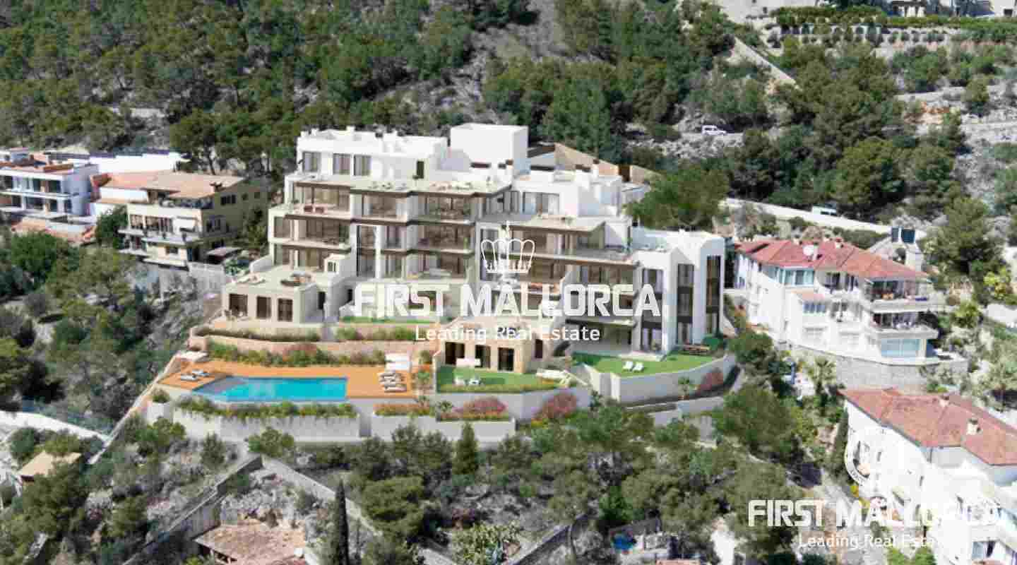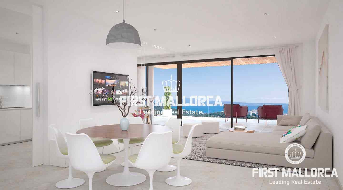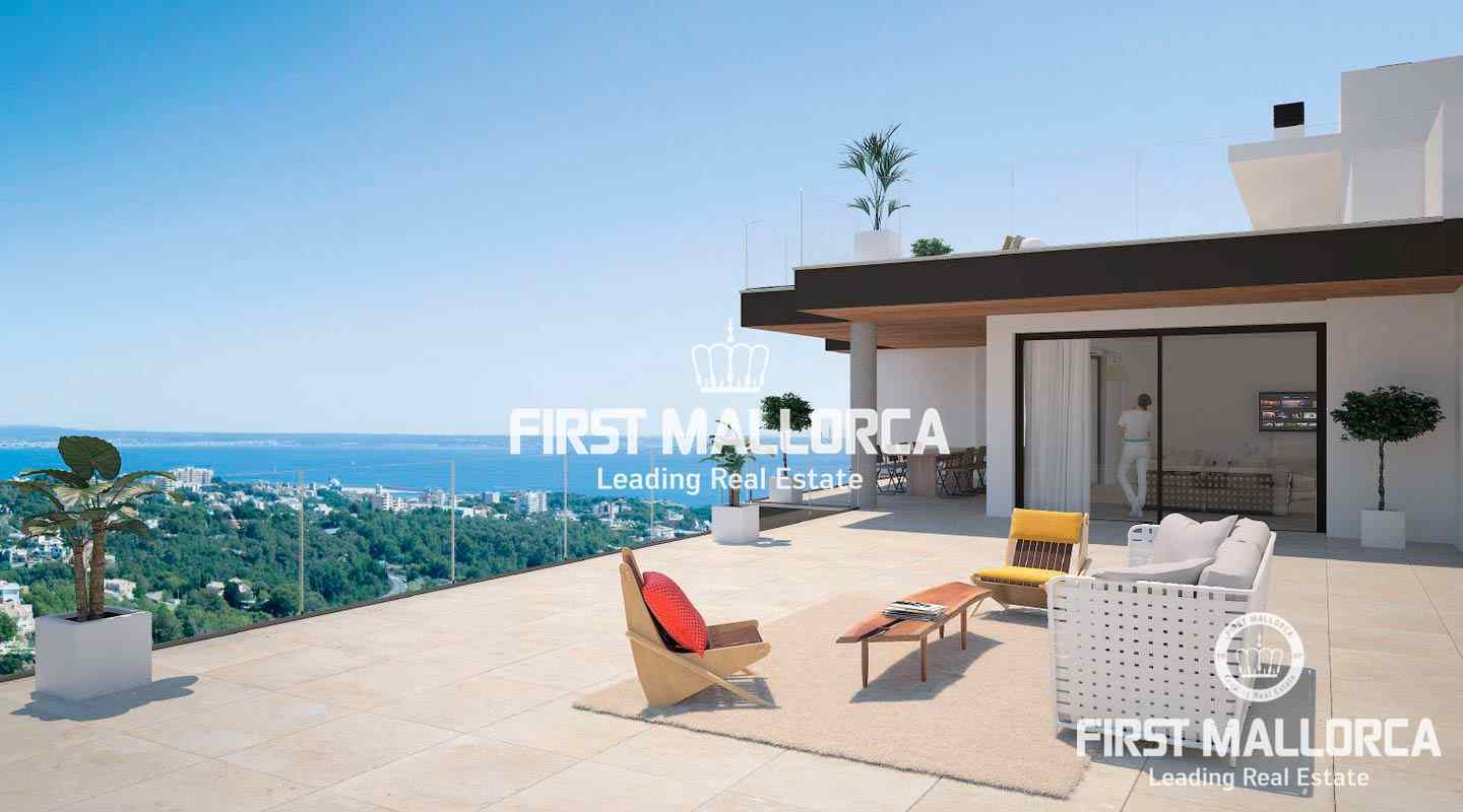 Dieses neue Luxusapartment genießt eine atemberaubende Aussicht auf die Stadt und die Bucht von Palma de Mallorca im Südwesten der Insel.