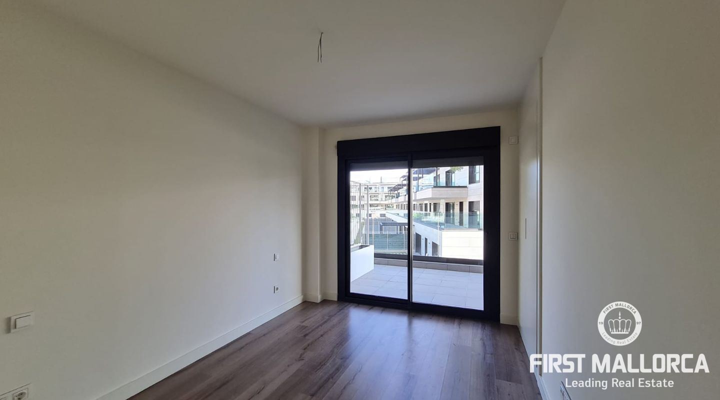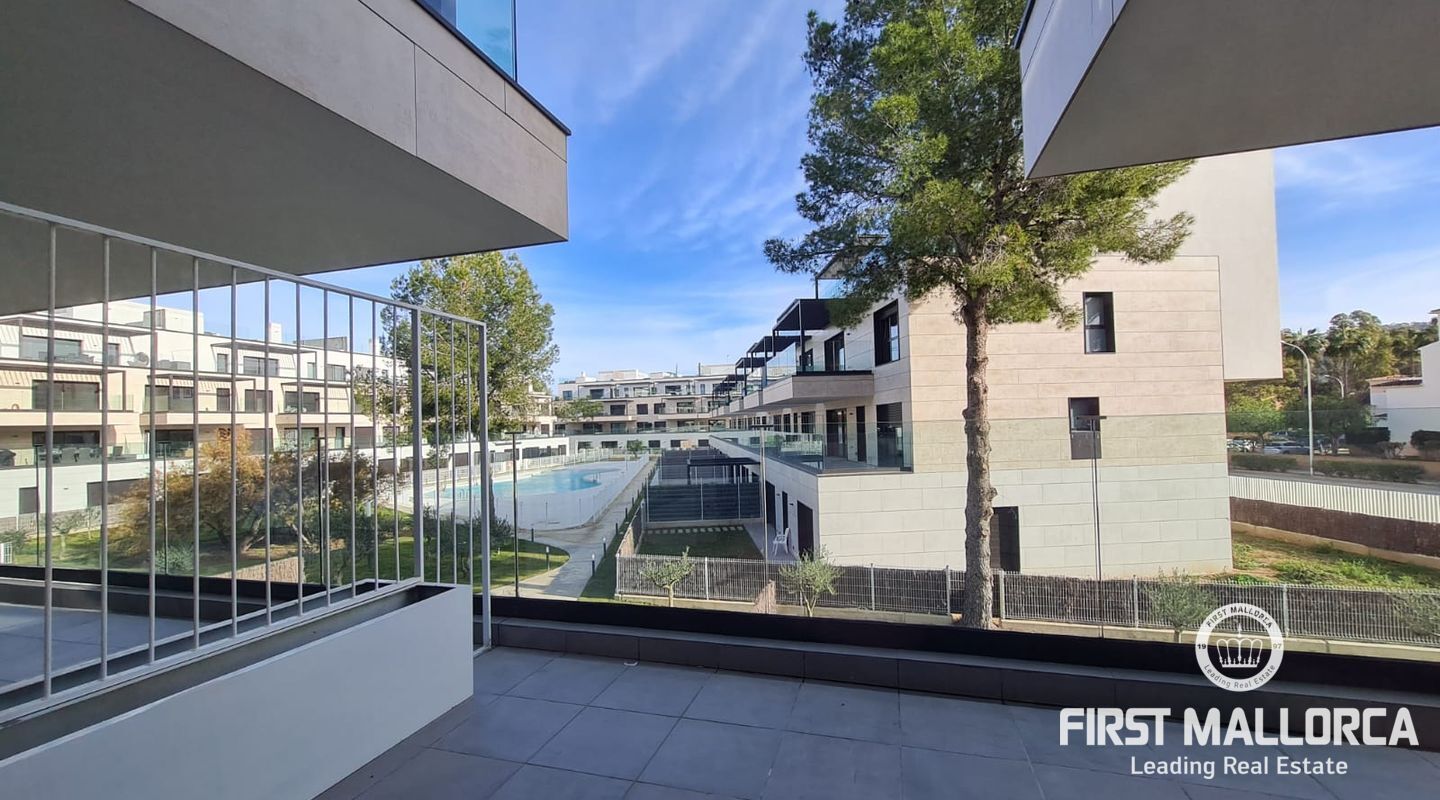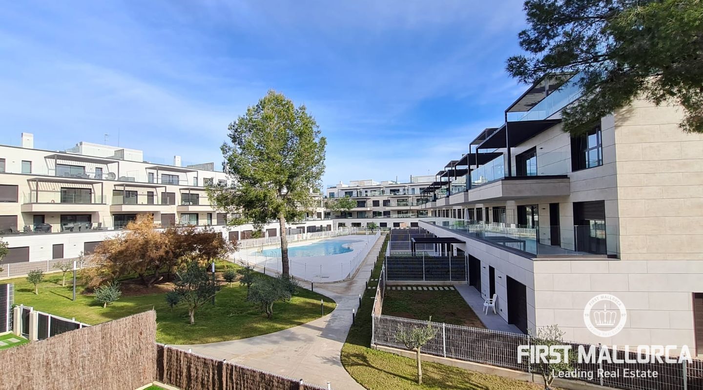 Die Immobilie mit 2 Schlafzimmern verfügt über eine Terrasse, auf der Sie ganz entspannt die Sonne Mallorcas genießen können. Klimaanlage warm/ kalt und Fußbodenheizung sorgen das ganze Jahr über für angenehme Temperaturen. Darüber hinaus gehört ein privater Parkplatz zum Apartment. Genießen Sie Ihre Freizeit im Fitnessstudio oder aber im herrlich grünen Gemeinschaftsgarten mit Pool.