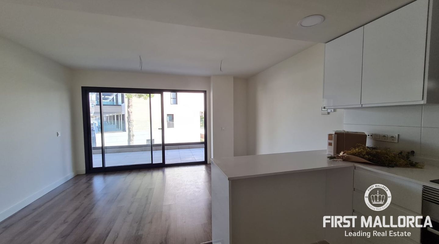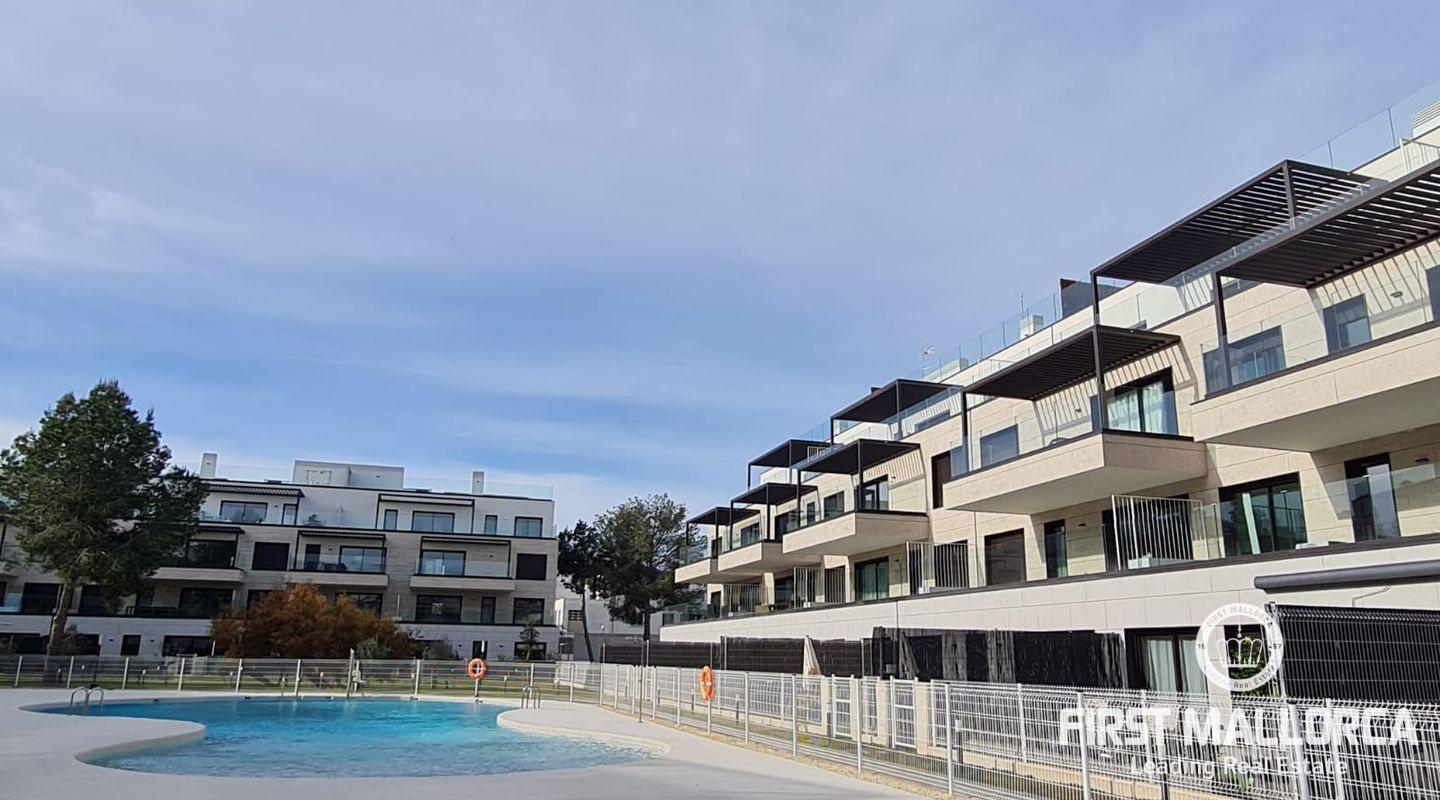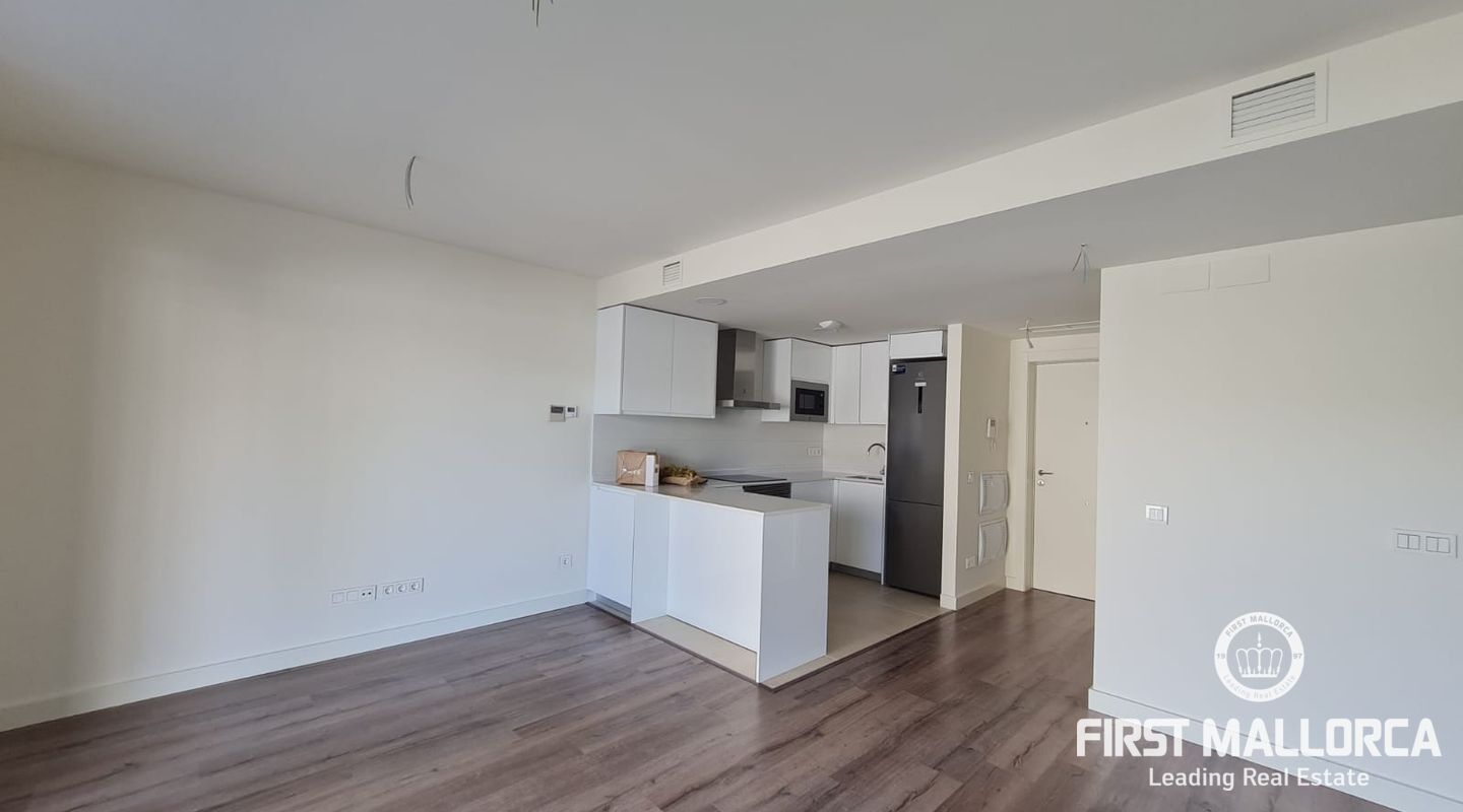 Die Immobilie mit 2 Schlafzimmern verfügt über eine Terrasse, auf der Sie ganz entspannt die Sonne Mallorcas genießen können. Klimaanlage warm/ kalt und Fußbodenheizung sorgen das ganze Jahr über für angenehme Temperaturen. Darüber hinaus gehört ein privater Parkplatz zum Apartment. Genießen Sie Ihre Freizeit im Fitnessstudio oder aber im herrlich grünen Gemeinschaftsgarten mit Pool.