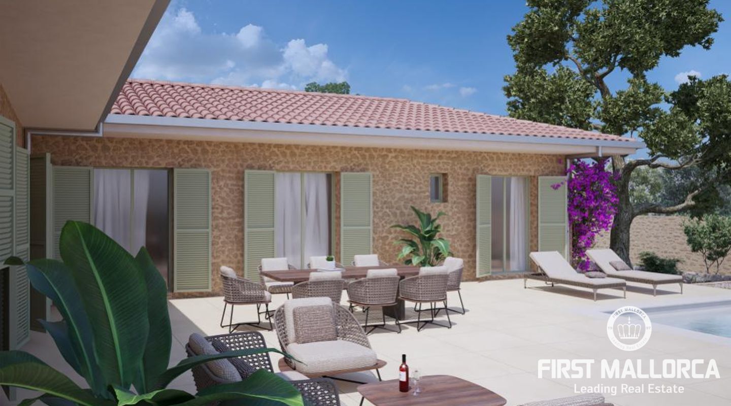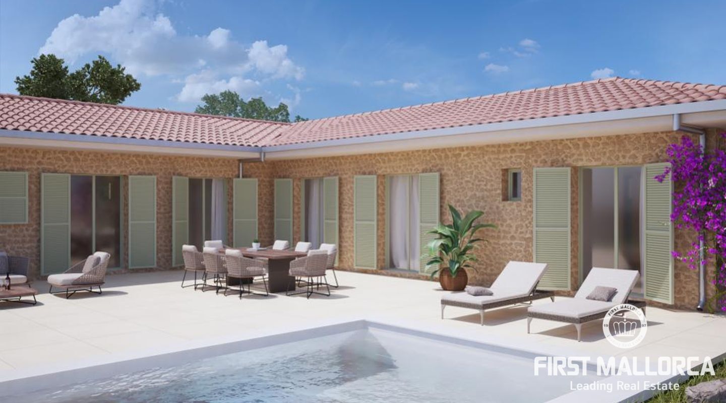 Die fertige Finca wird sich durch komfortable Eingeschossigkeitt und Barrierefreiheit auszeichnen. Vier Schlafzimmer mit Bädern en suite, ein offener Wohn- und Essbereich sowie mehrere große Terrassen rund um den Poolbereich sind im Projekt vorgesehen. Das Grundstück ist angeschlossen an das Stromnetz und für den Wasserbedarf ist eine große Zisterne im Projekt vorgesehen.