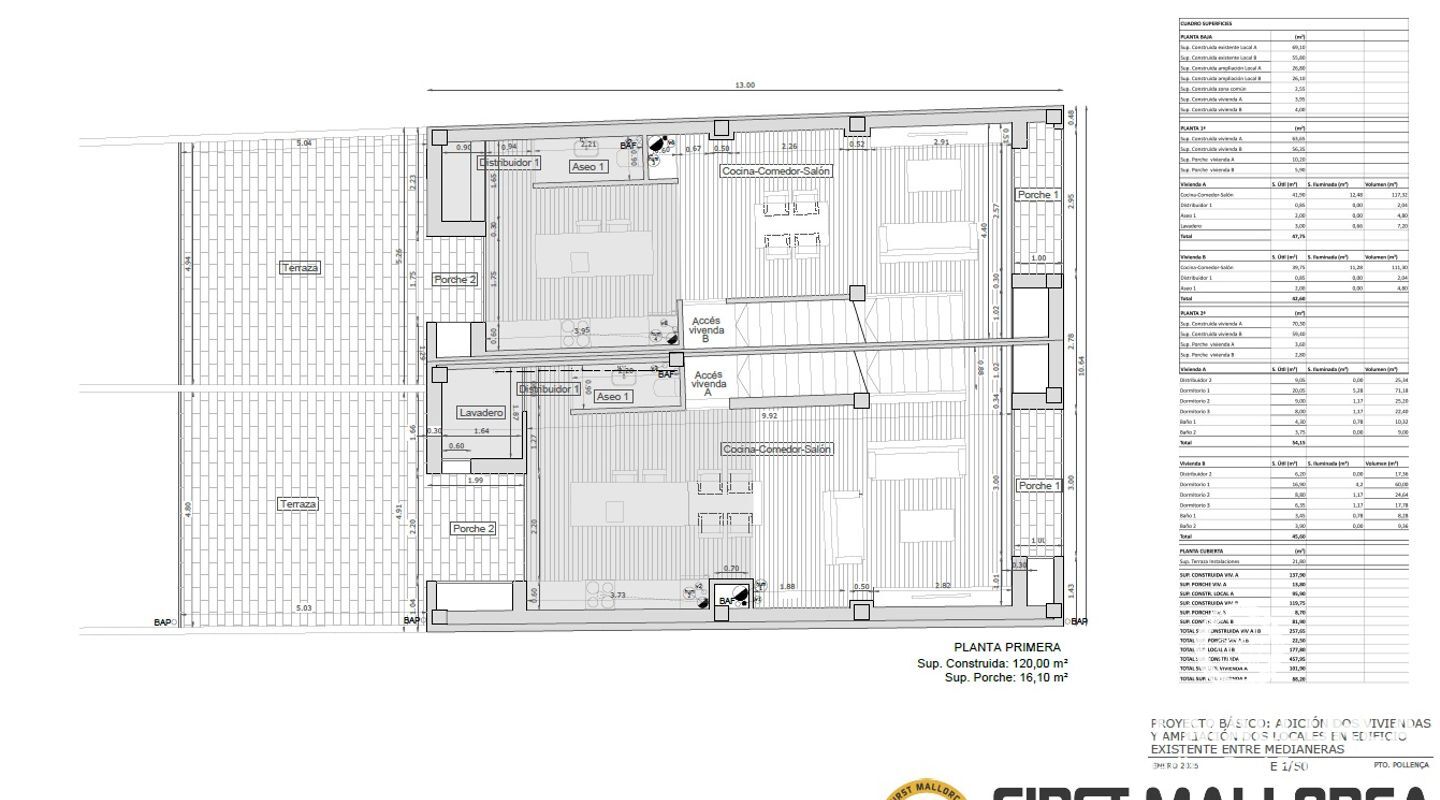 Dieses Projekt wird für eines der Duplex-Apartments mit den entsprechenden Baugenehmigungen angeboten. Es befindet sich über einer Garage im Erdgeschoss und verfügt über einen separaten Zugang über eine Treppe. Die Garaje im Erdgeschoss ist nicht Teil dieses Angebots.