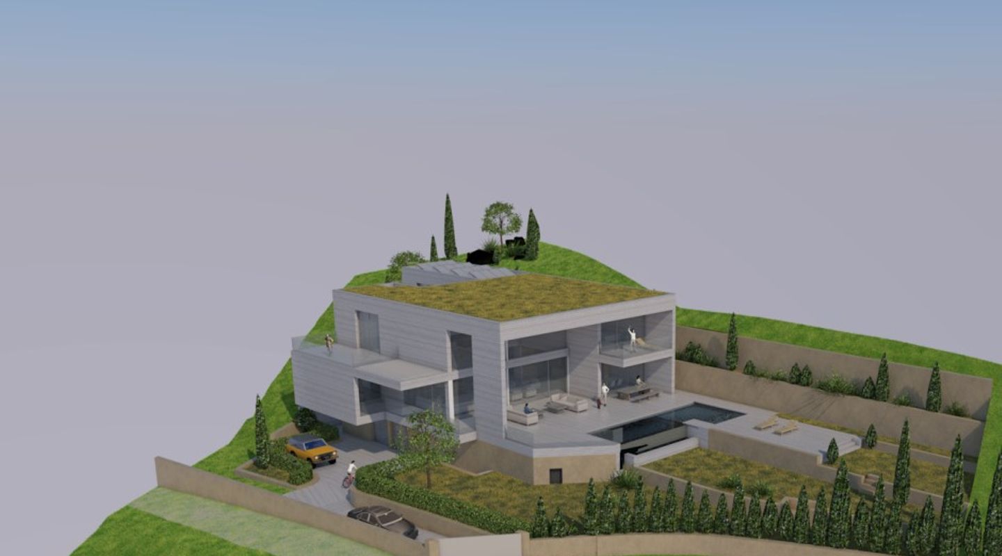 Zum Grundstück gehört ein Projekt für eine moderne, lichtdurchflutete Villa mit einer bebauten Fläche von 877 m², entworfen nach höchsten Standards des zeitgenössischen mediterranen Wohnens. Die geplante Residenz umfasst fünf großzügige Schlafzimmer, fünf elegante Badezimmer, eine Garage, einen Pool sowie weitläufige Terrassen, die Innen- und Außenbereiche harmonisch verbinden.