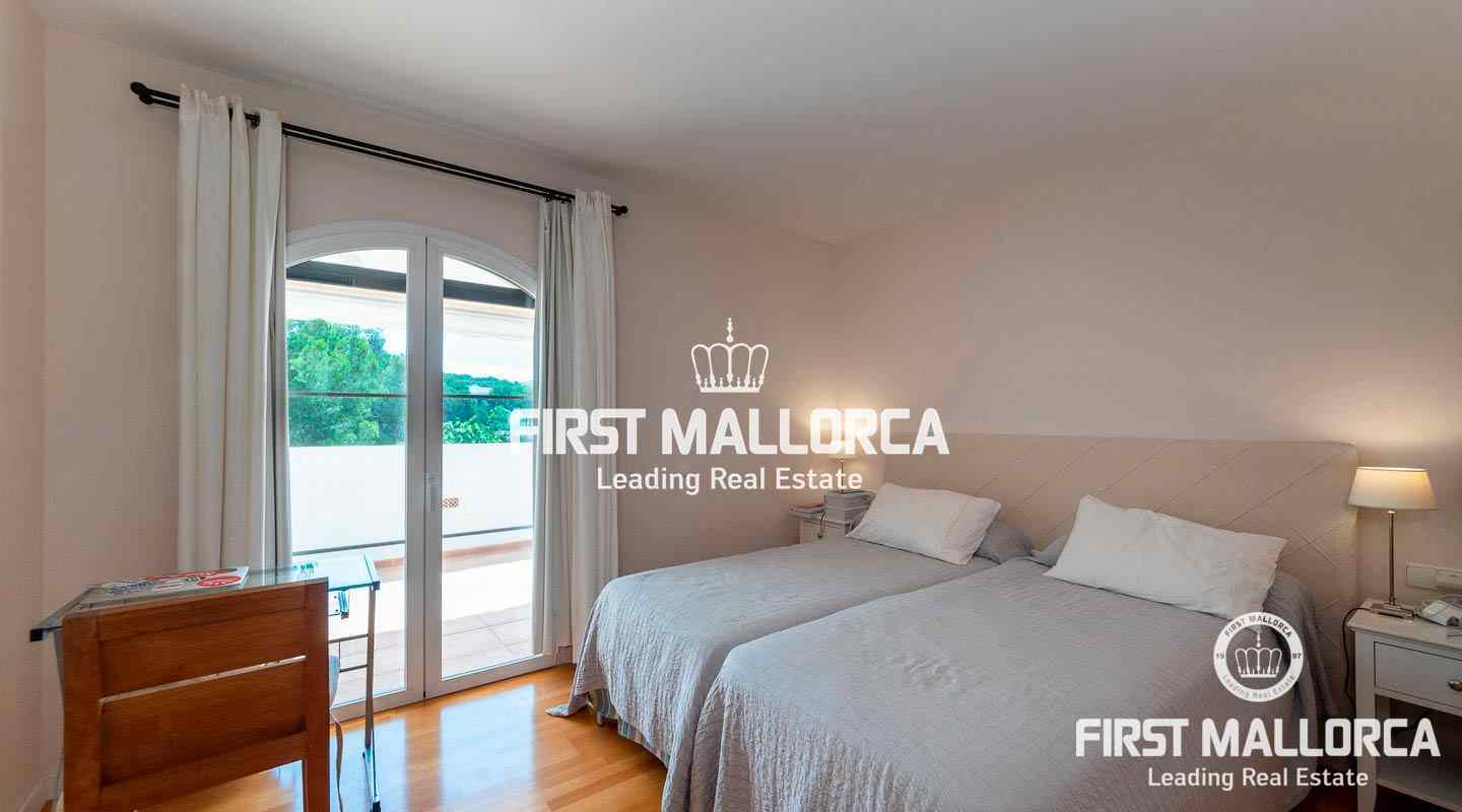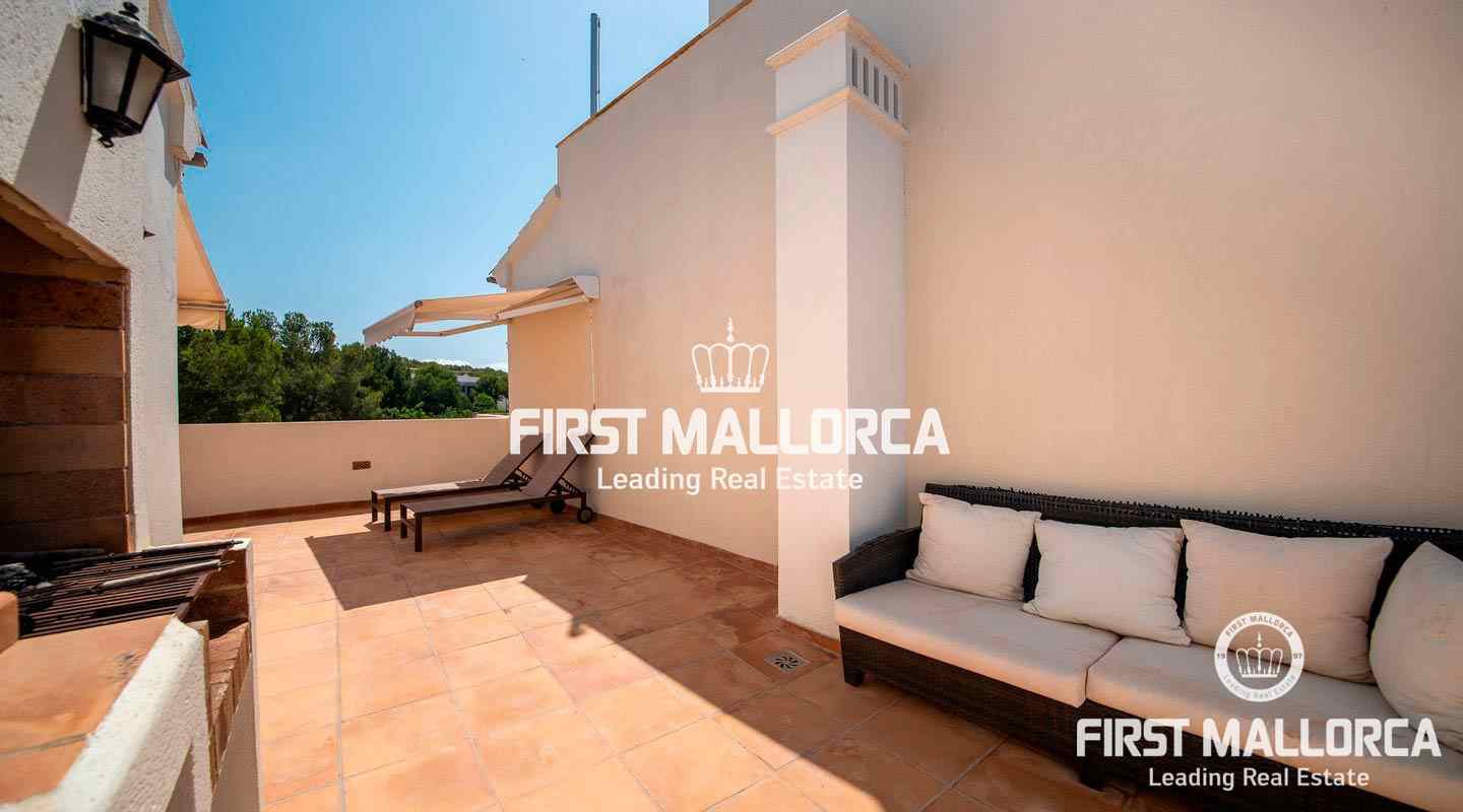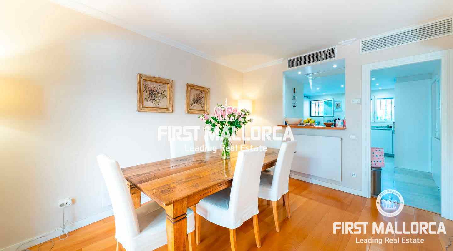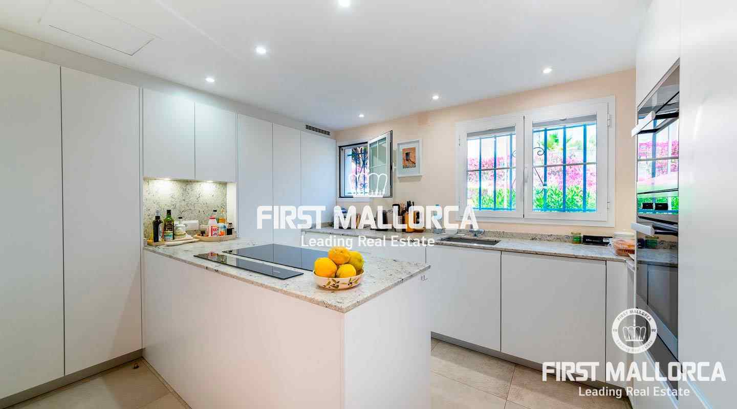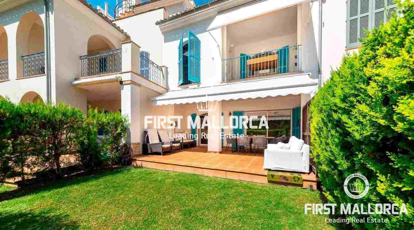 Dieses geräumige Reihenhaus befindet sich in einer schönen, parkähnlichen Anlage im Herzen von Bendinat, direkt vor dem exklusiven Royal Bendinat Golfplatz. Das Anwesen 4 Schlafzimmer, 3 Bäder, ein Gäste-WC, eine offene, moderne Küche, die mit dem Wohn-Esszimmer verbunden ist, das direkten Zugang zur herrlichen privaten Terrasse und Garten hat. Zusätzlich gibt es eine große Dachterrasse mit Blick auf den Golfplatz und die Bucht von Palmanova. Zur Ausstattung dieser eleganten Immobilie gehören Klimaanlage, Zentralheizung, ein Außenstellplatz, ein Tiefgaragenstellplatz und ein Abstellraum. Die Anlage bietet 3 Gemeinschaftspools und schöne subtropische Gärten. In fußläufiger Entfernung findet man einen Supermarkt und einige lokale Restaurants sowie ein Fitnesscenter. Die Stadt Palma ist in nur ca. 10 Autominuten und der internationale Flughafen in weniger als 20 Minuten zu erreichen.