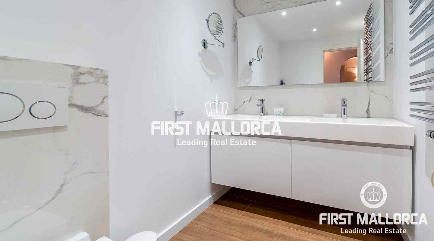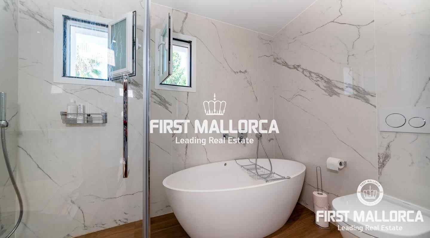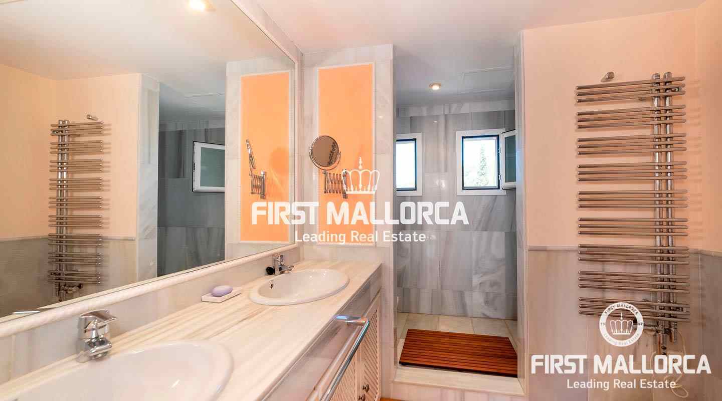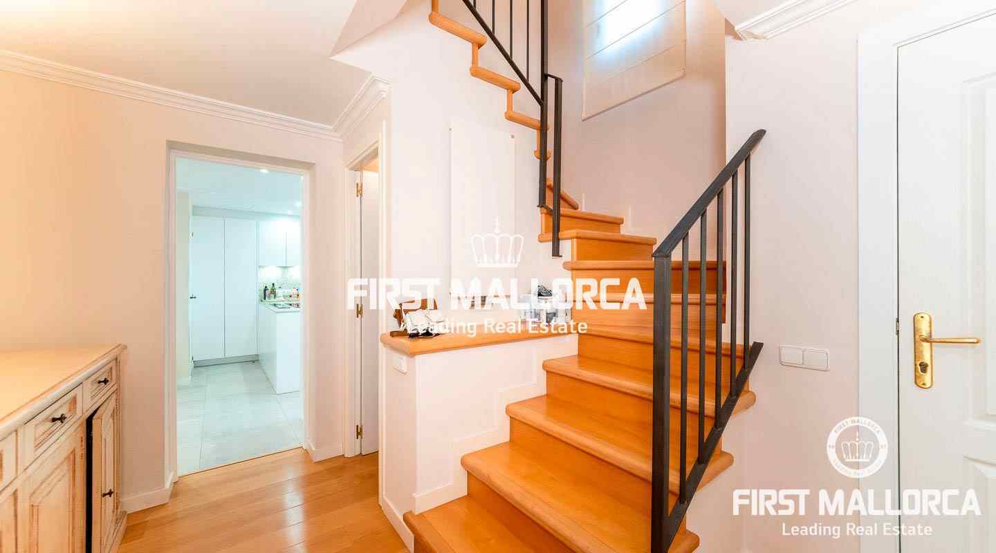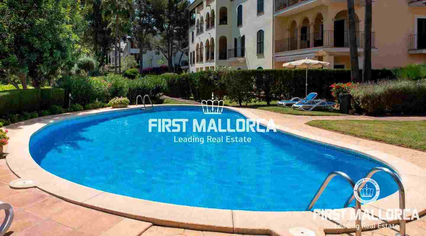 Dieses geräumige Reihenhaus befindet sich in einer schönen, parkähnlichen Anlage im Herzen von Bendinat, direkt vor dem exklusiven Royal Bendinat Golfplatz. Das Anwesen 4 Schlafzimmer, 3 Bäder, ein Gäste-WC, eine offene, moderne Küche, die mit dem Wohn-Esszimmer verbunden ist, das direkten Zugang zur herrlichen privaten Terrasse und Garten hat. Zusätzlich gibt es eine große Dachterrasse mit Blick auf den Golfplatz und die Bucht von Palmanova. Zur Ausstattung dieser eleganten Immobilie gehören Klimaanlage, Zentralheizung, ein Außenstellplatz, ein Tiefgaragenstellplatz und ein Abstellraum. Die Anlage bietet 3 Gemeinschaftspools und schöne subtropische Gärten. In fußläufiger Entfernung findet man einen Supermarkt und einige lokale Restaurants sowie ein Fitnesscenter. Die Stadt Palma ist in nur ca. 10 Autominuten und der internationale Flughafen in weniger als 20 Minuten zu erreichen.