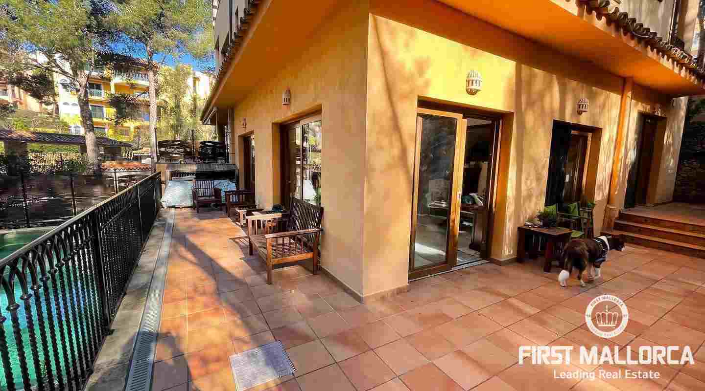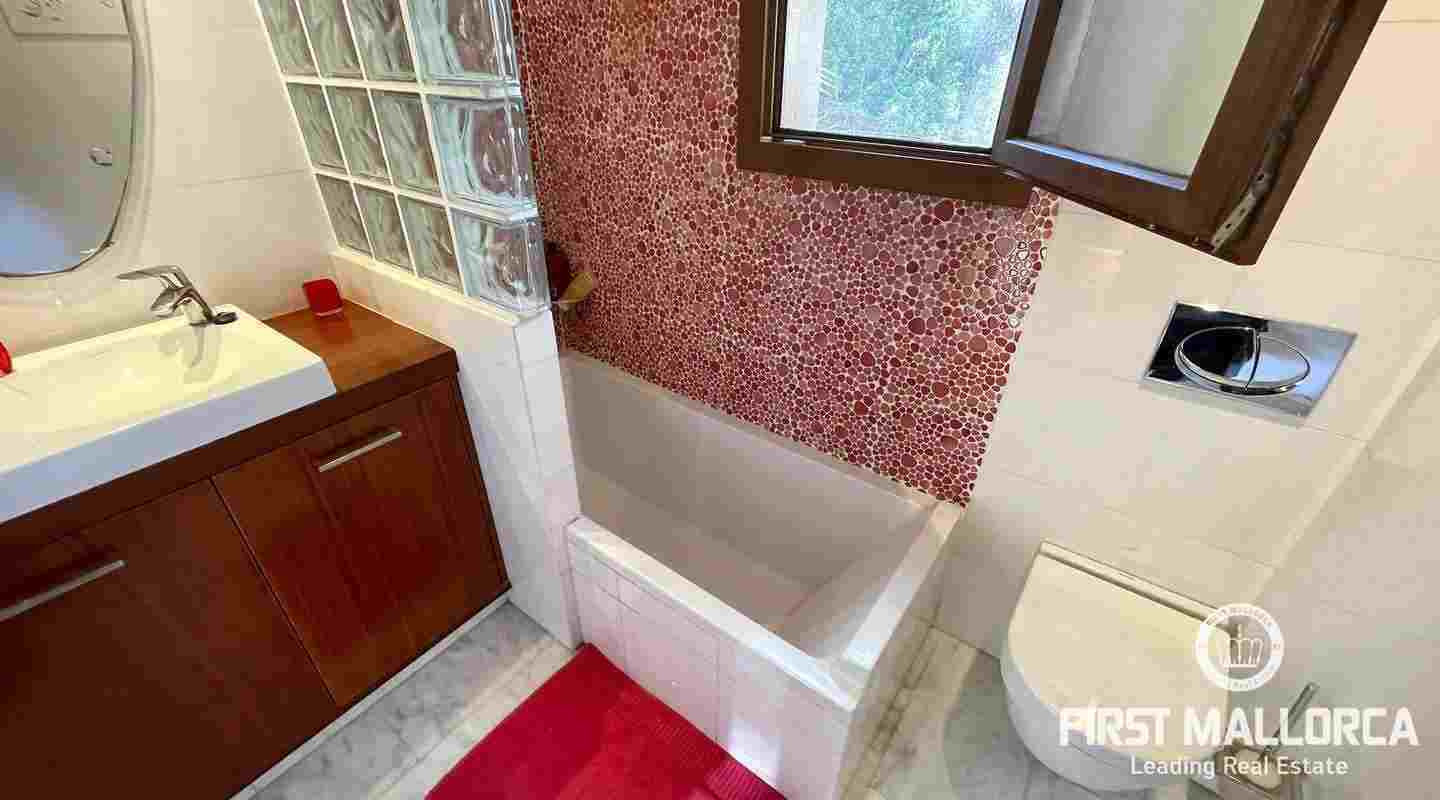 Dieses Reihenhaus liegt in dem beliebten Küstenort Cala Fornells. Es verfügt über 3 Schlafzimmer plus 3 Bäder en-suite. Das Haus ist auf 2 Ebenen aufgeteilt. Im unteren Bereich befindet sich ein großzügiger Wohnbereich mit Esszimmer und eine gräumige Küche - hier gibt es Zugang zur Terrasse und zum Garten mit privatem Pool.