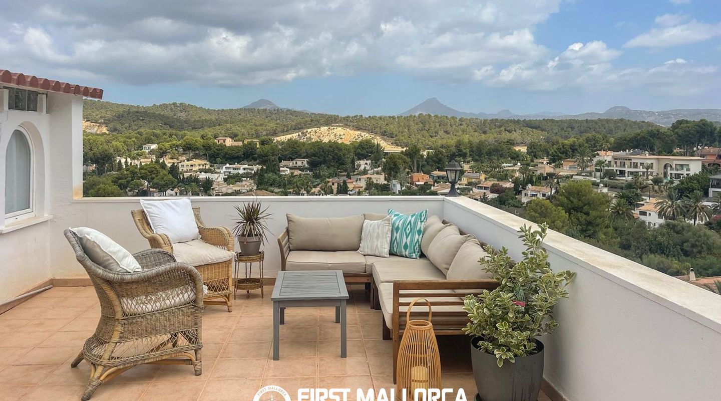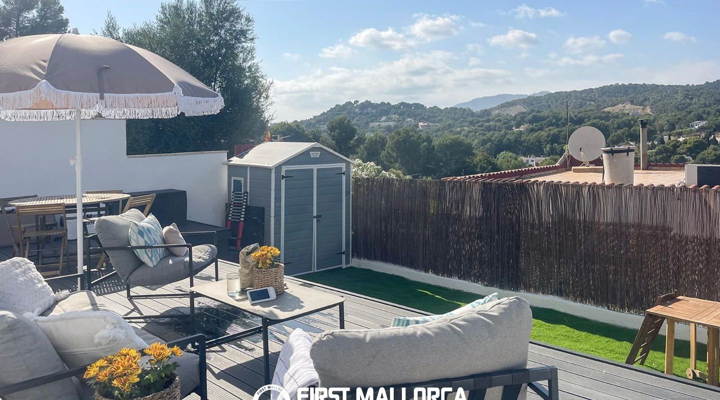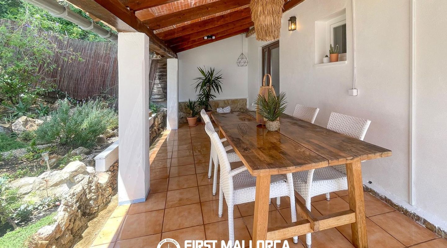 Im Außenbereich stehen ein gepflegter privater Garten sowie mehrere Terrassen mit offenem Blick auf die Serra de Tramuntana zur Verfügung, die eine ruhige und angenehme Atmosphäre schaffen.