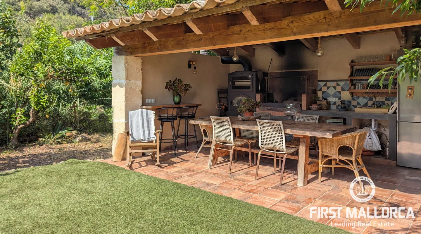Eingebettet zwischen den malerischen Dörfern Sóller und Biniaraix bietet dieses charmante Haus mit 3 Schlafzimmern und 2 Badezimmern die perfekte Kombination aus ländlicher Ruhe und entspanntem Leben in den Bergen. Umgeben von der natürlichen Schönheit der Ausläufer der Tramuntana ist es ein ideales Refugium für alle, die Frieden, Sonne und den zeitlosen mediterranen Charme suchen.